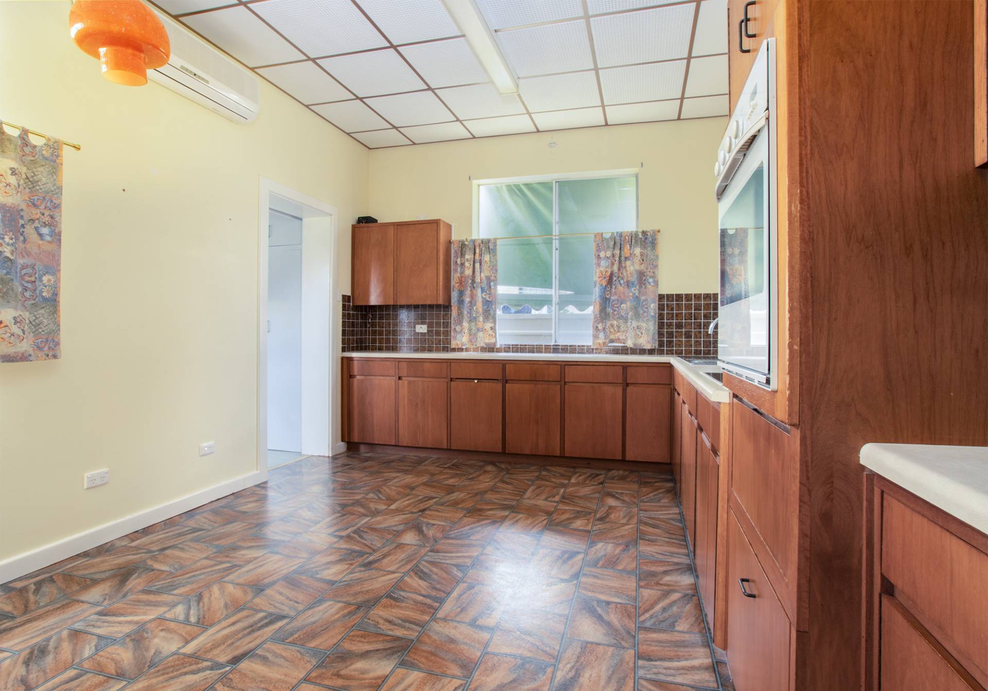Tidy kitchen / dining area with reverse cycle air conditioner.