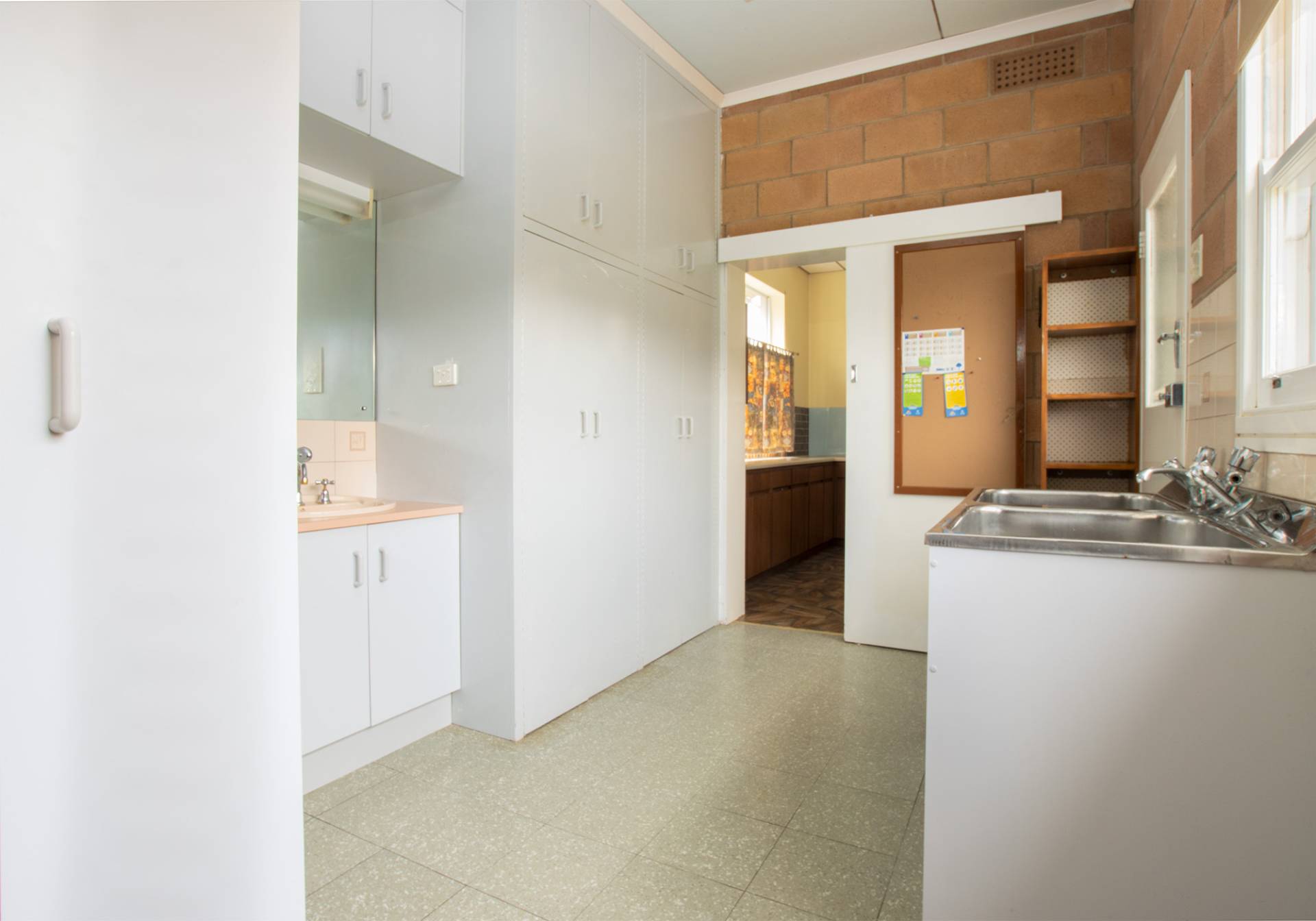 Laundry at the rear of the property, separate w/c, vanity, and back lobby section.