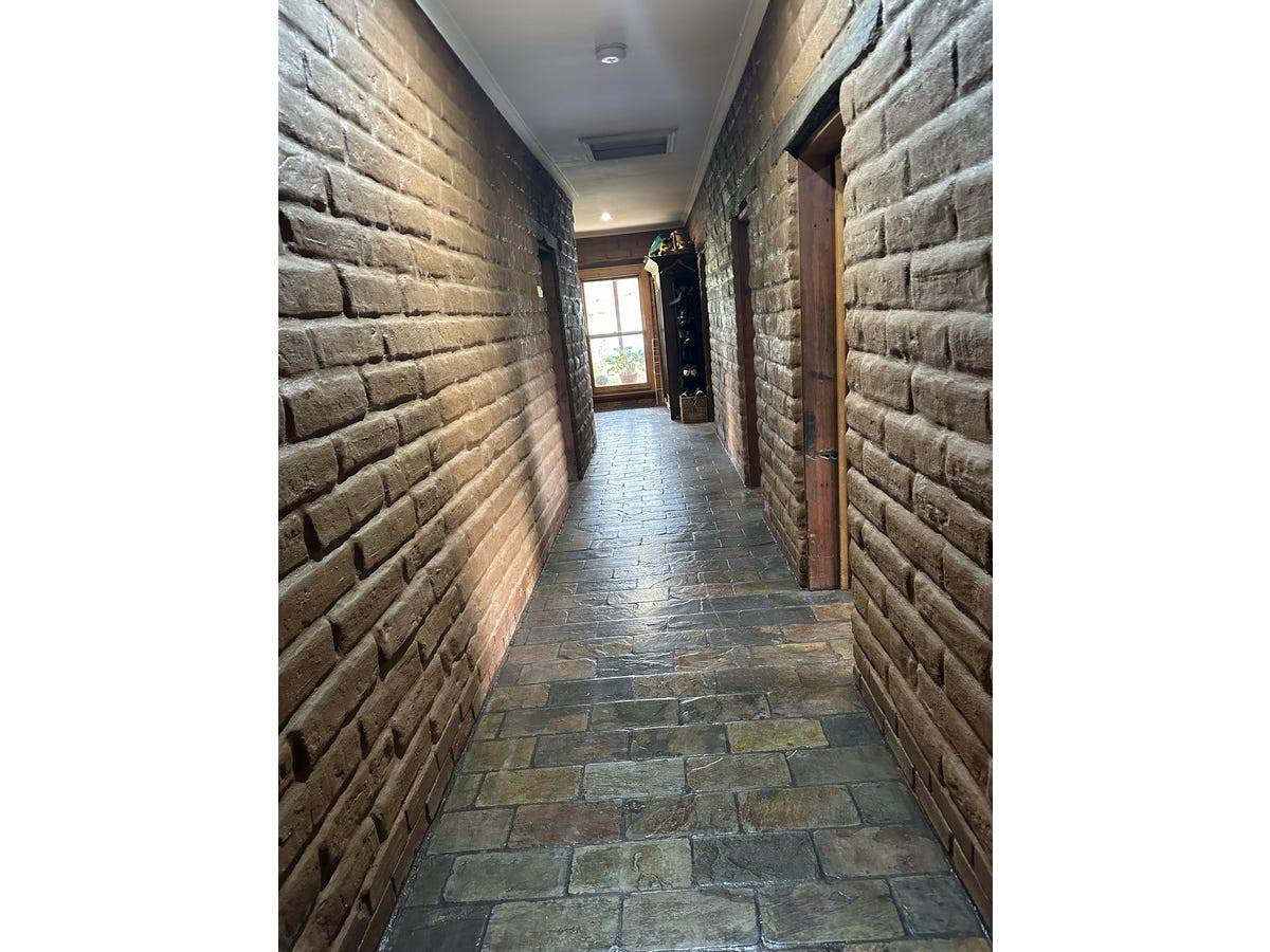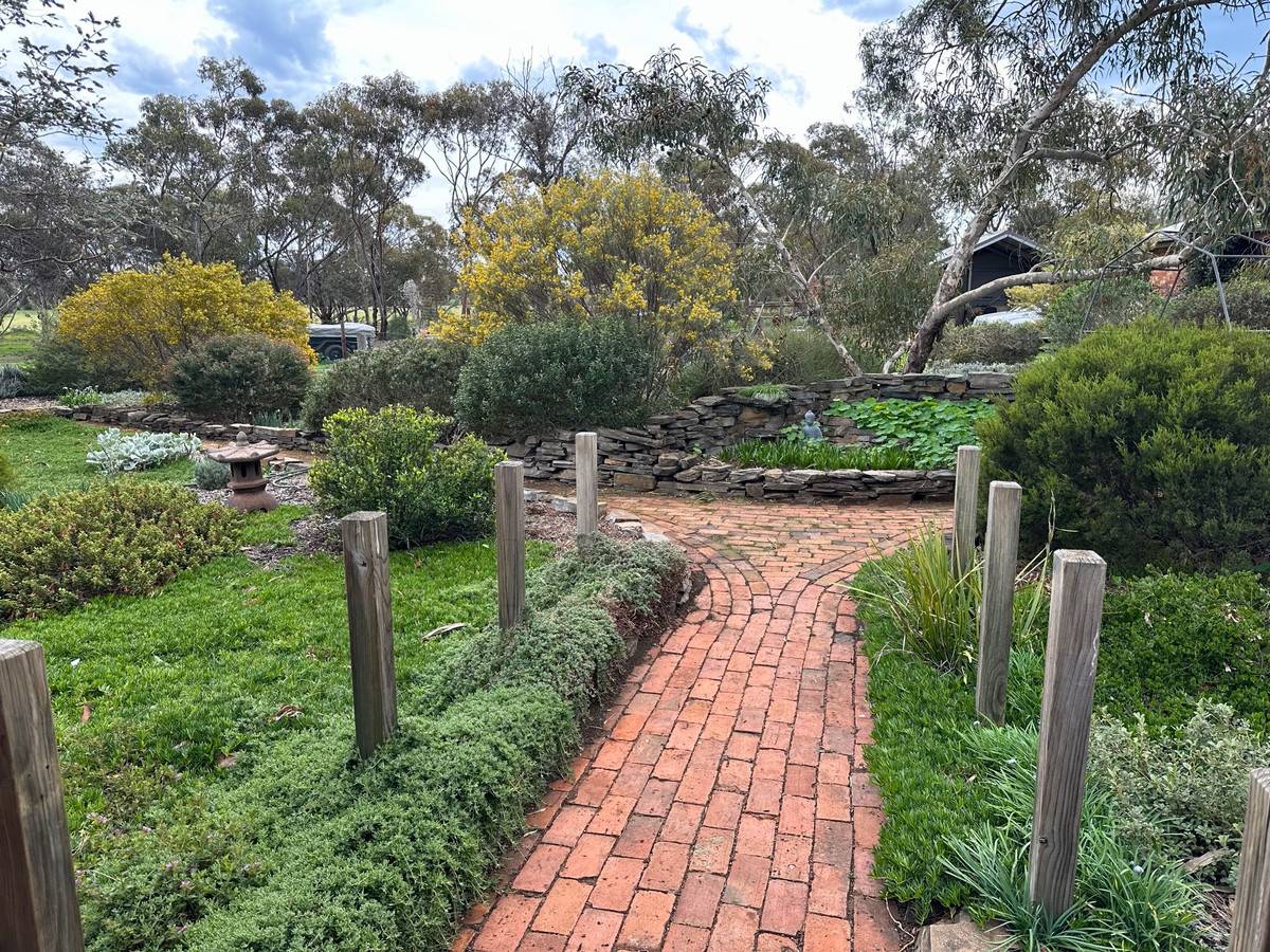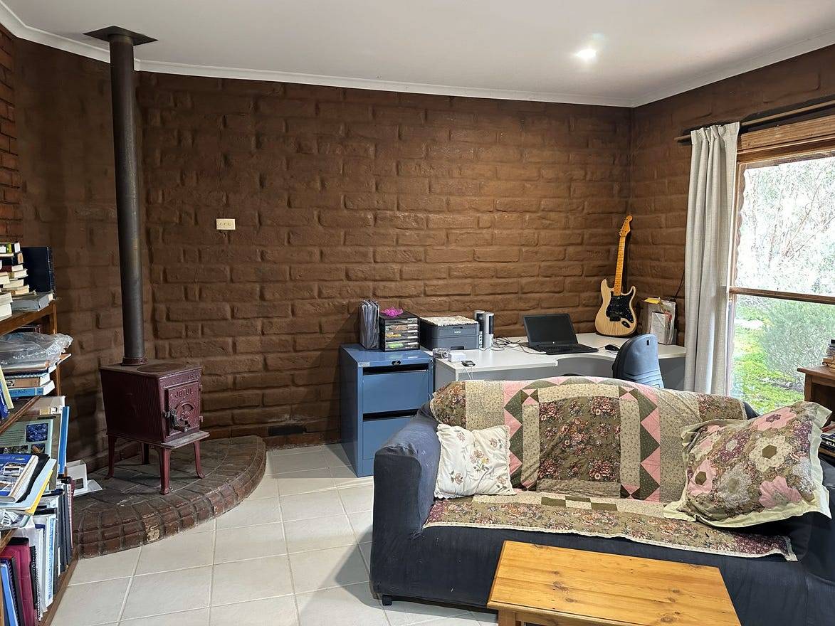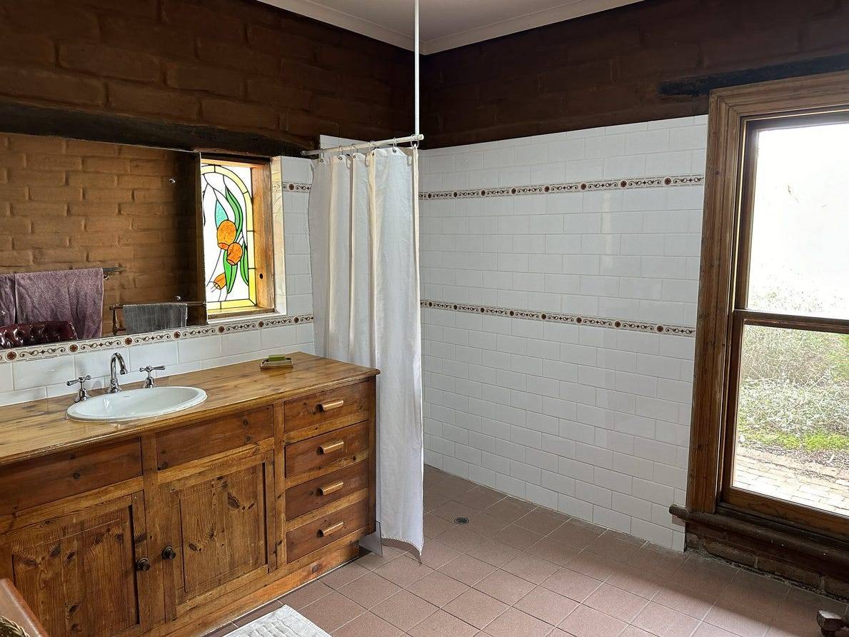 • Custom mud brick home built by current owner, offering rustic charm with red brick pathways and flooring in kitchen and dining room, slate in hallway and laundry, tiled in the lounge