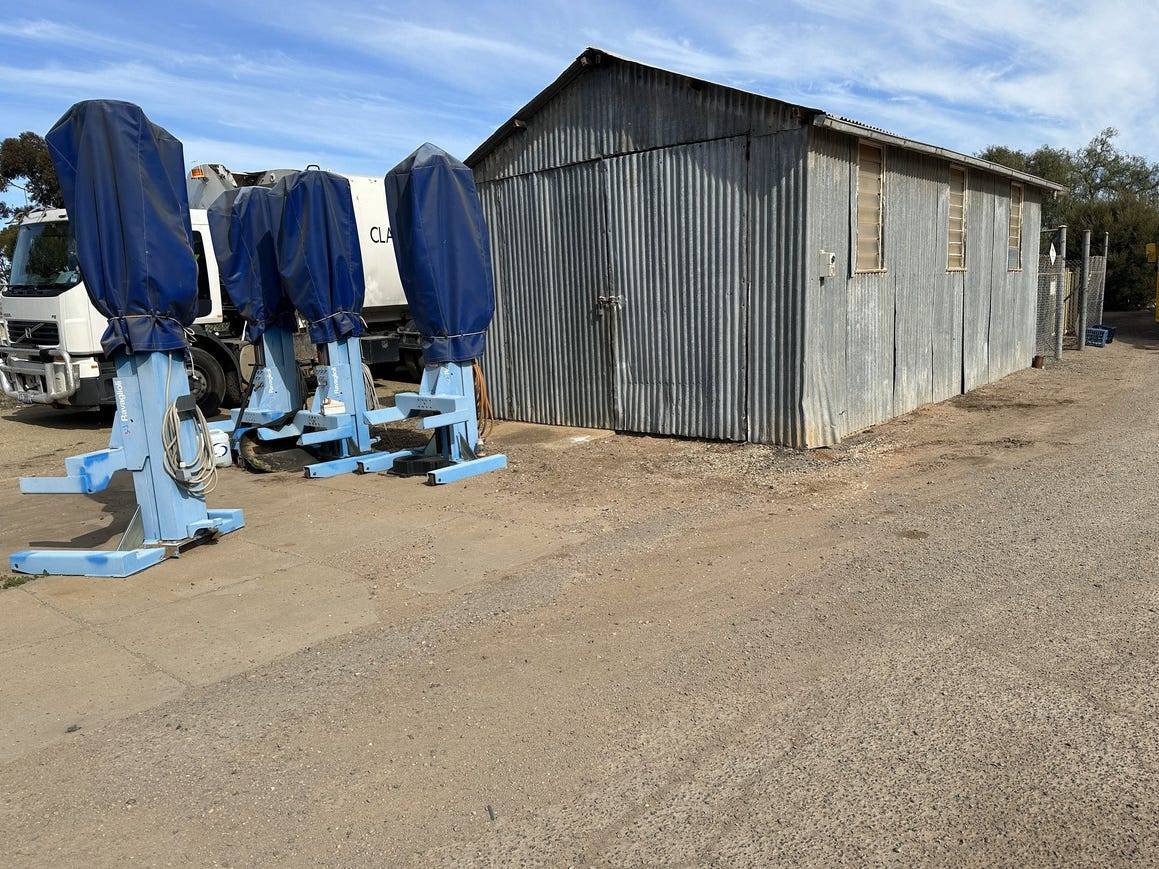 • Main shed provides evaporative air conditioner, pit, 3 phase power & concrete floor