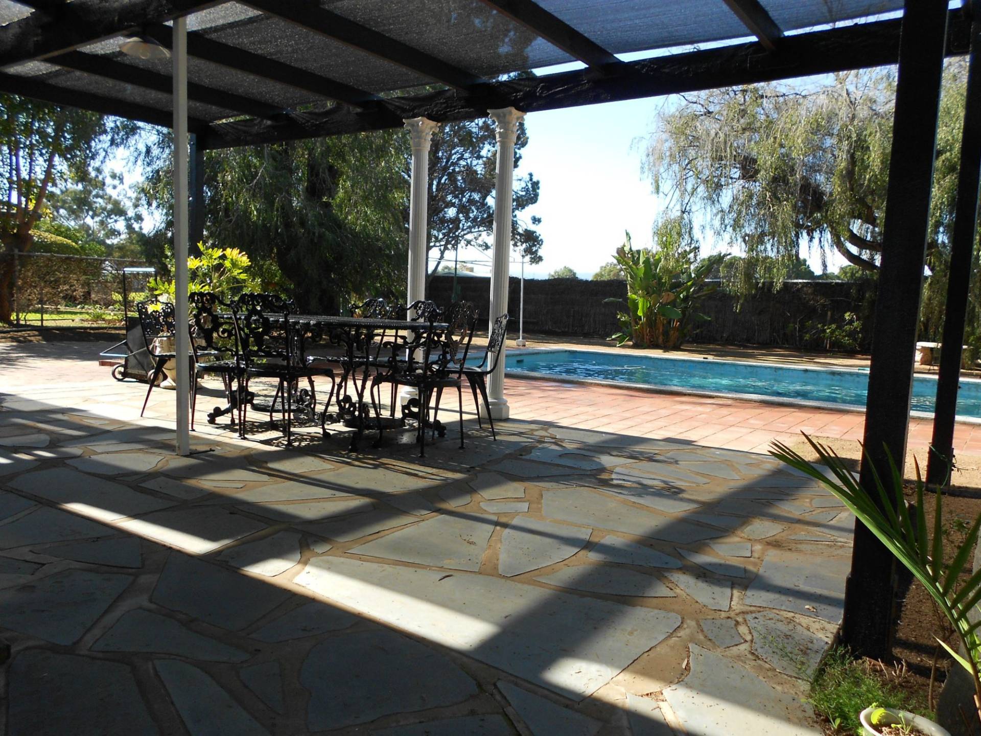The outside inc. sgle carport (umr), pergola overlooking the swimming pool and extensive paving for easy maintenance.