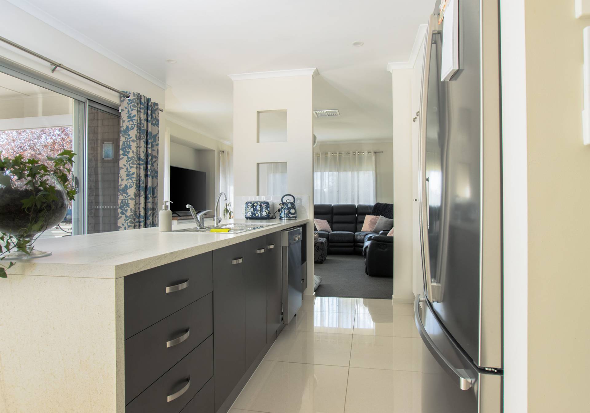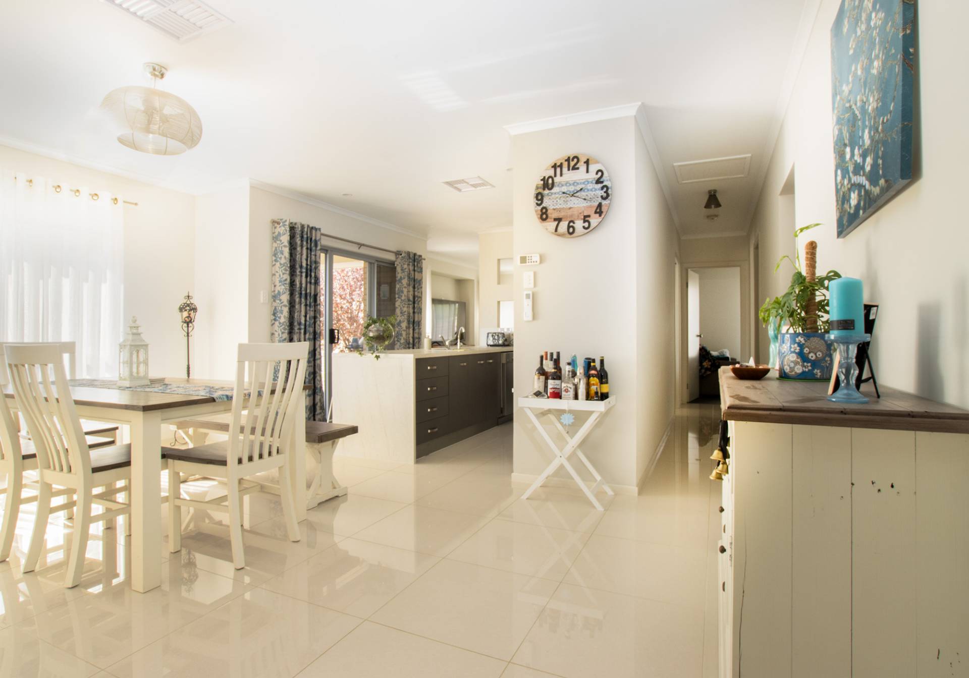 The main living area has a touch of luxury with quality tiles throughout the hallway, dining area and kitchen.