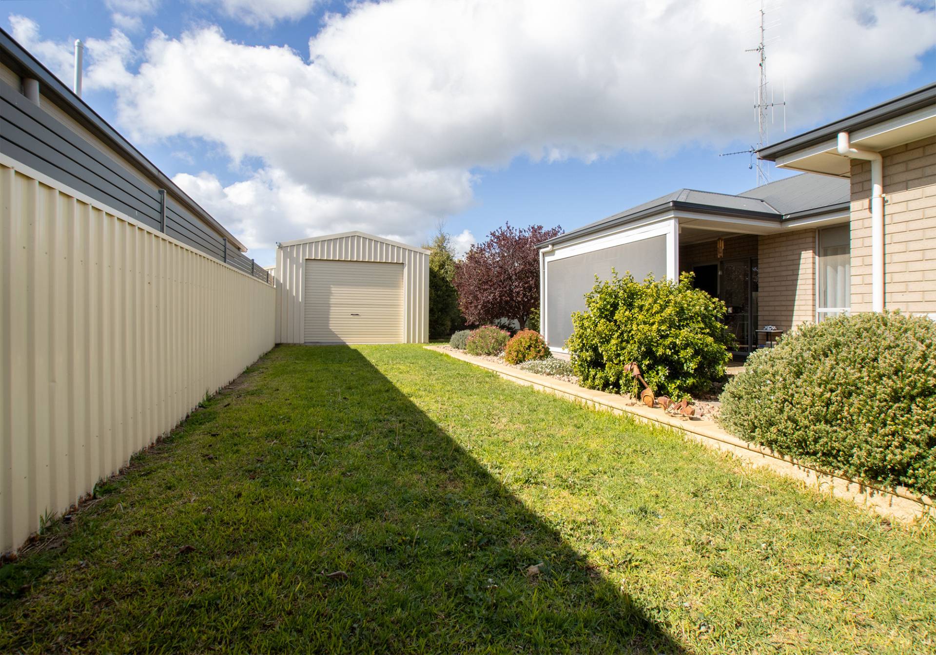 Outside has a double garage under main roof with single panel roller door, a single car garage with roller door access at the rear of the yard and a cozy alfresco area to enjoy the afternoon sun.