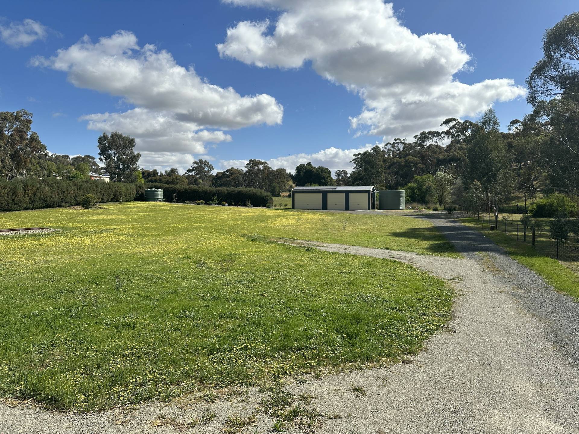 • Privacy offered by roadside hedge, gravel driveway to the shed