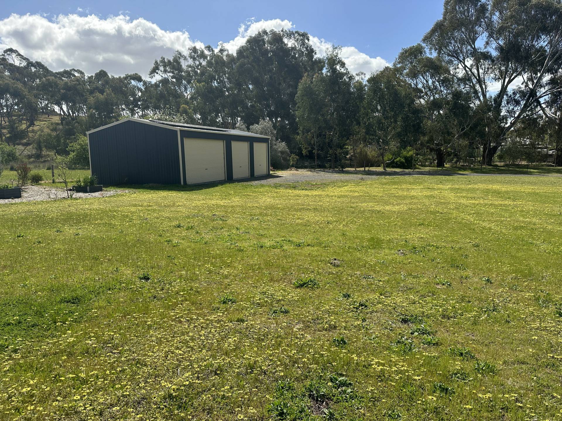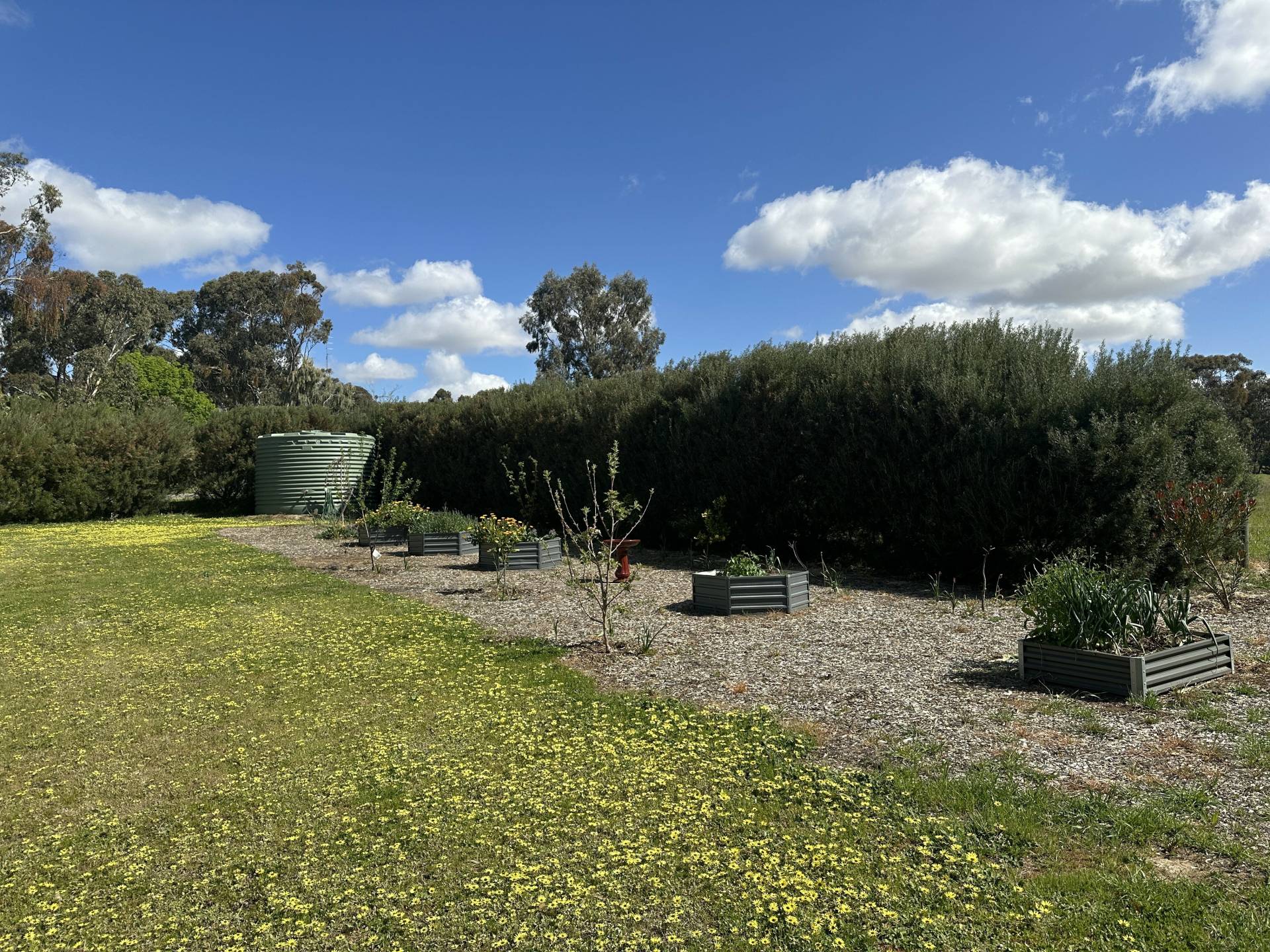 • Raised vegetable beds, established garden and trees