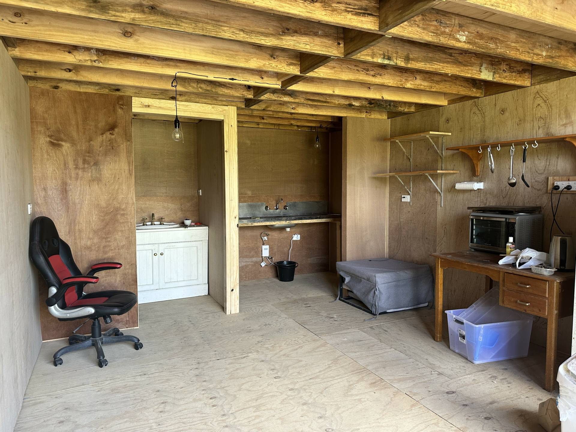 • Large 14m x 7m* shed used as a workshop, site office with kitchenette
