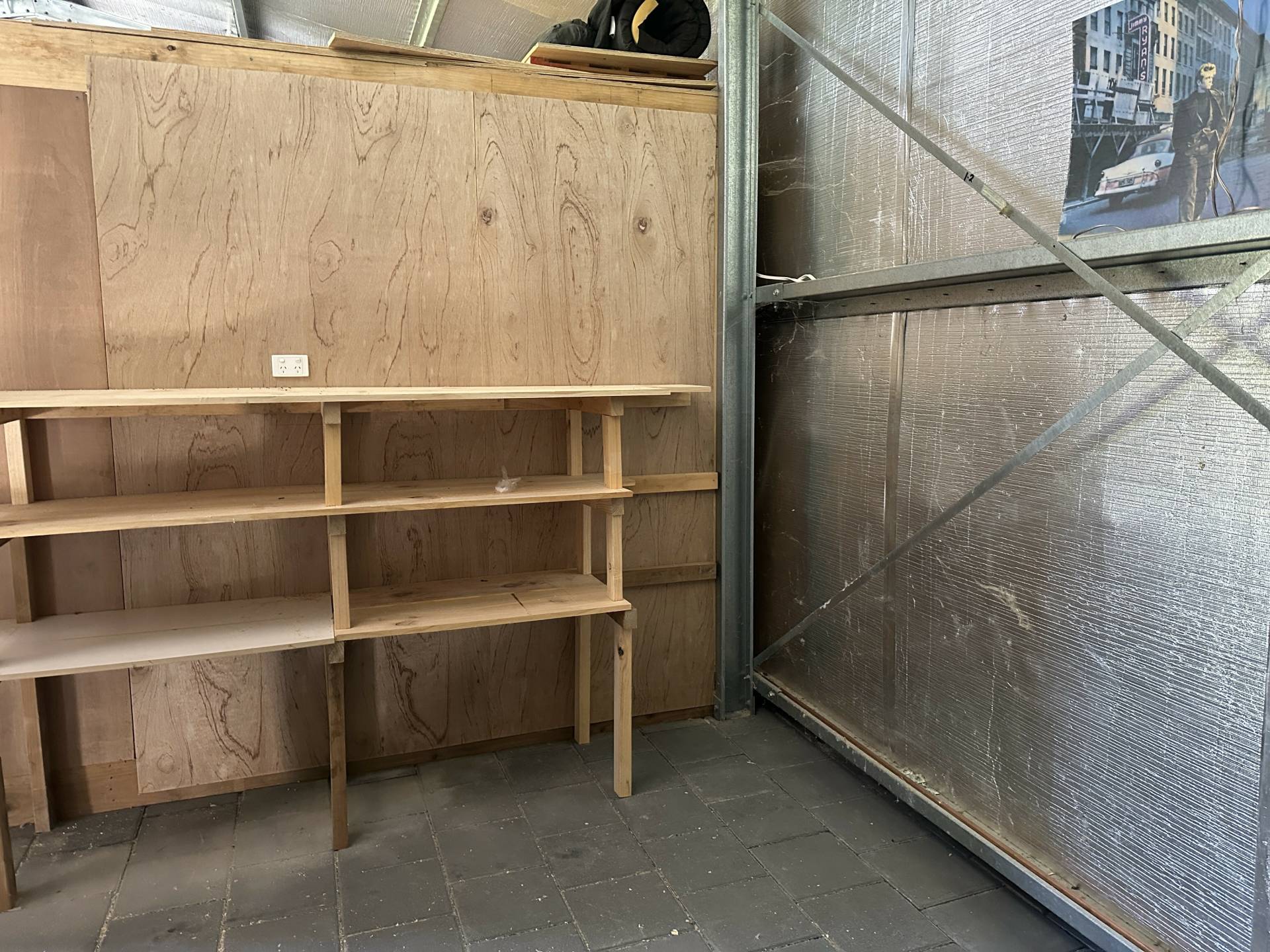 • Separate room with shelving and a mezzanine floor for excess storage
