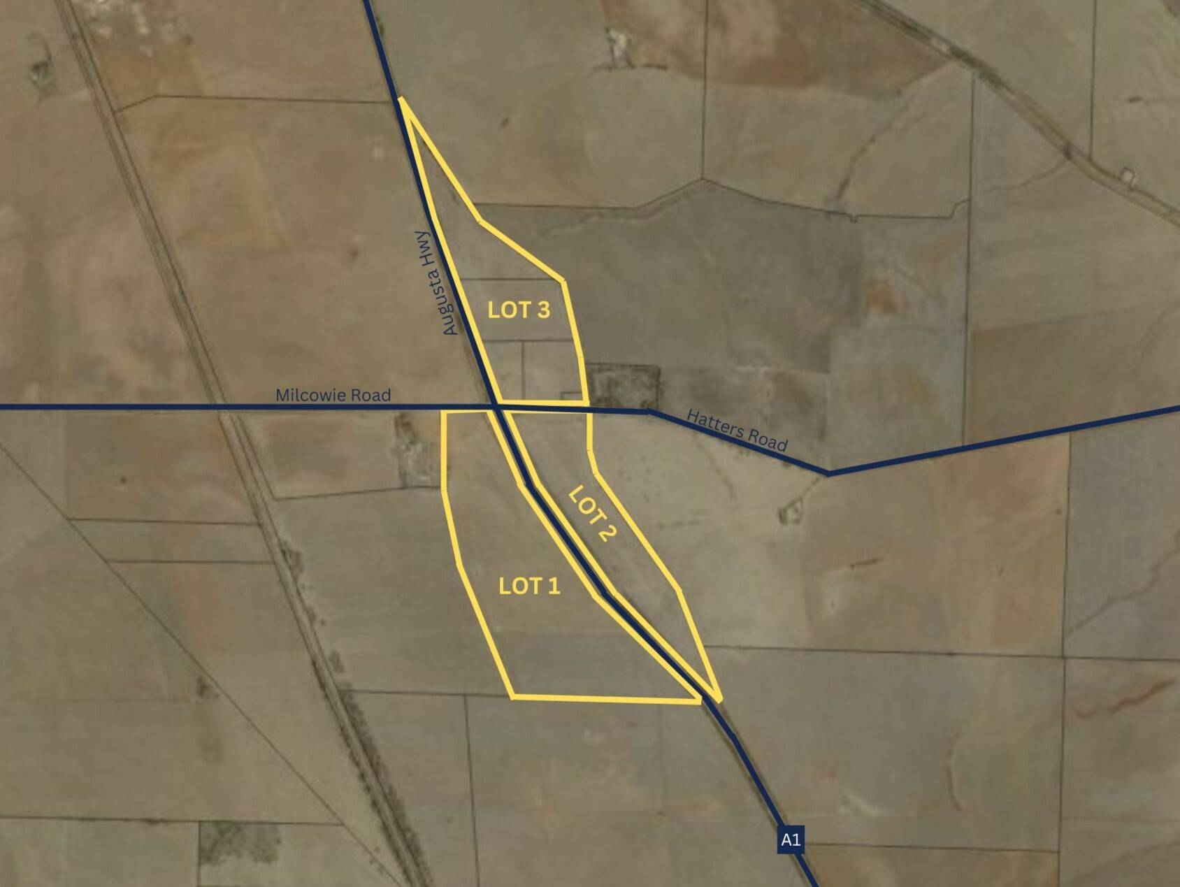 This property is fenced into 3 main paddocks located on the east and west side of Augusta Highway with access from Milcowie Road, Hatters Road and Augusta Highway. The land comprises a red brown loam soils with gentle undulation and is well suited to continuous cropping.
