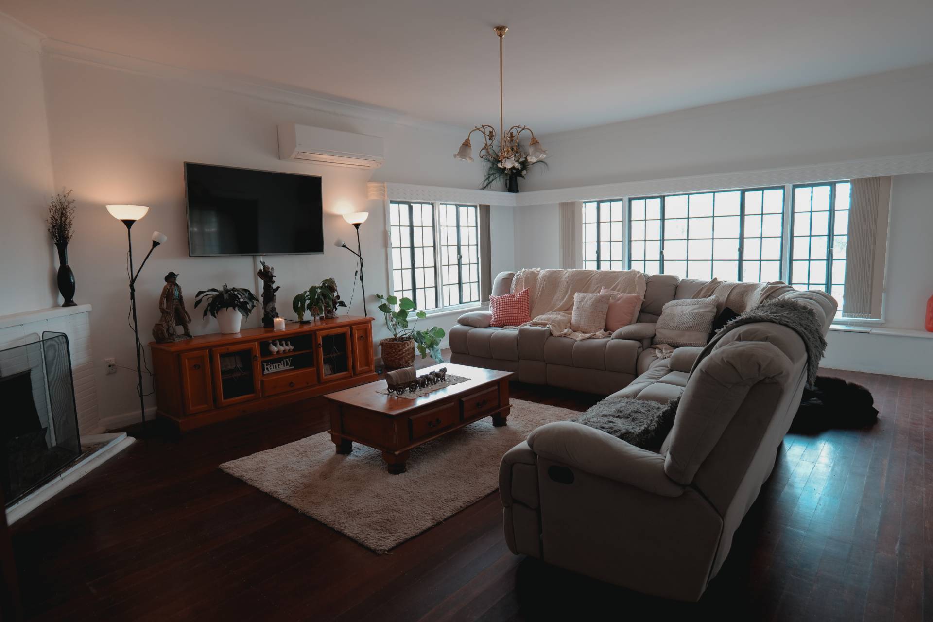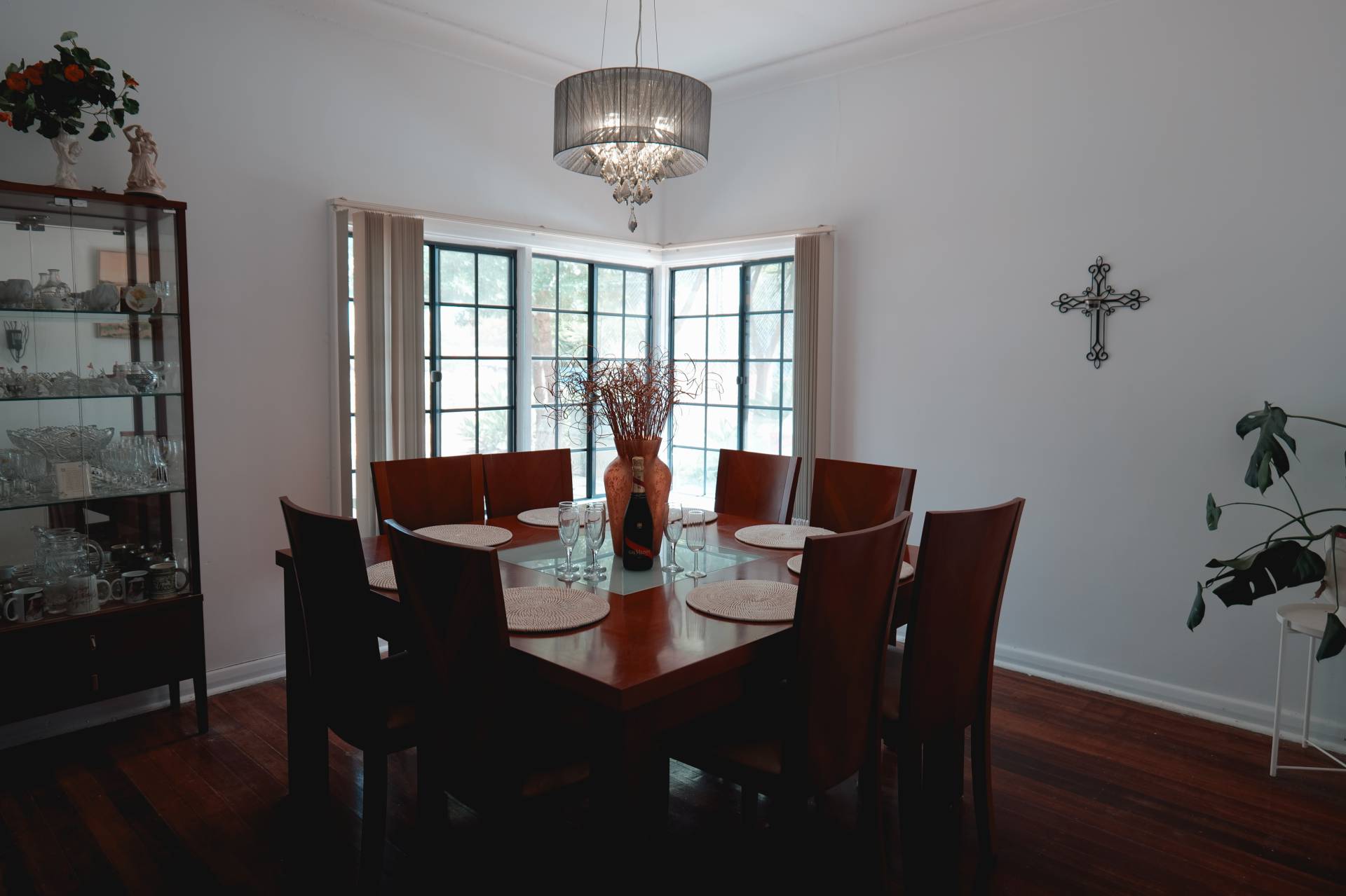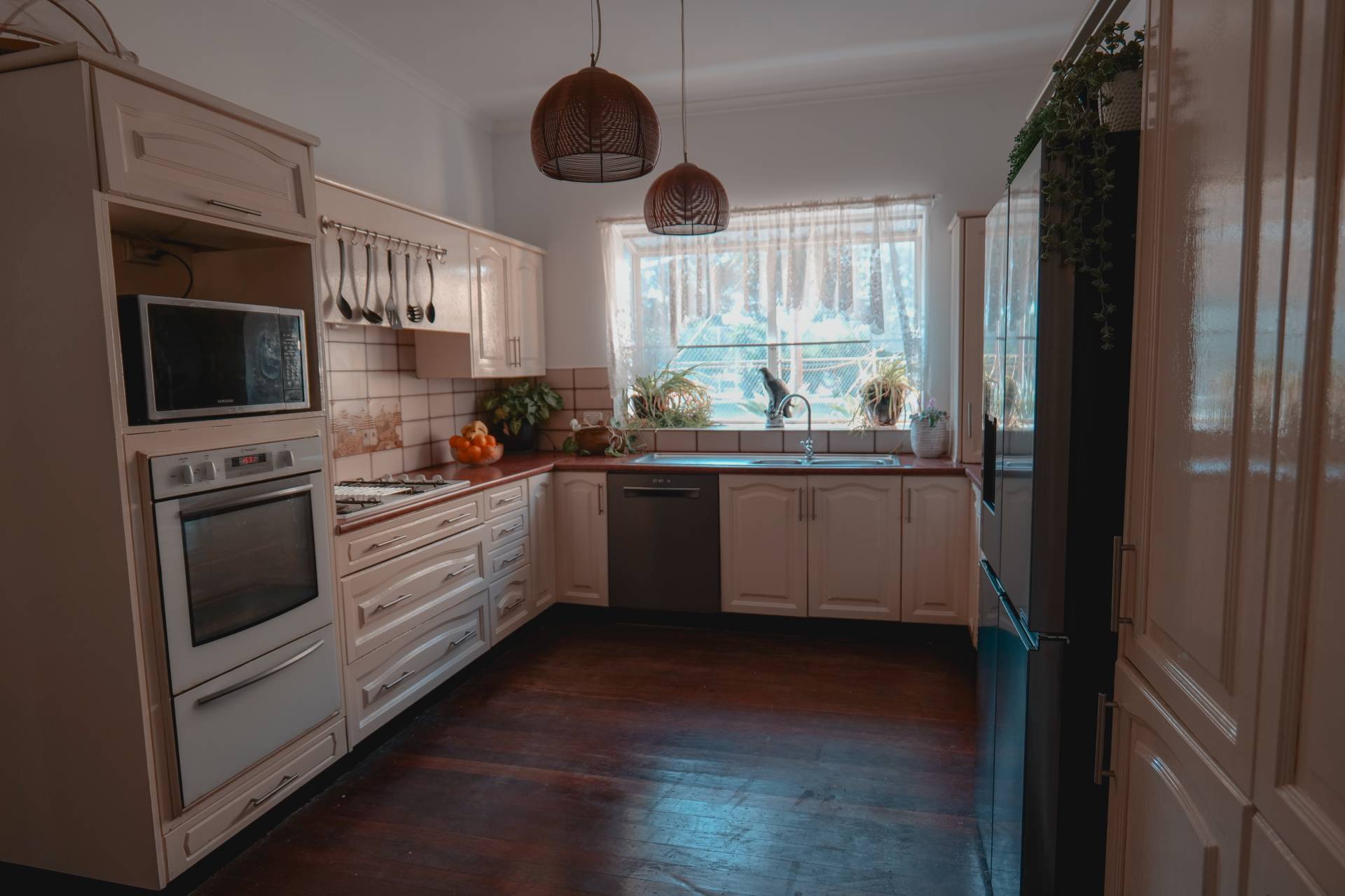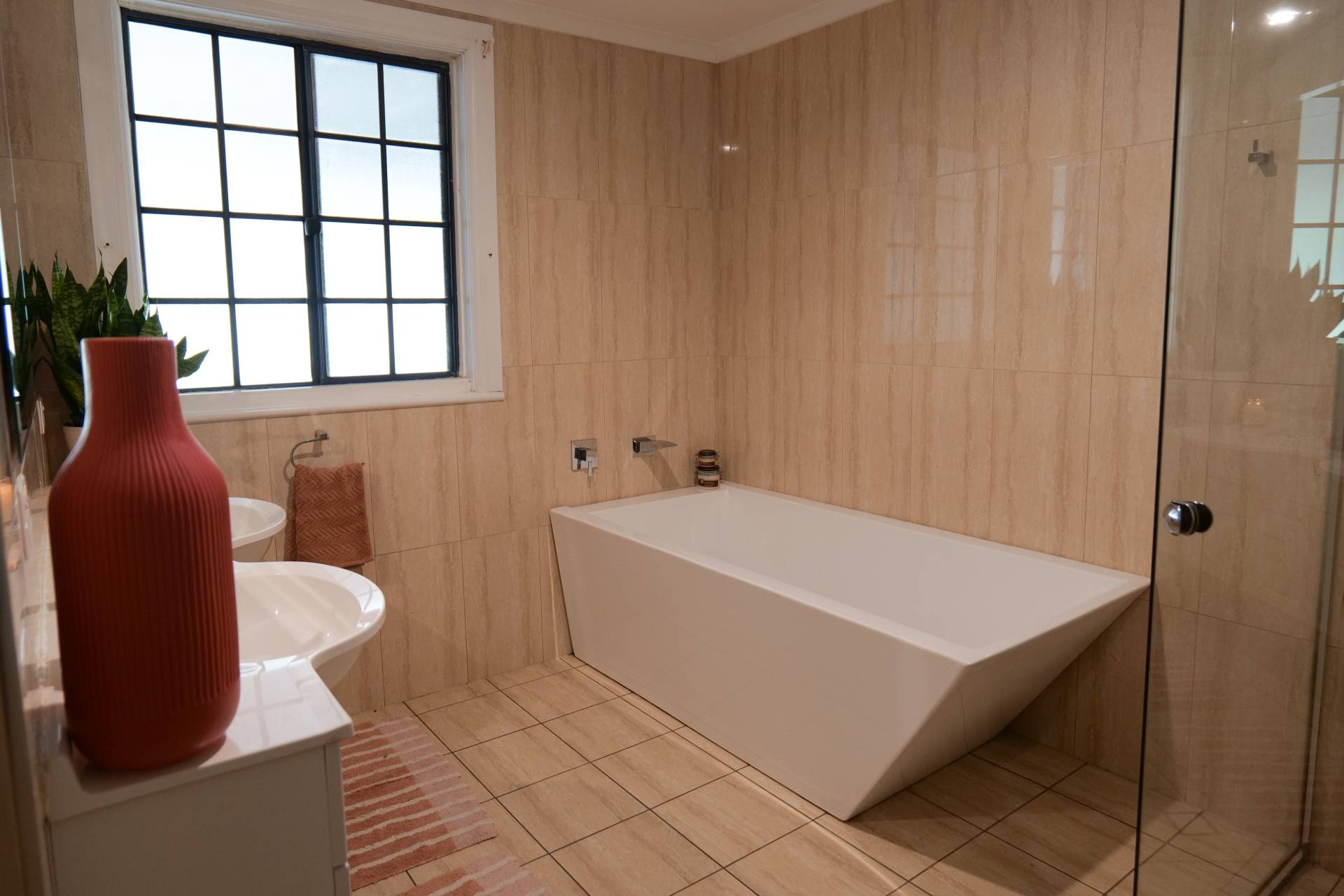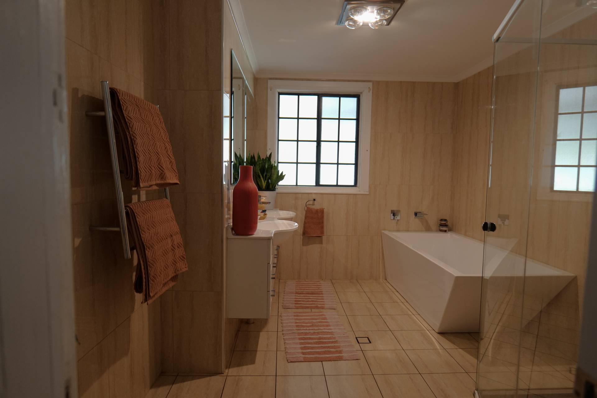 Step into the beautifully renovated bathroom, boasting a deep, luxurious bath, a dual shower, and floor-to-ceiling tiles that exude opulence. With the addition of two toilets and a spacious cabinet laundry, this home seamlessly combines style and functionality. The country-style galley kitchen, adorned with ample cupboard space, flows effortlessly into the informal dining area, creating the perfect space for family gatherings.