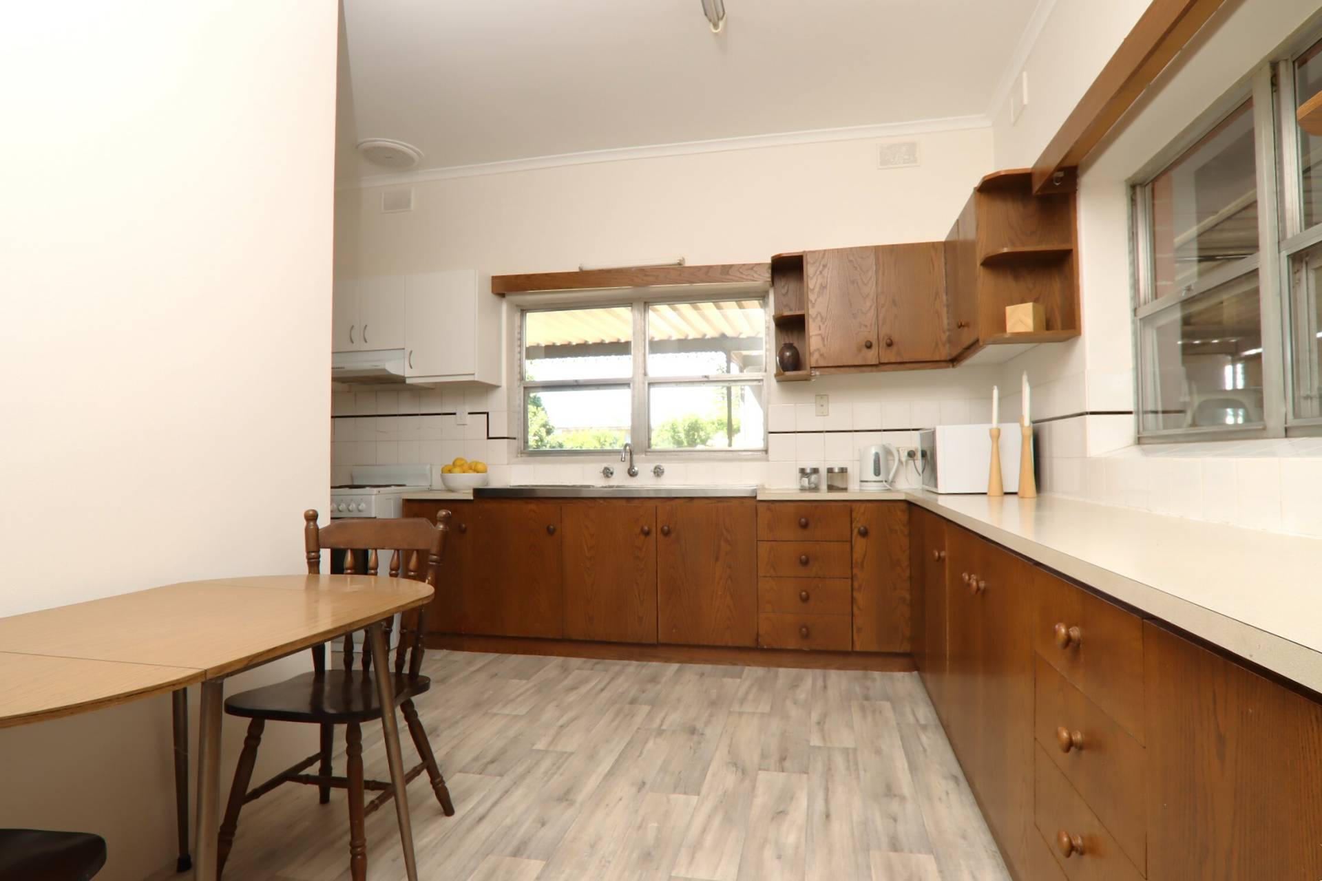 This neat brick home has 3 good sized bedrooms, all with ceiling fans and bedroom 3 has a split system air conditioner, 70's kitchen with walk-in pantry, large open meals and family room with a split system air conditioner, bathroom with shower, bath and vanity and a separate w/c, and laundry. Inside has been painted and has new carpet throughout. Outside has a back verandah, brick shed, carport, tool shed, rainwater tank, established fruit trees and a fenced rear yard on a large 1170 square metre allotment with a rural outlook.