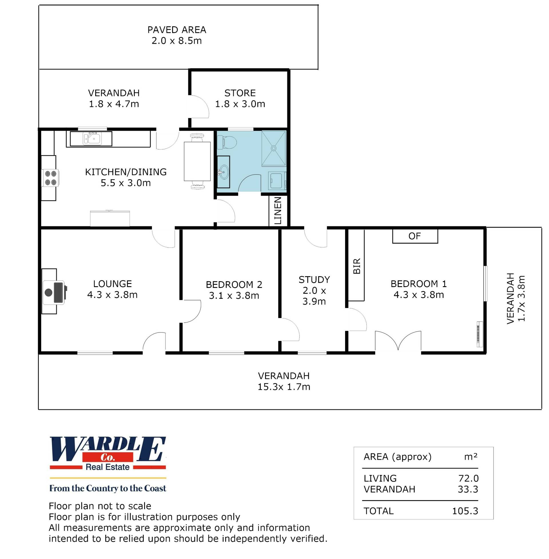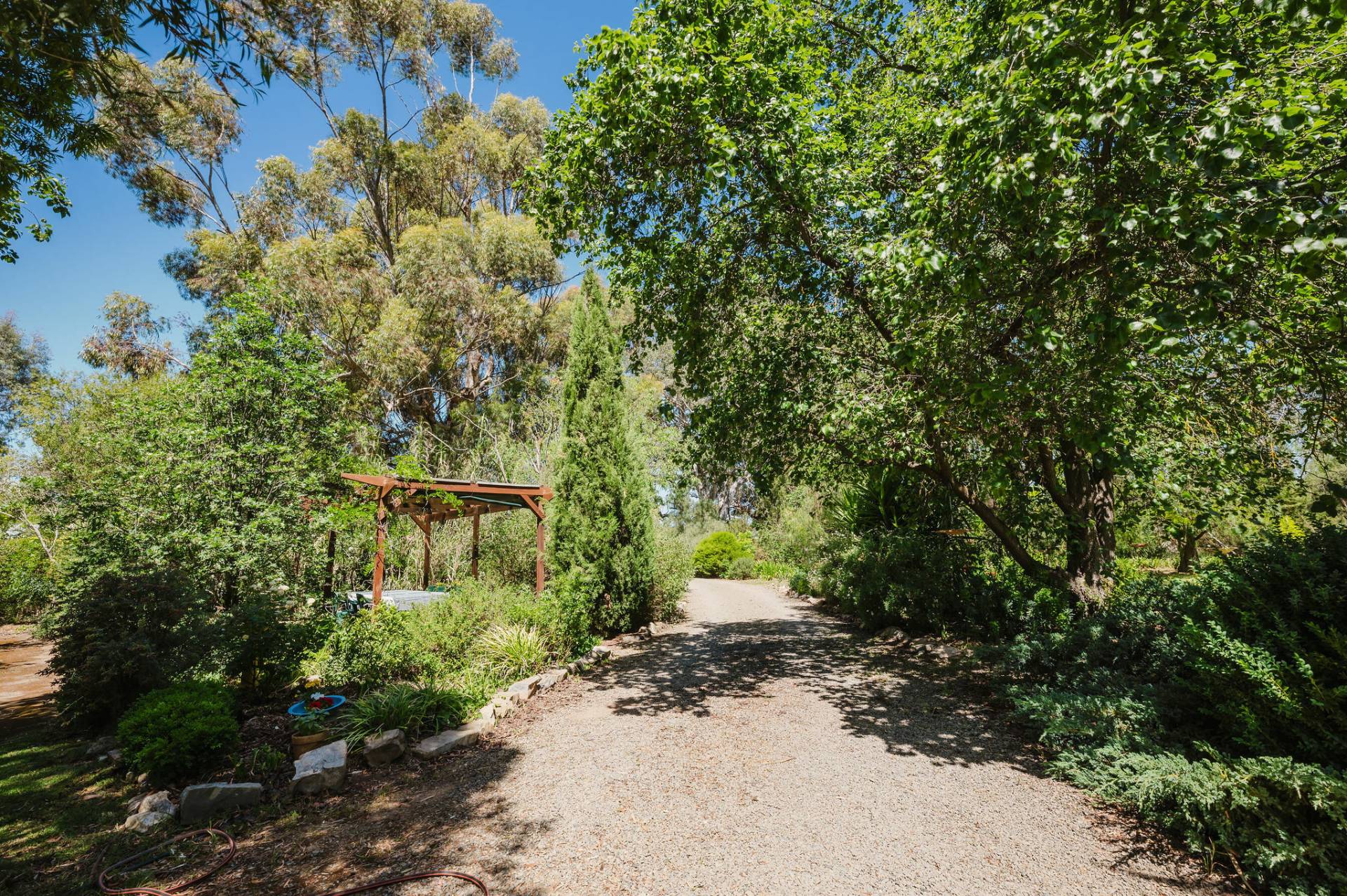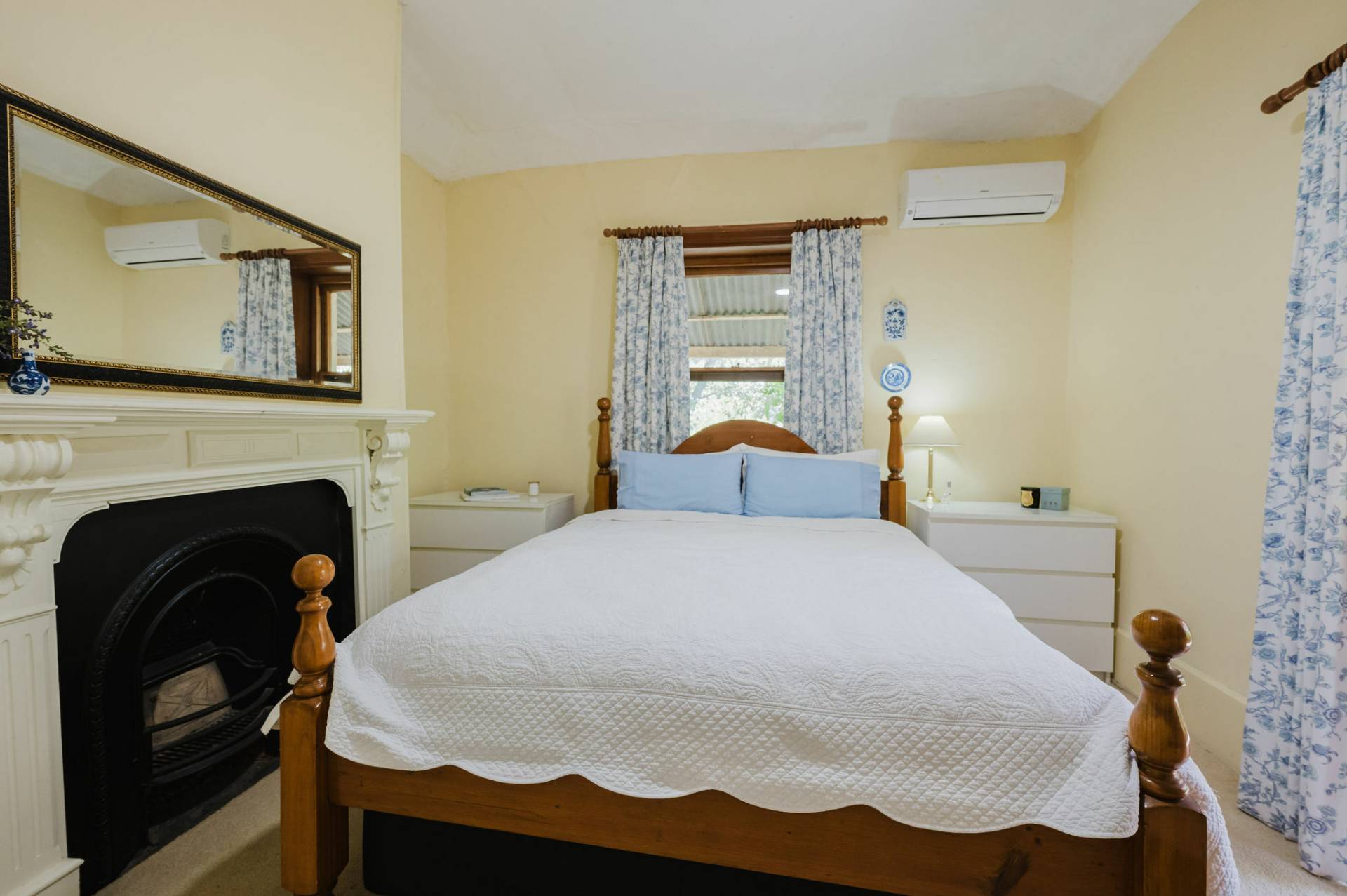 Featuring two spacious bedrooms with timber windows and French doors plus a modern bathroom which adds convenience. The cosy lounge features matchboard ceilings and is comforted by combustion heater and split system.  A country-style kitchen, complete with wood oven, is ideal for relaxed living. Outside, the manicured garden provides a serene outdoor space, and the home is surrounded by front, side and rear verandahs. In addition, there is a dual gravel driveway, lawn areas, fruit trees and vegetable patch.