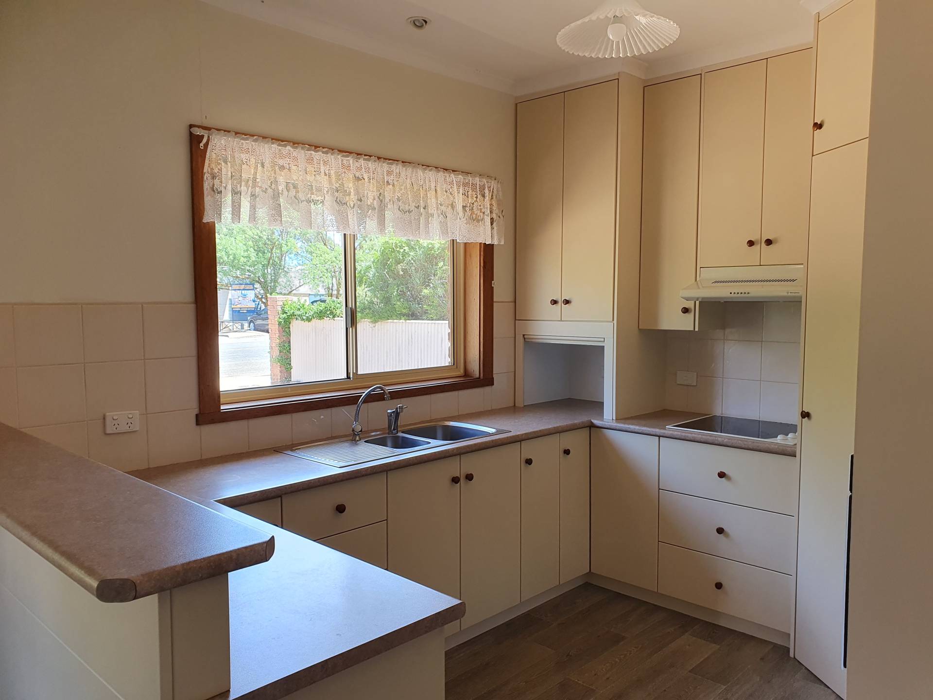 - Combined, kitchen/dining area with electric cooktop and wall oven