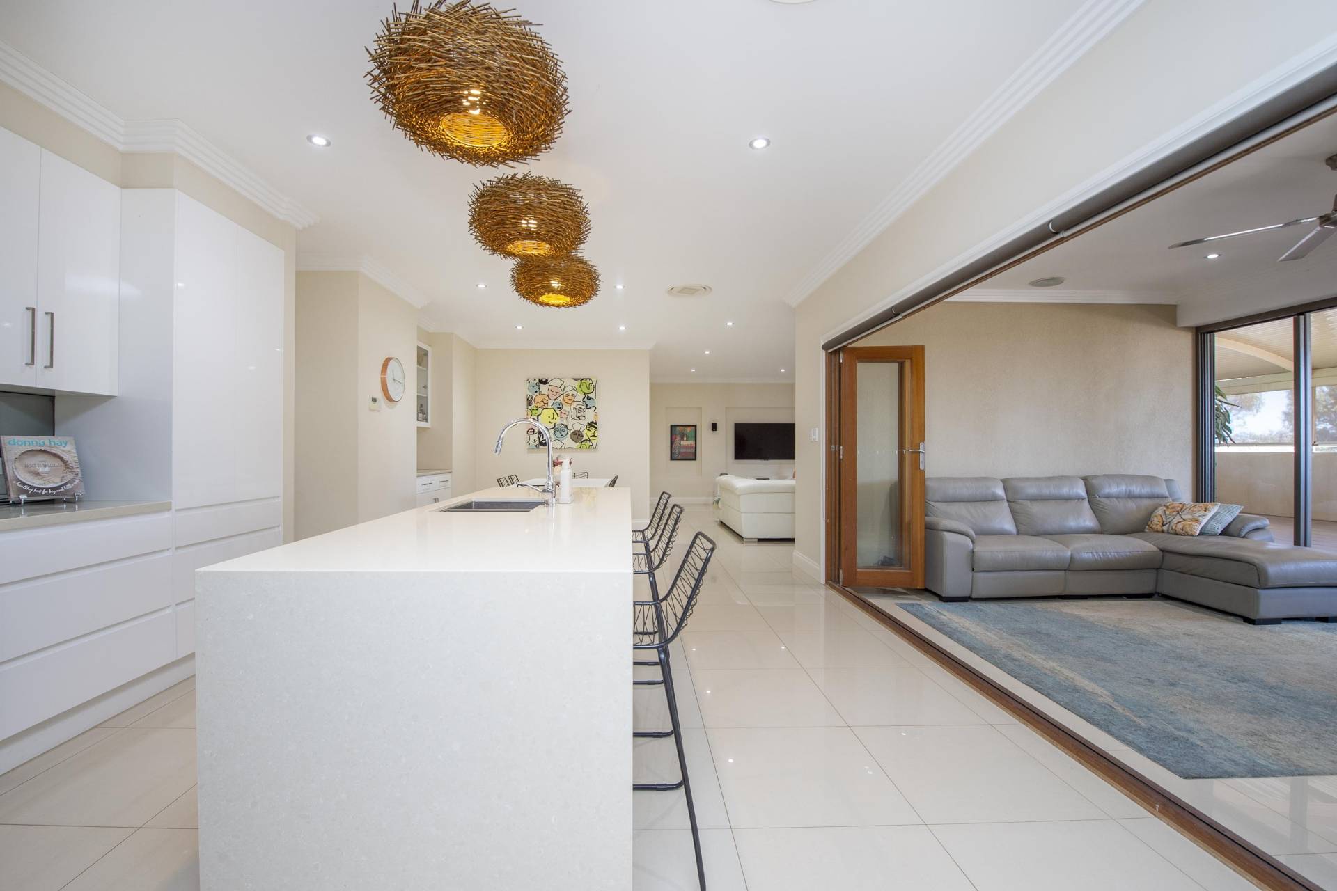 The modern kitchen with stone benchtops is the cornerstone of your entertaining and is the hero piece of the open plan living area which also includes dining area and large lounge with modern low maintenance tiling throughout this area. The original alfresco has been converted to provide more living space and in-turn opens to the all weather dome outdoor patio area that will surely be a talking point amongst your visitors and an amazing space to entertain with zip track blinds for year round comfort.