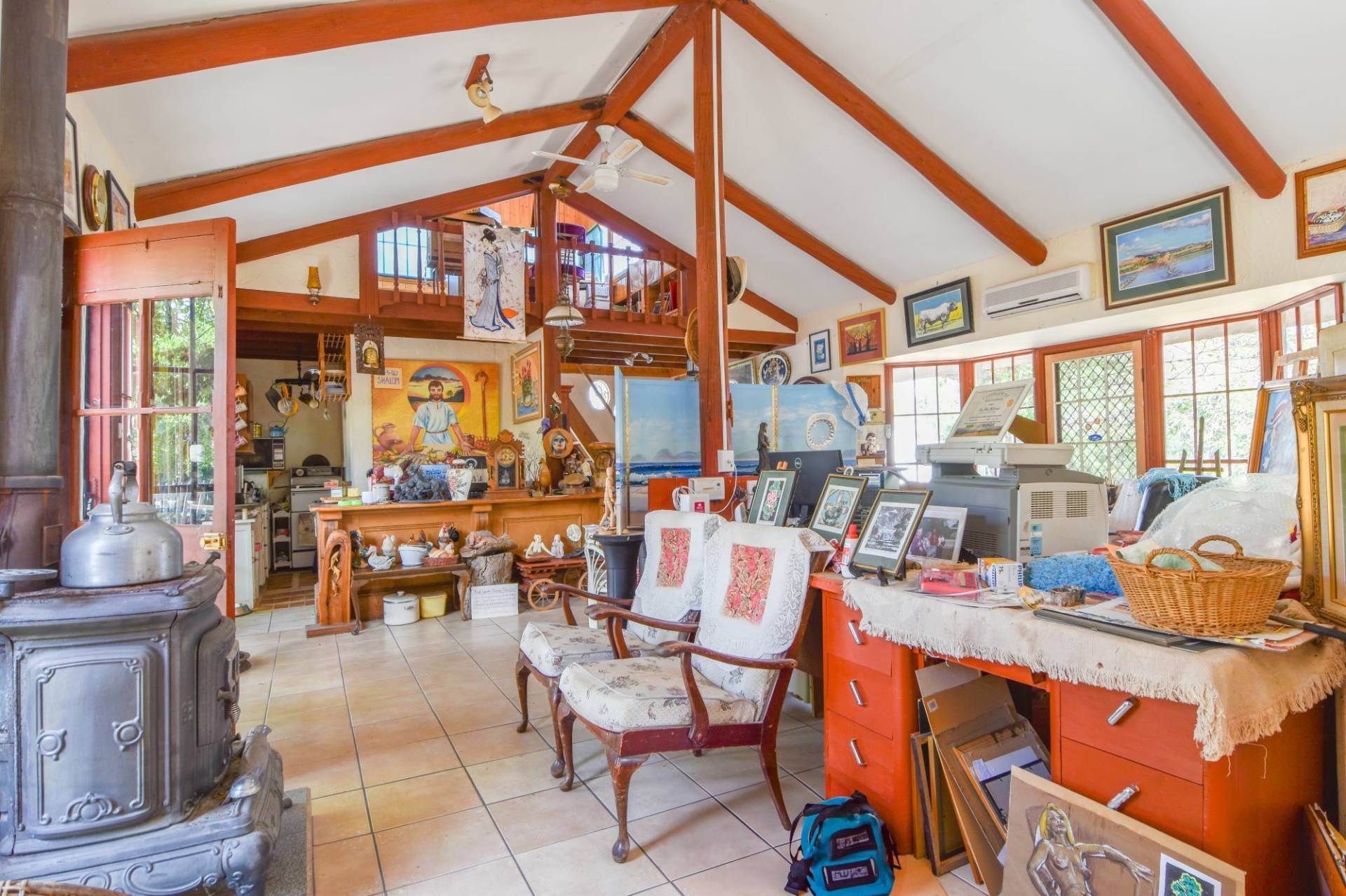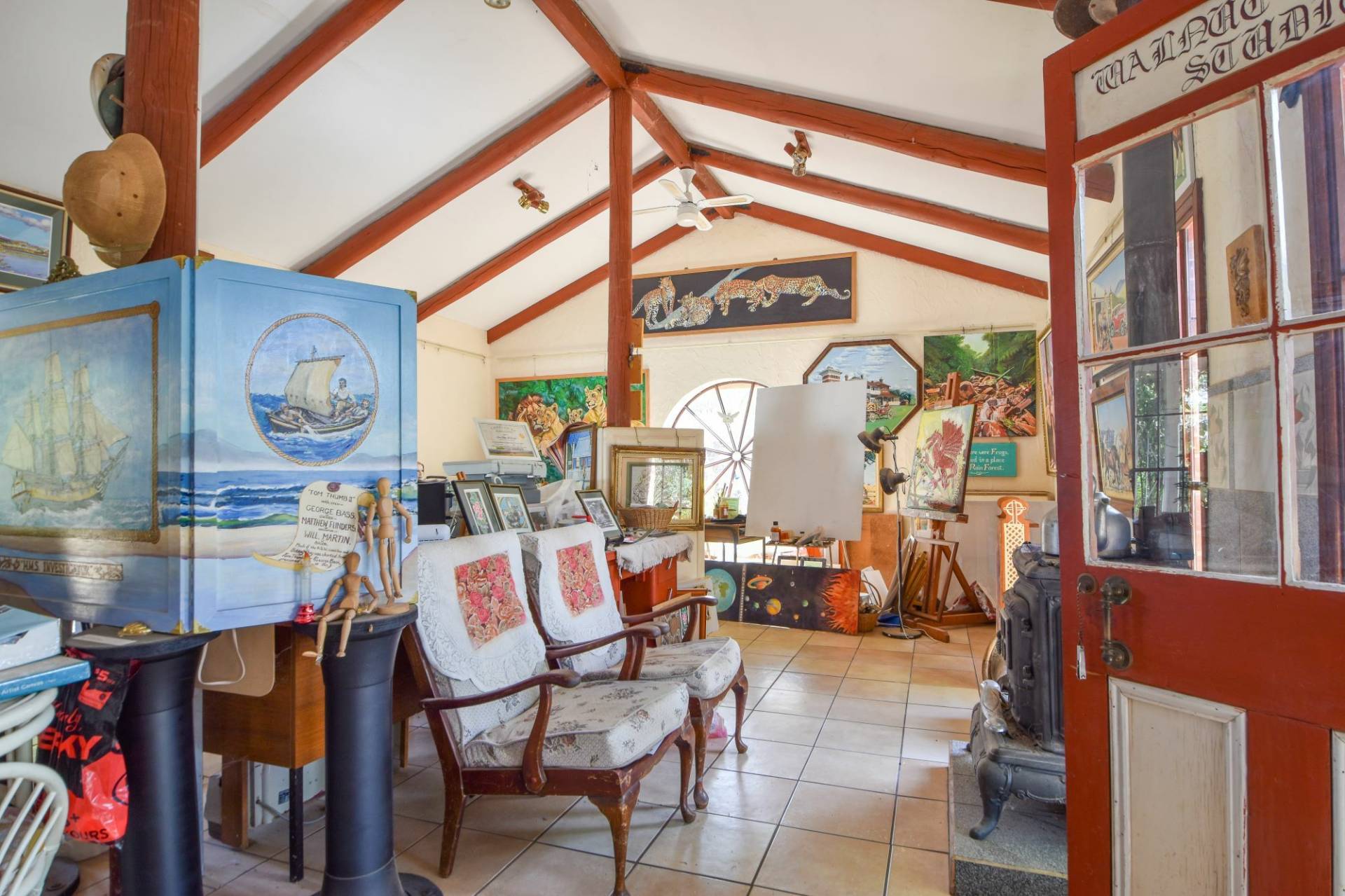 Step outside into the established garden that offers secluded retreats throughout the property. The garden frames the entrance to the detached studio, a unique space built of stone and brick. This versatile studio has been used for various artistic endeavours and is ideal as a teenage retreat or a potential bed and breakfast (STC). The studio features a kitchenette, a bathroom with shower, vanity, and toilet, and a bright mezzanine level overlooking the property. Stay comfortable year-round with a split system air conditioner, wood fire & ceiling fans.
