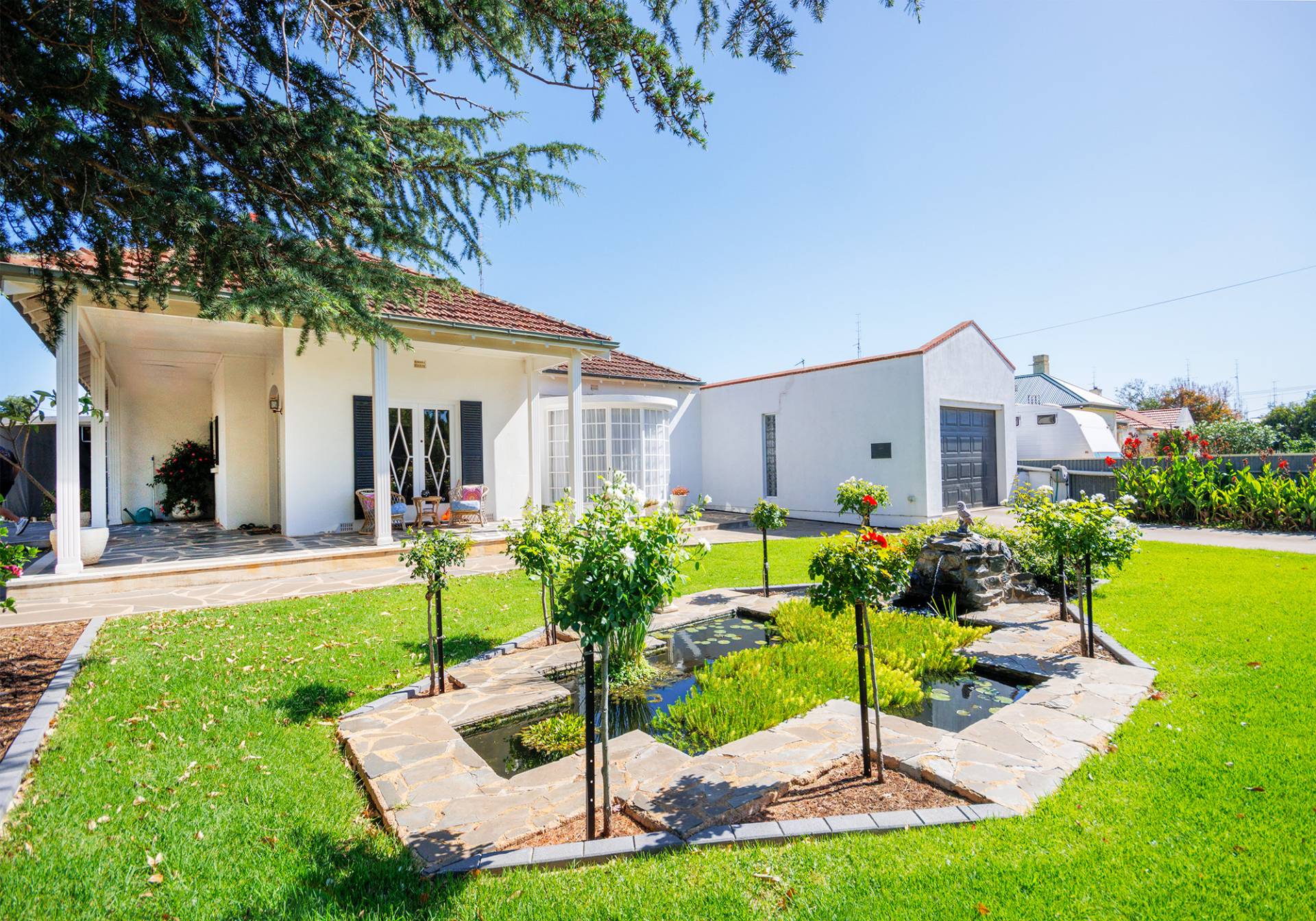 Nestled away on a generous 900sqm* corner allotment only a couple of hundred metres away from the Kadina CBD this home offers plenty. From the first steps onto the property you are transformed to a peaceful oasis, greeted by the shady canopy of the large conifer tree, beautifully manicured gardens, and the soothing sounds of a trickling feature fishpond.