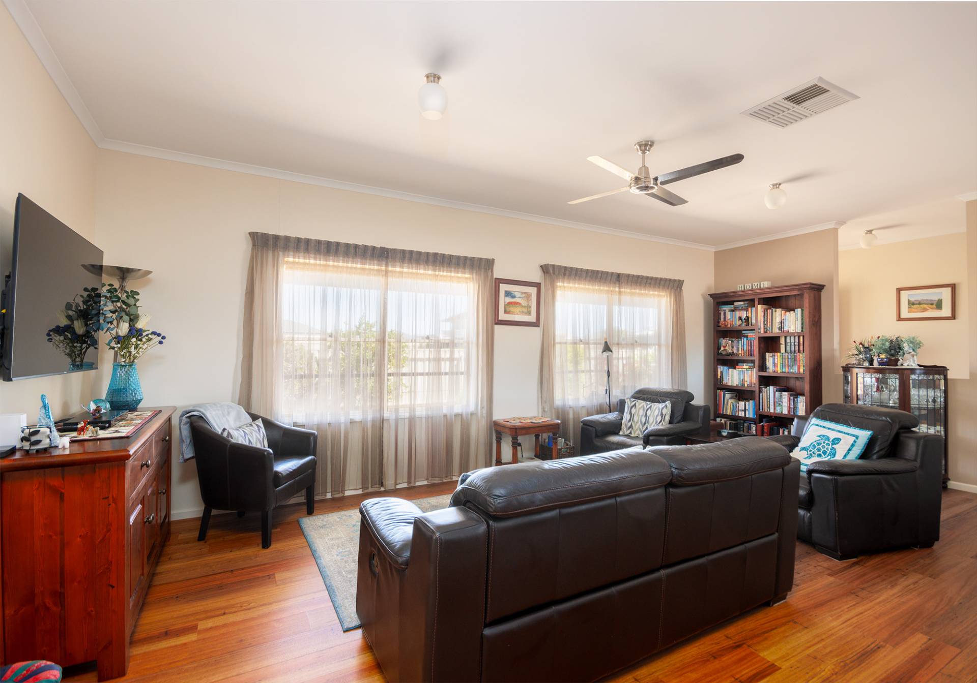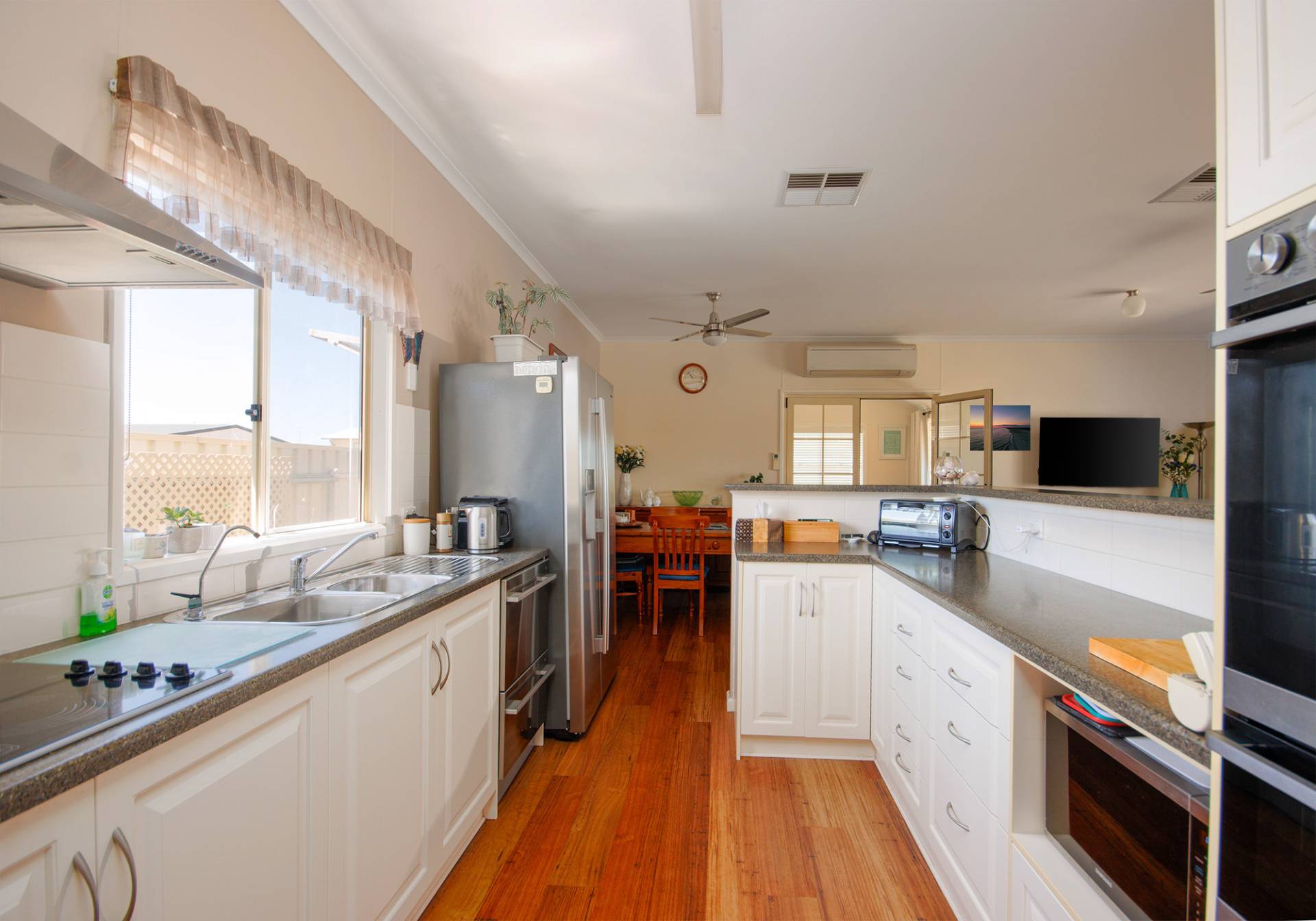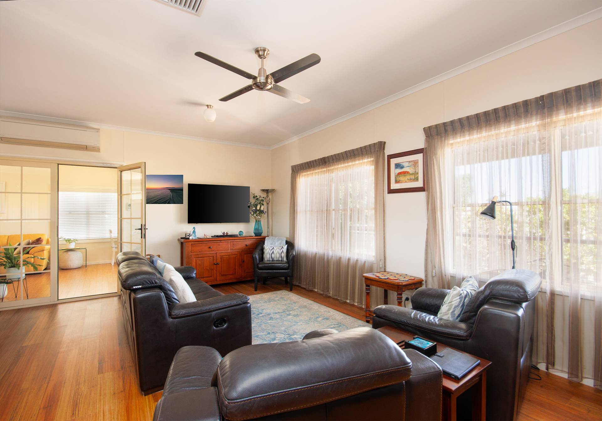 • Energy Efficient: Features ducted evaporative air conditioning, a split system, ceiling fans throughout, insulation, and solar electricity to help you save on energy bills.