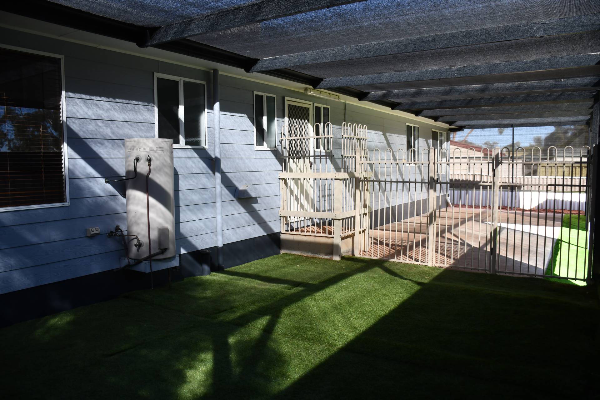 Low maintenance Front and back yard with artificial turf in the back