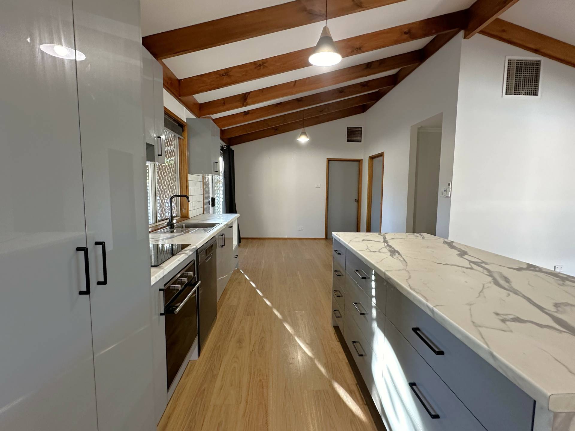 - Kitchen complete with electric cooktop, oven, dishwasher, sink and island bench.