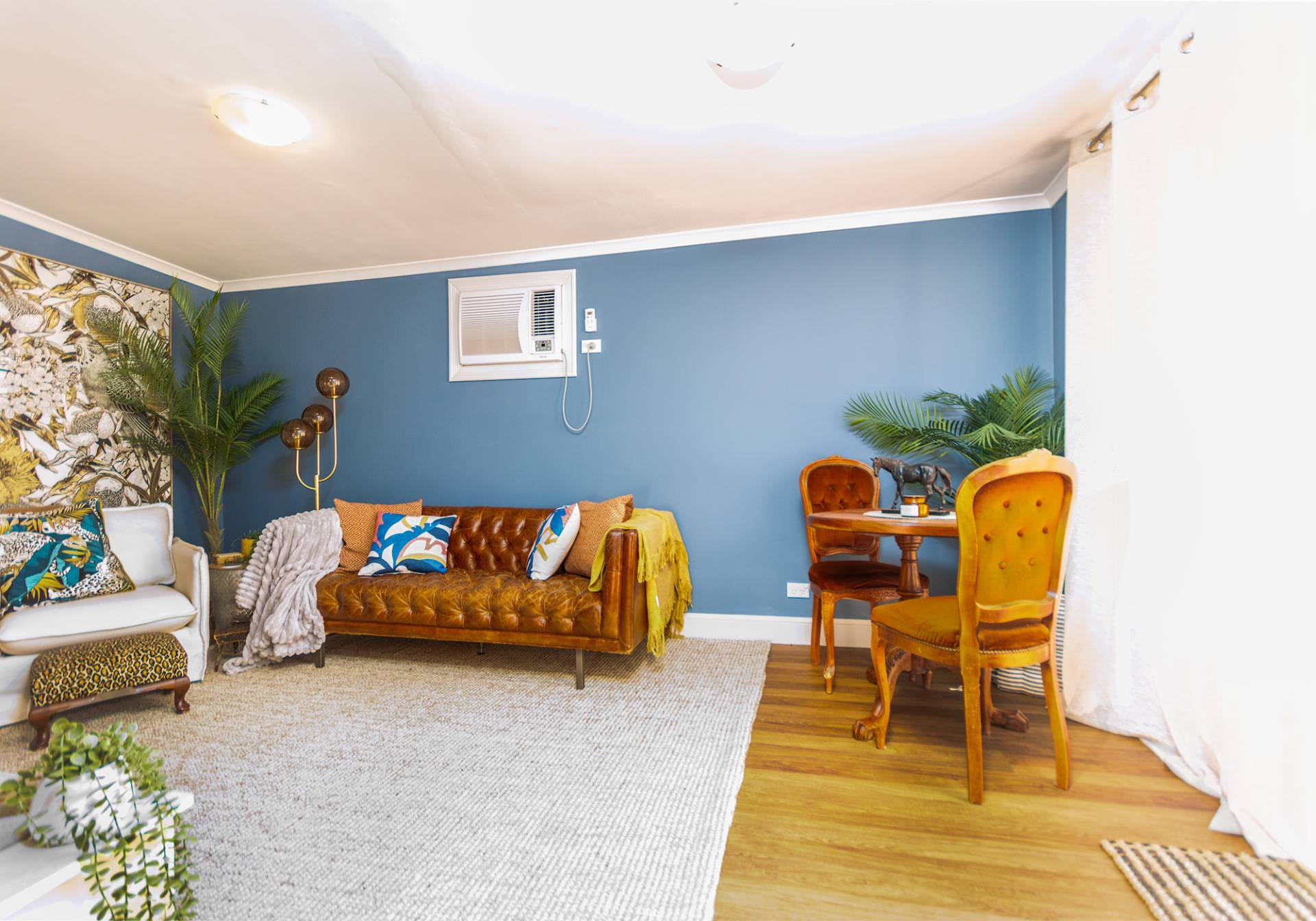 ·        Luxurious Bathroom: Behind a stylish barn door lies a modern bathroom with a glass-walled shower & a clawfoot bath, perfect for indulgent relaxation.