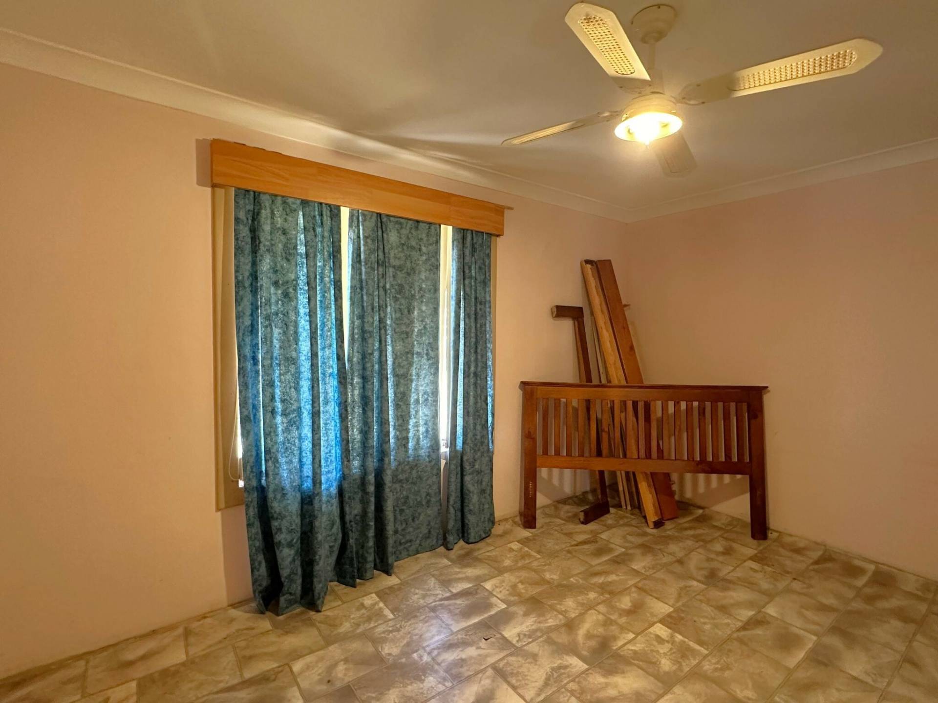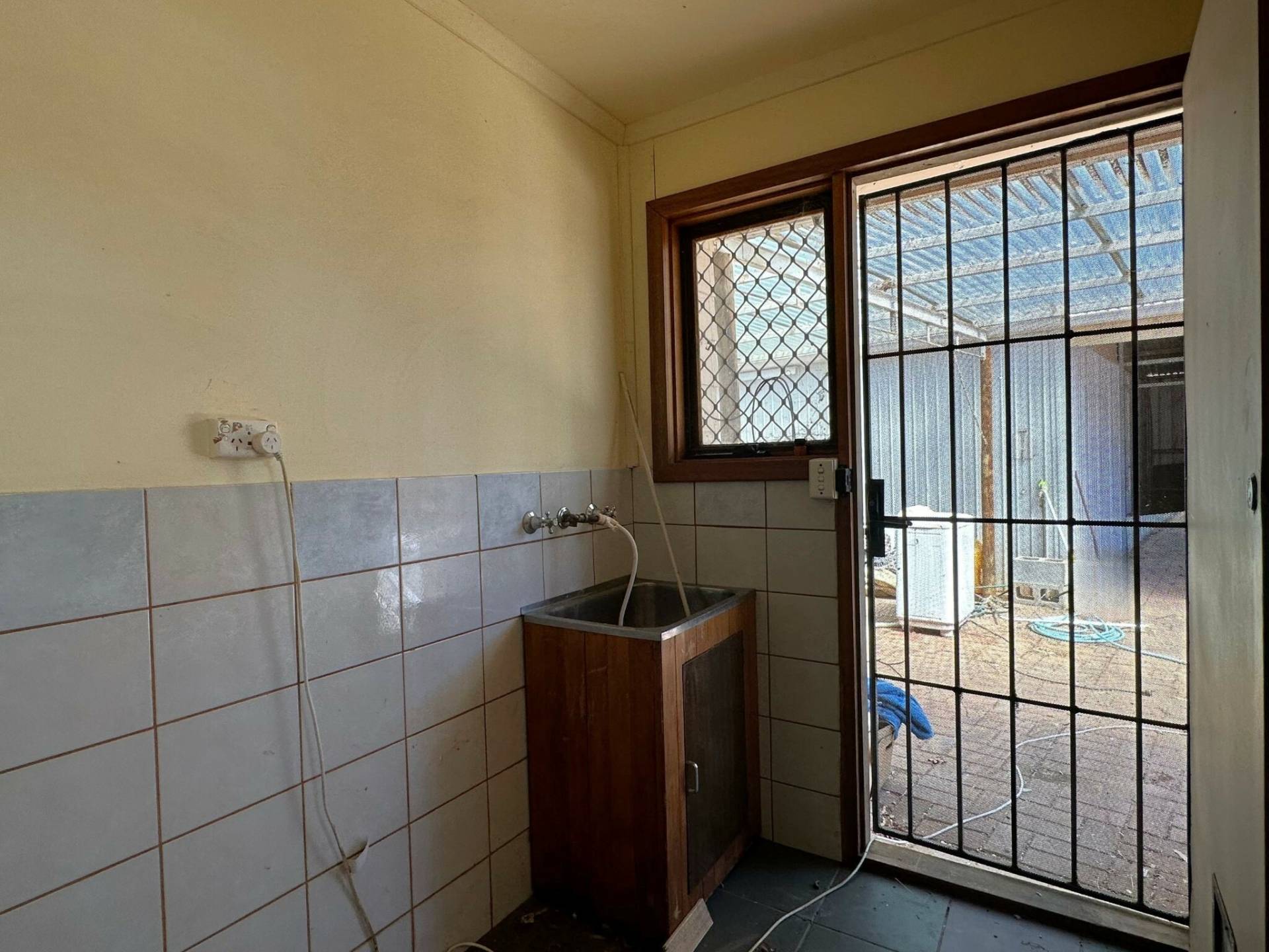 Down the hall, you'll find a built-in cupboard and two bedrooms. The bathroom includes a shower, toilet, and vanity. The laundry boasts a stainless steel wash trough and provides convenient access to the rear verandah.