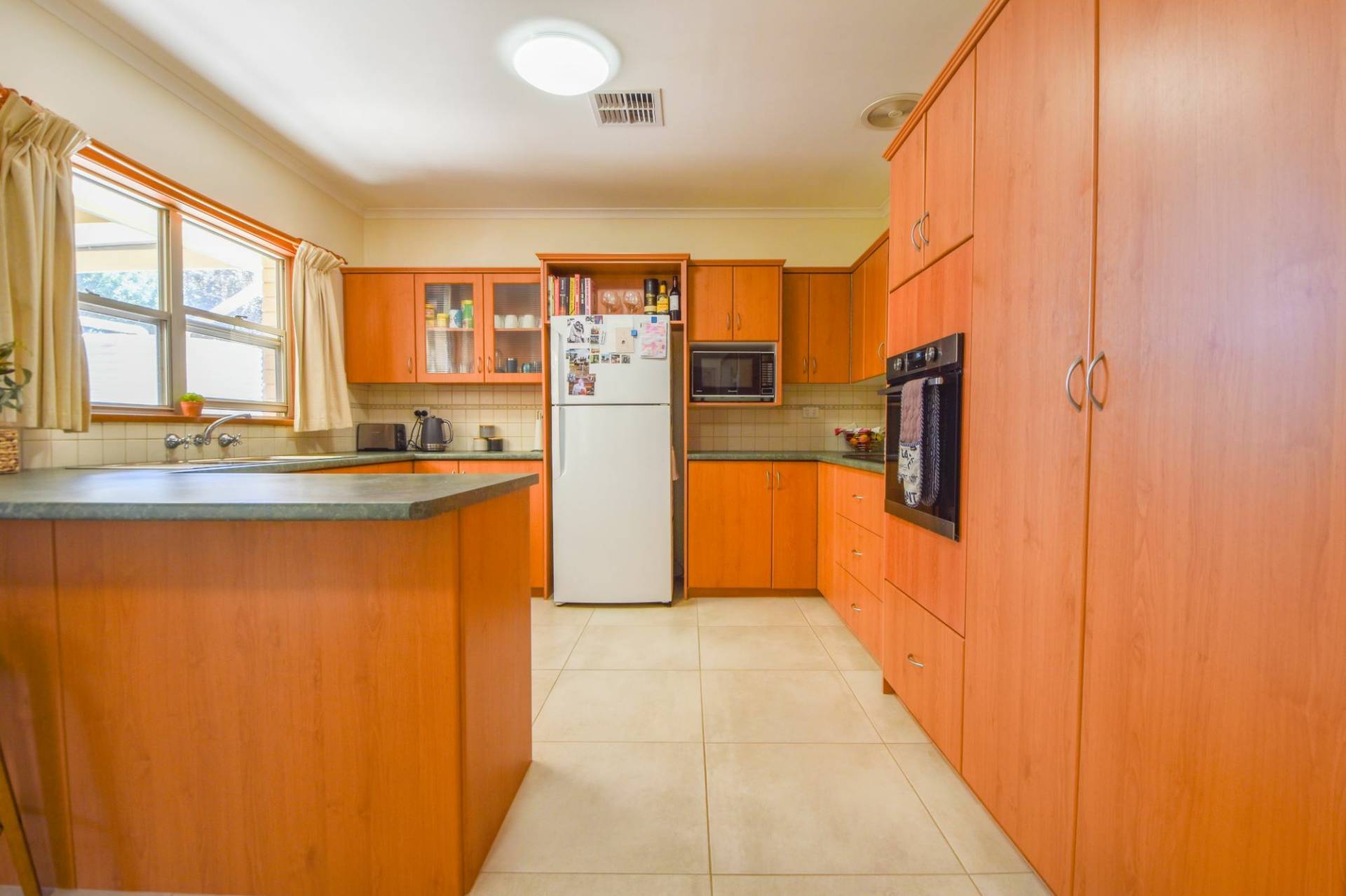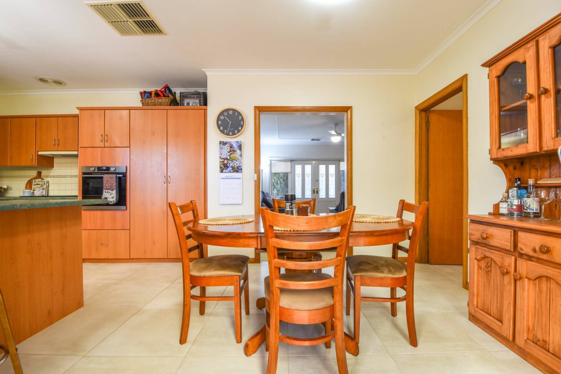• Open-plan kitchen and dining area with fresh re-tiling, laminate cabinetry, electric wall oven, cooktop, pull-out rangehood, and built-in pantry.