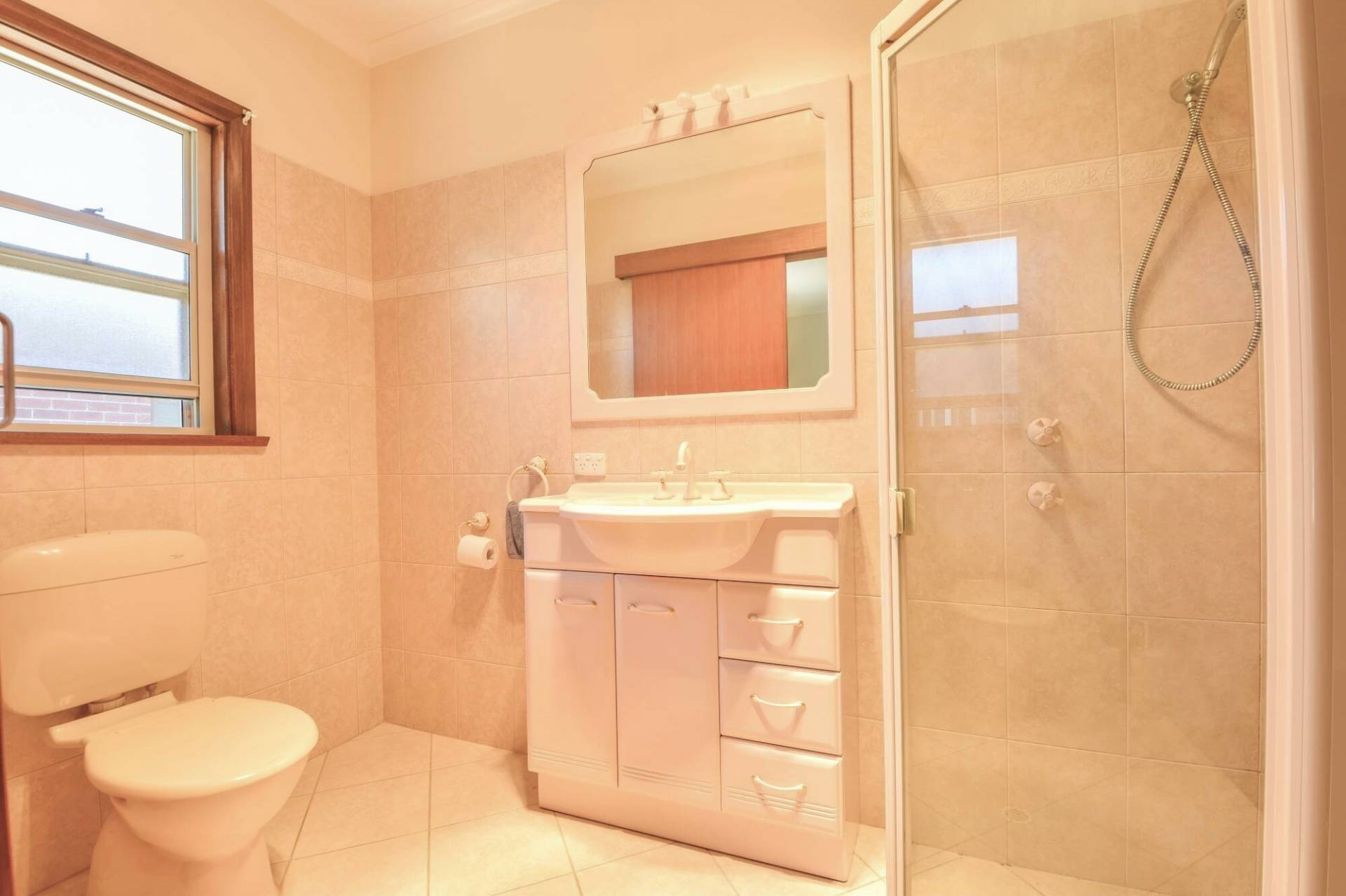 • Master bedroom includes an ensuite with shower, single vanity, and toilet.