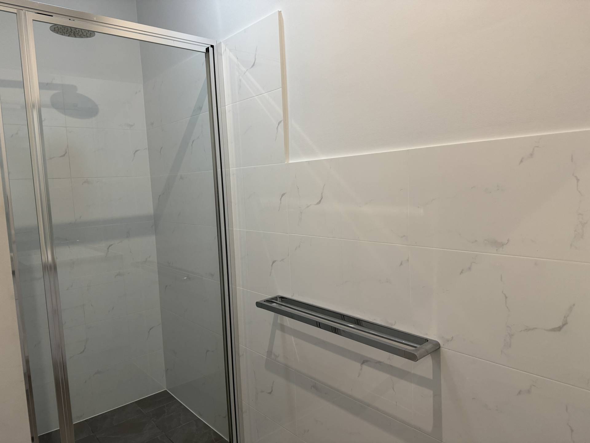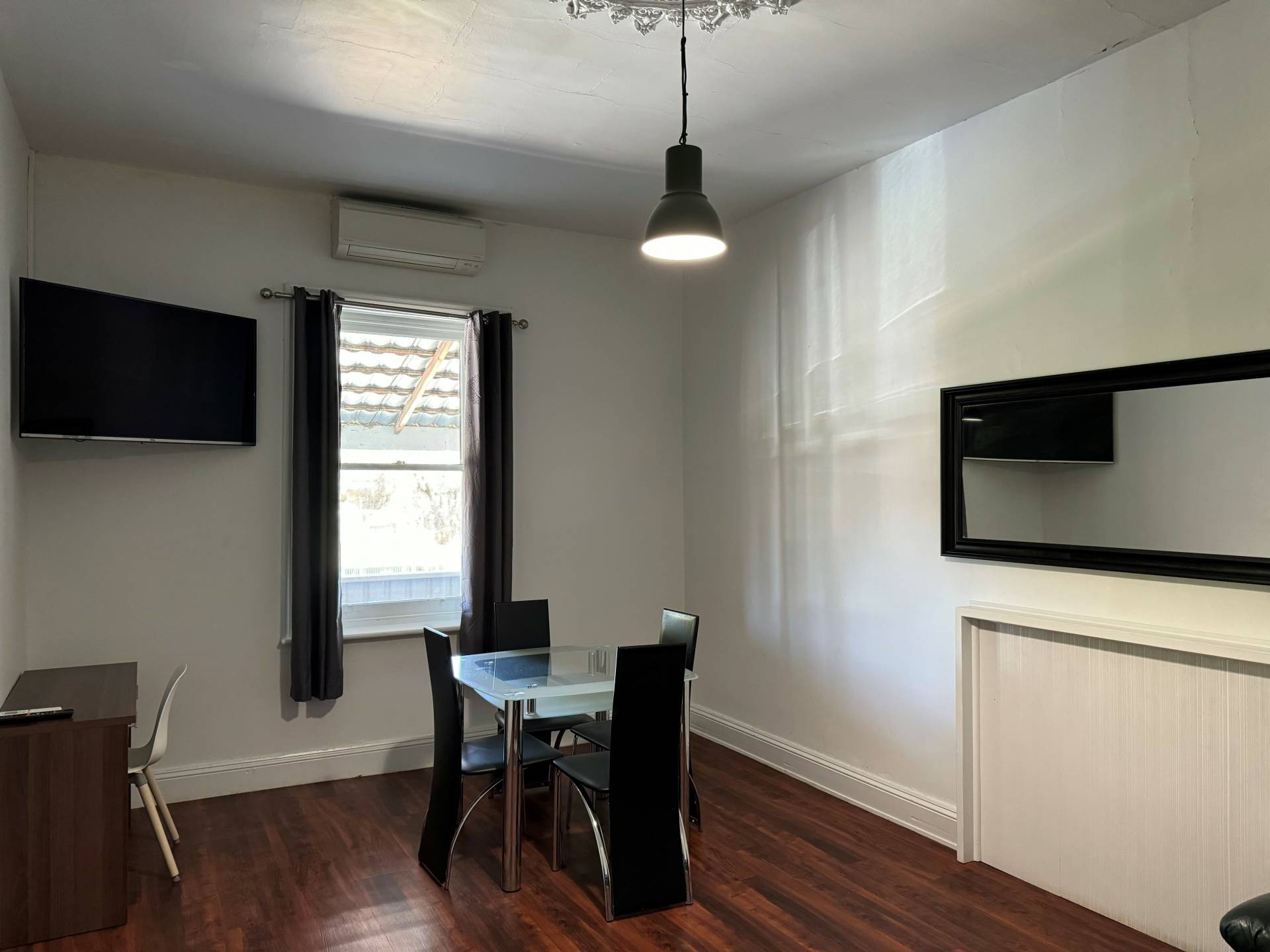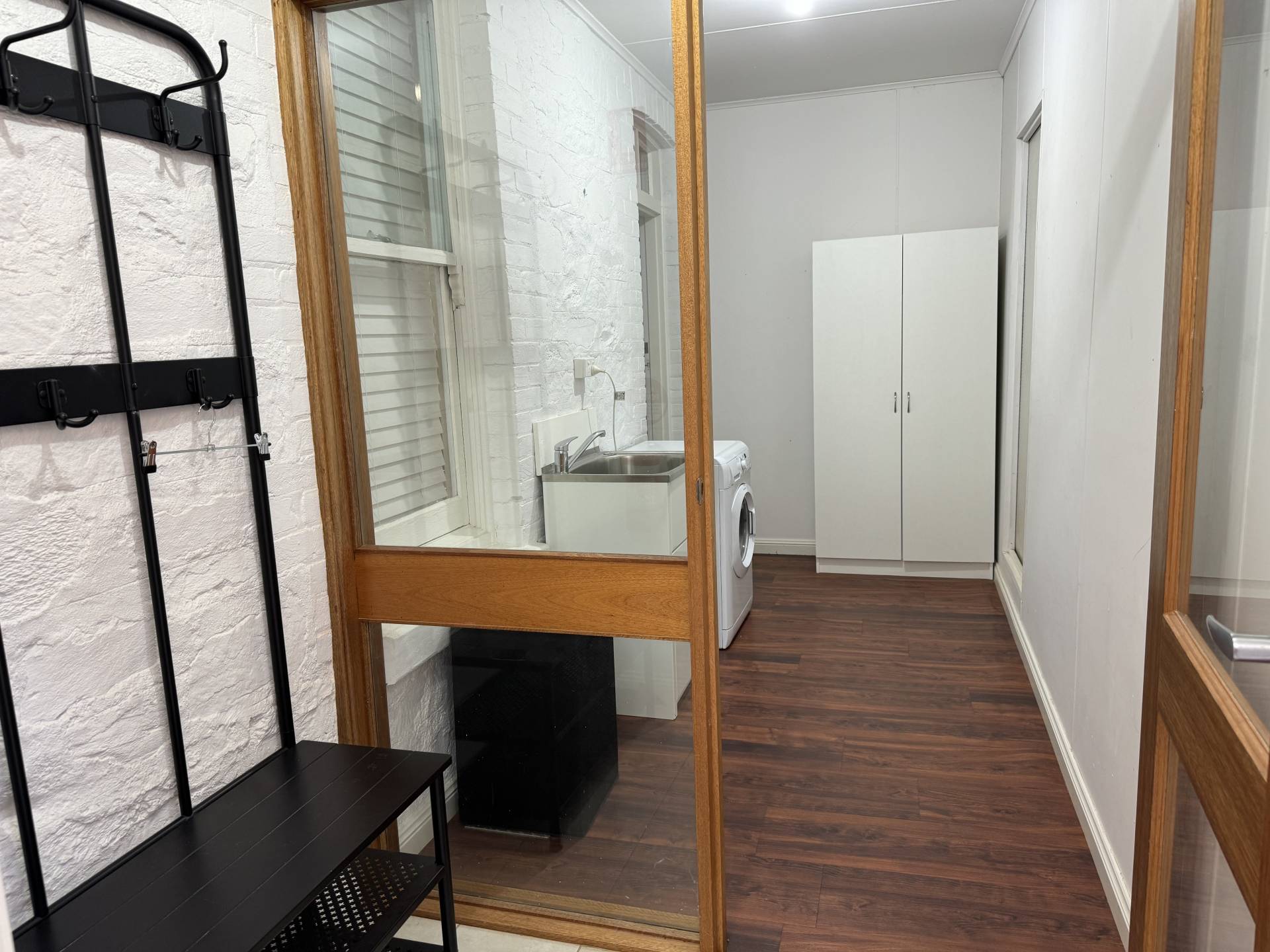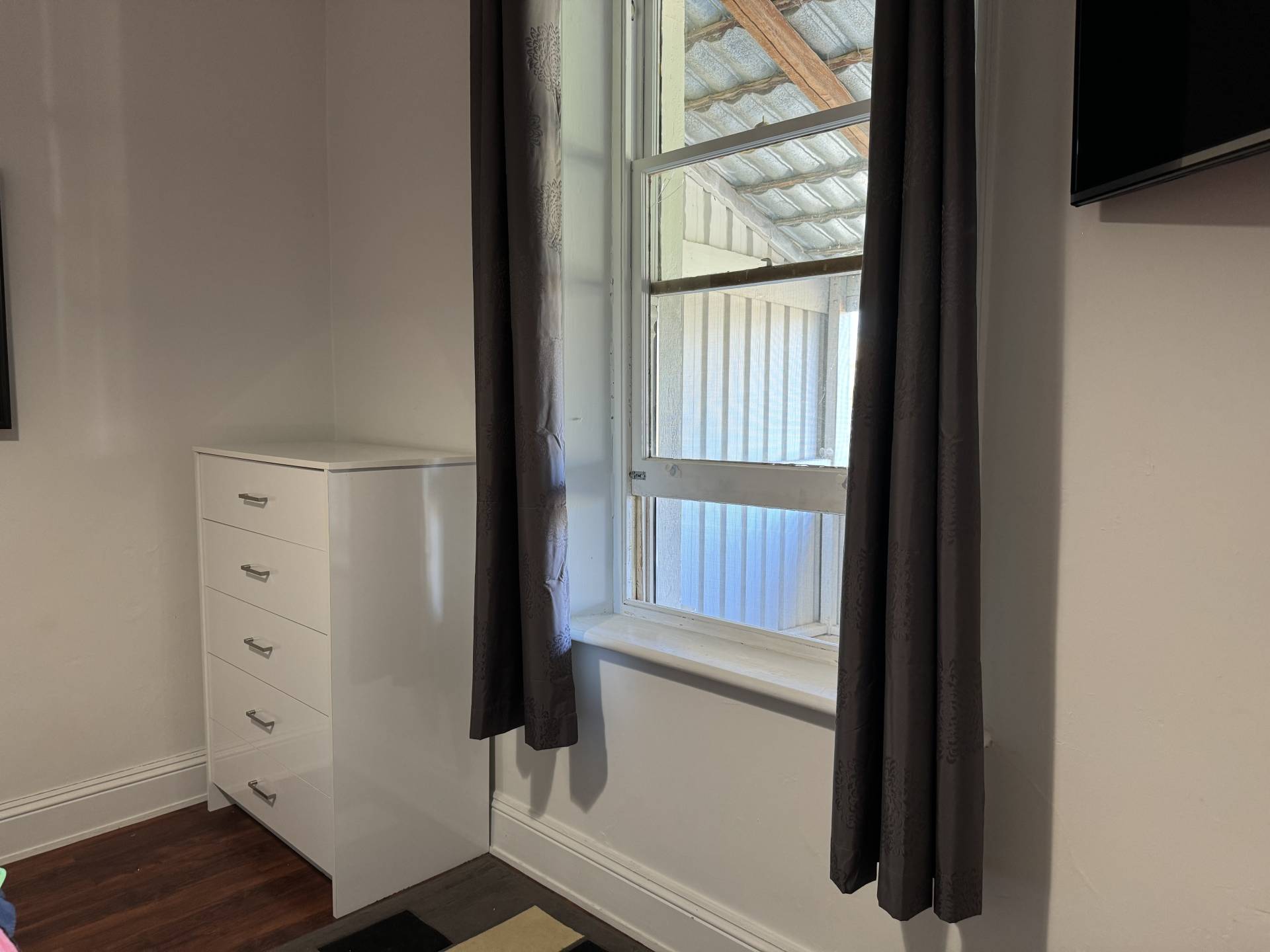 - Bedroom with S/S A/C for heating & cooling, queen bed, draws & small open wardrobe racks.
