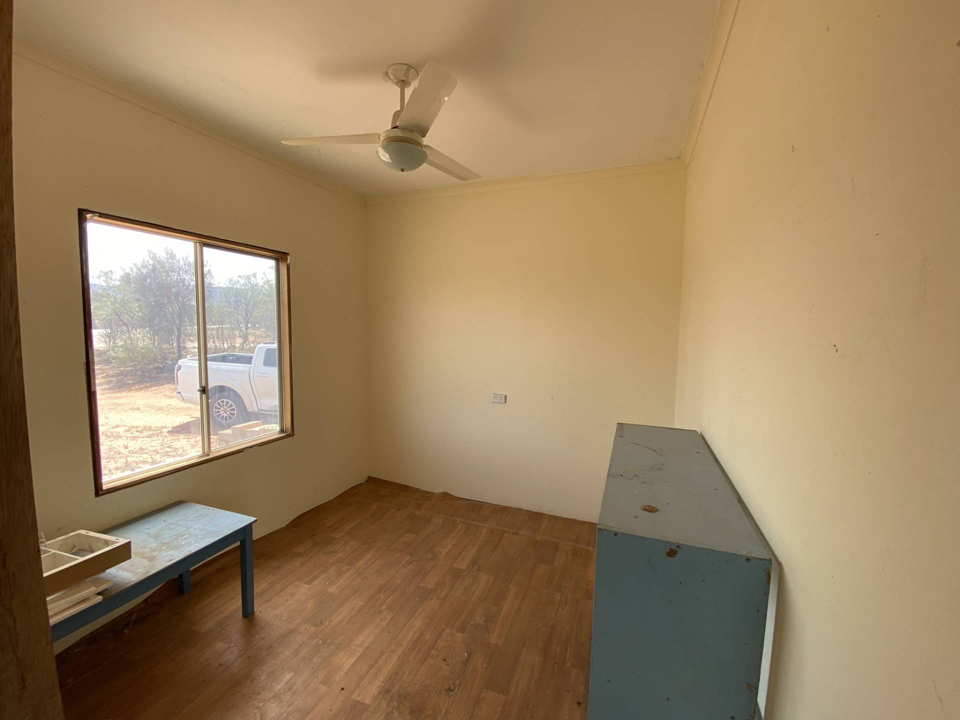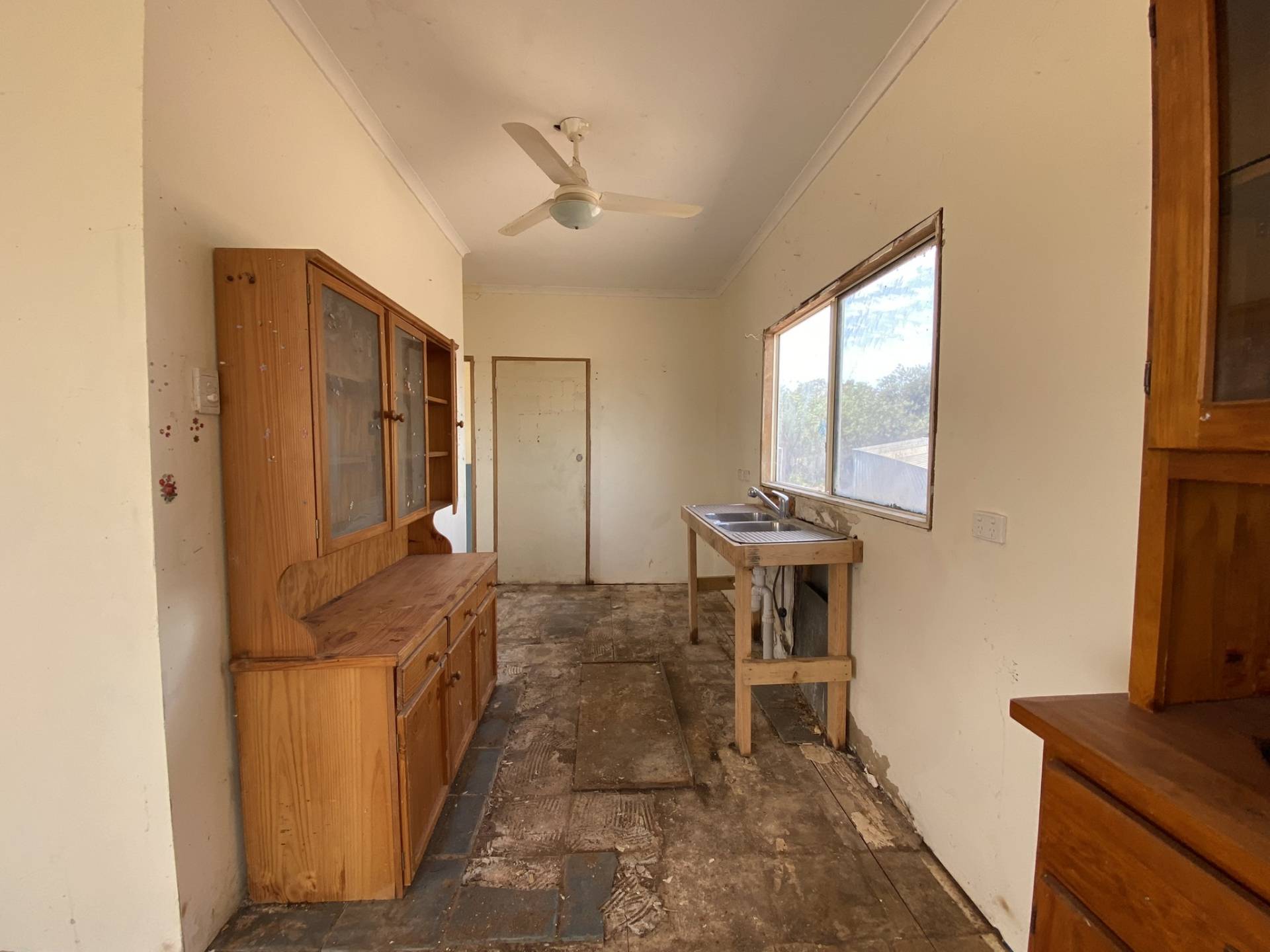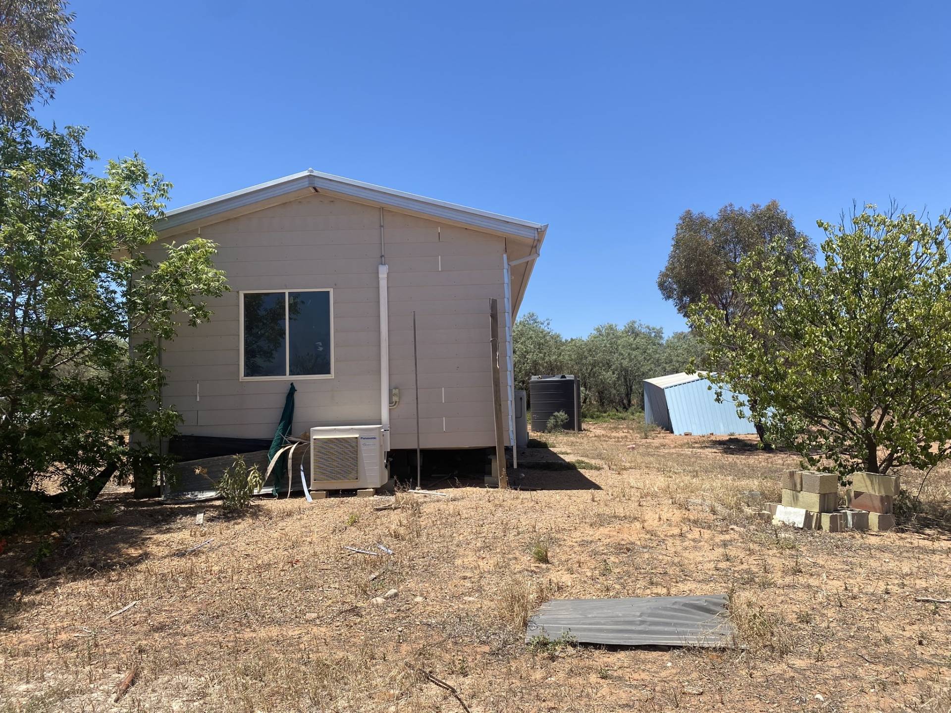 The two-bedroom transportable home at the front of the block is in need of a full renovation or fit-out. It includes a lounge, kitchen, bathroom/laundry, and two bedrooms—perfect for those with a vision to transform the space into something special.