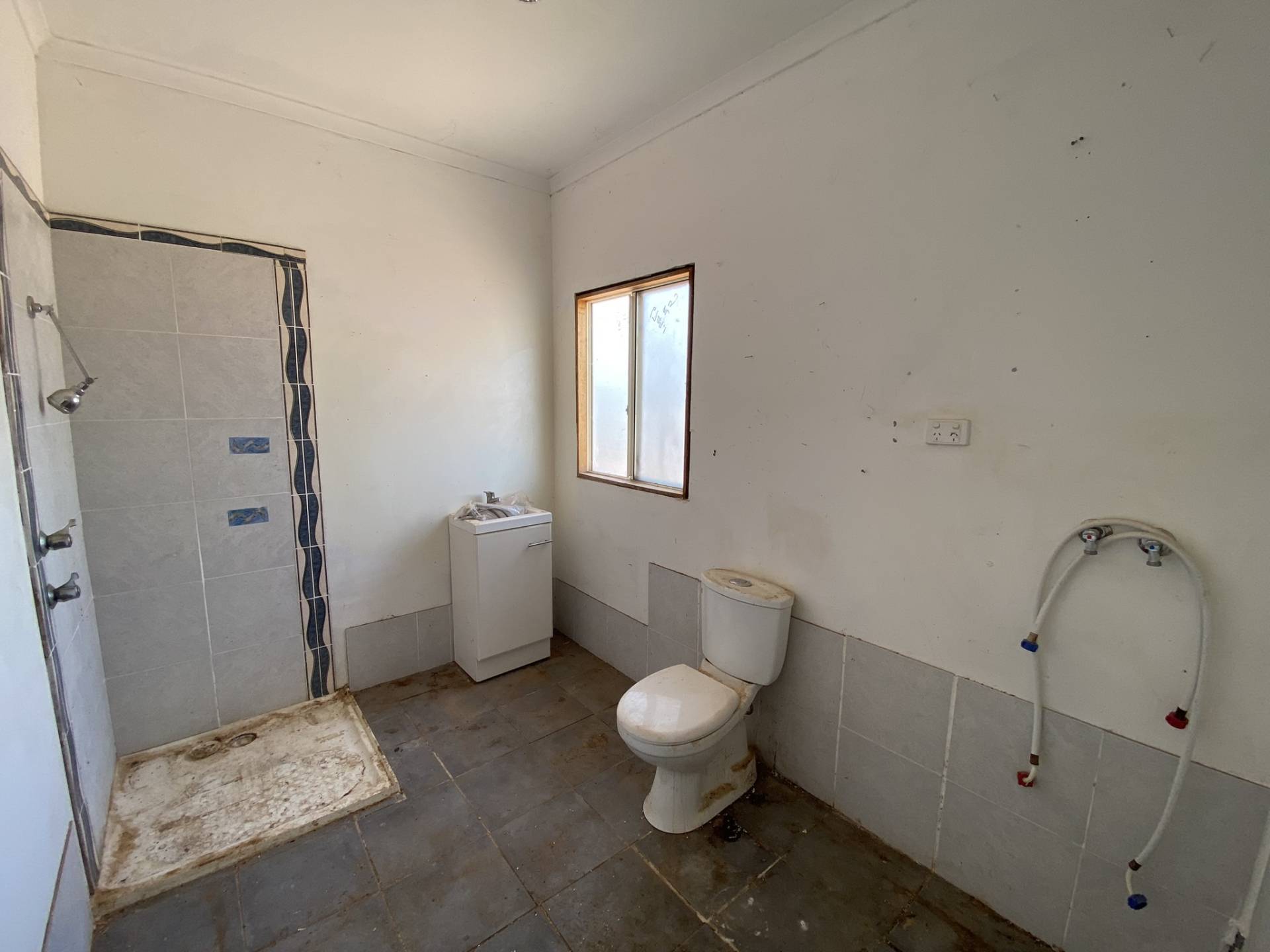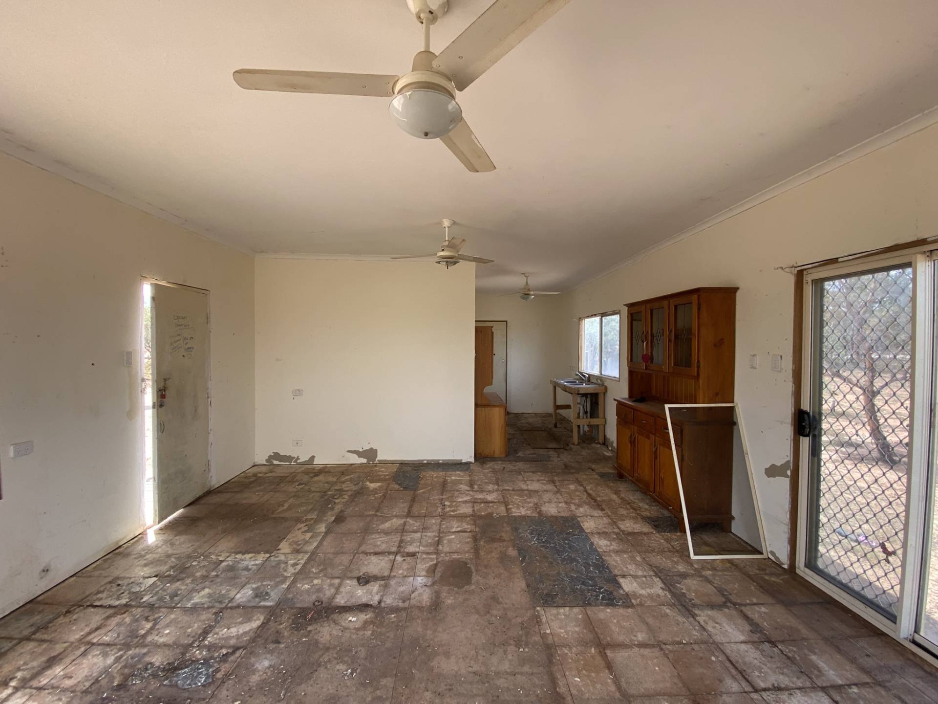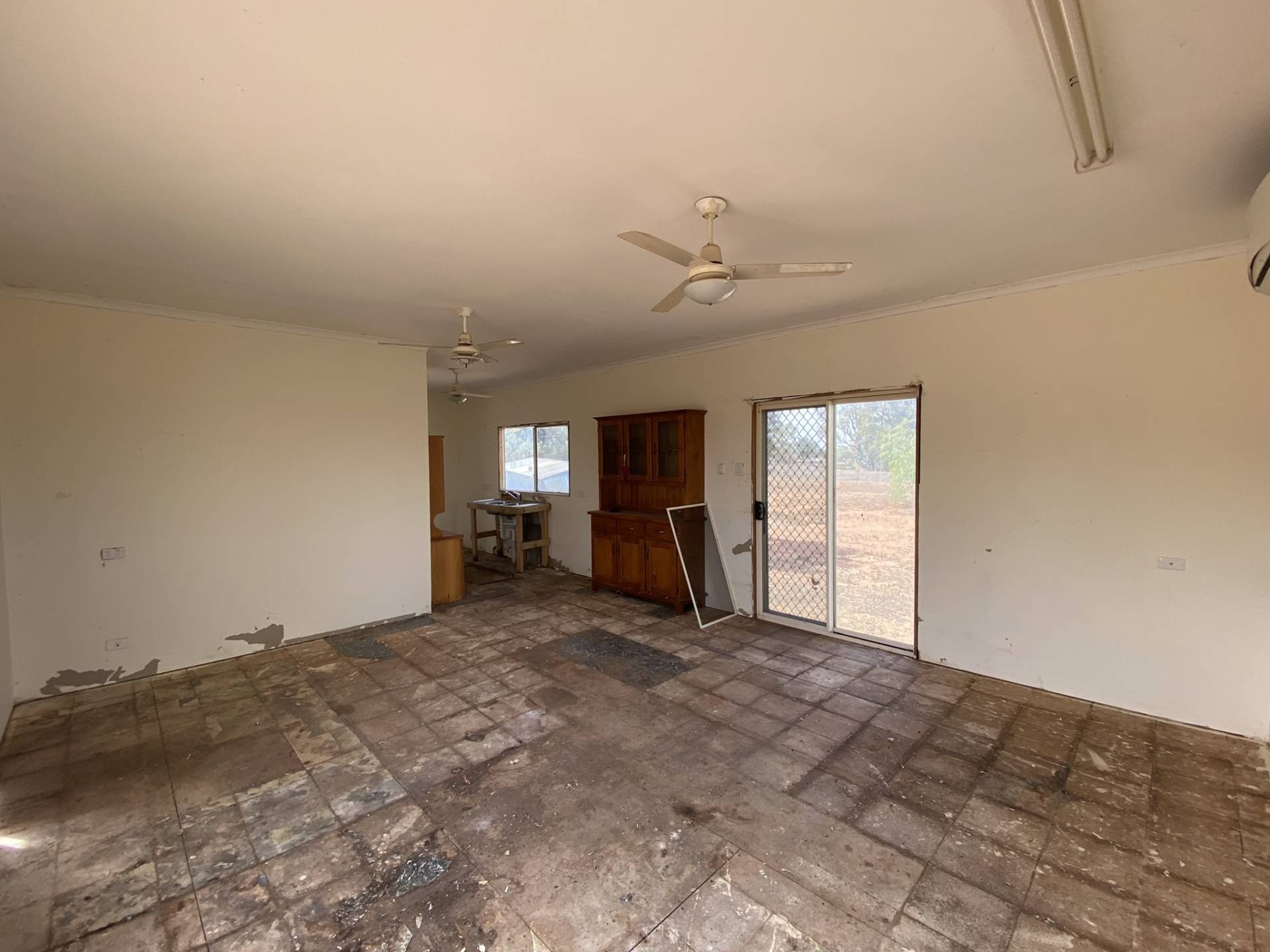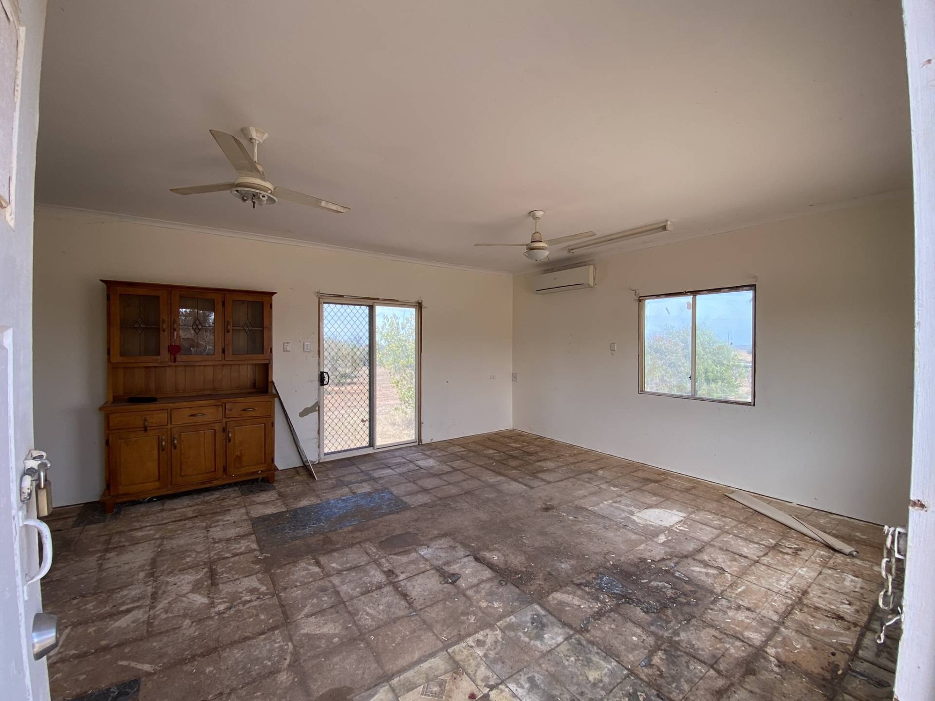 The two-bedroom transportable home at the front of the block is in need of a full renovation or fit-out. It includes a lounge, kitchen, bathroom/laundry, and two bedrooms—perfect for those with a vision to transform the space into something special.