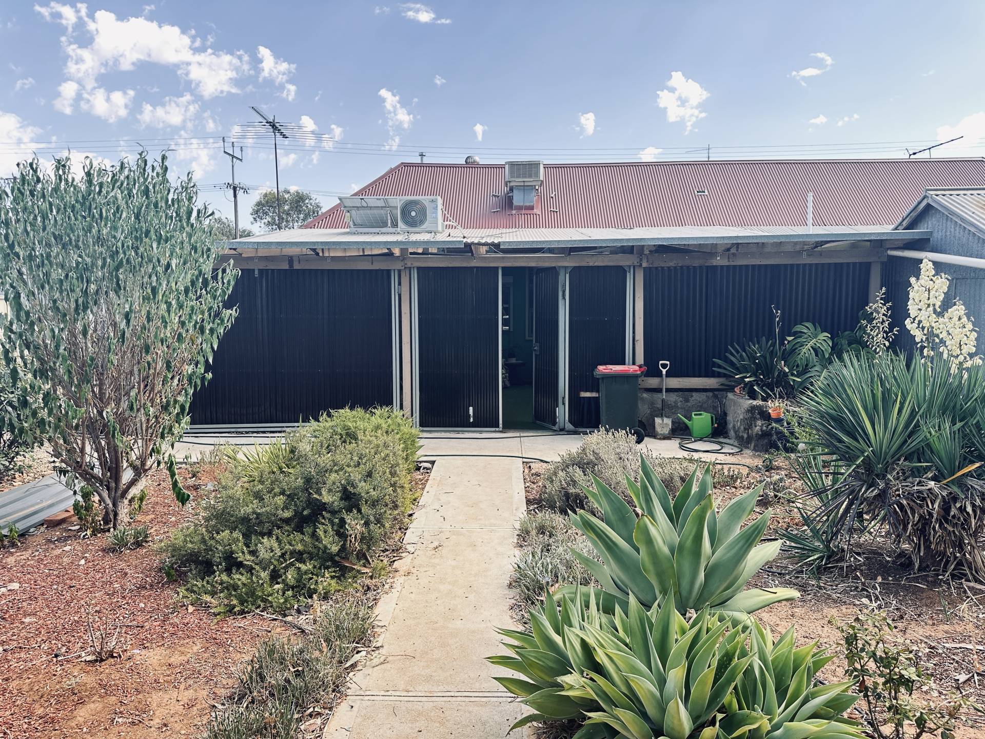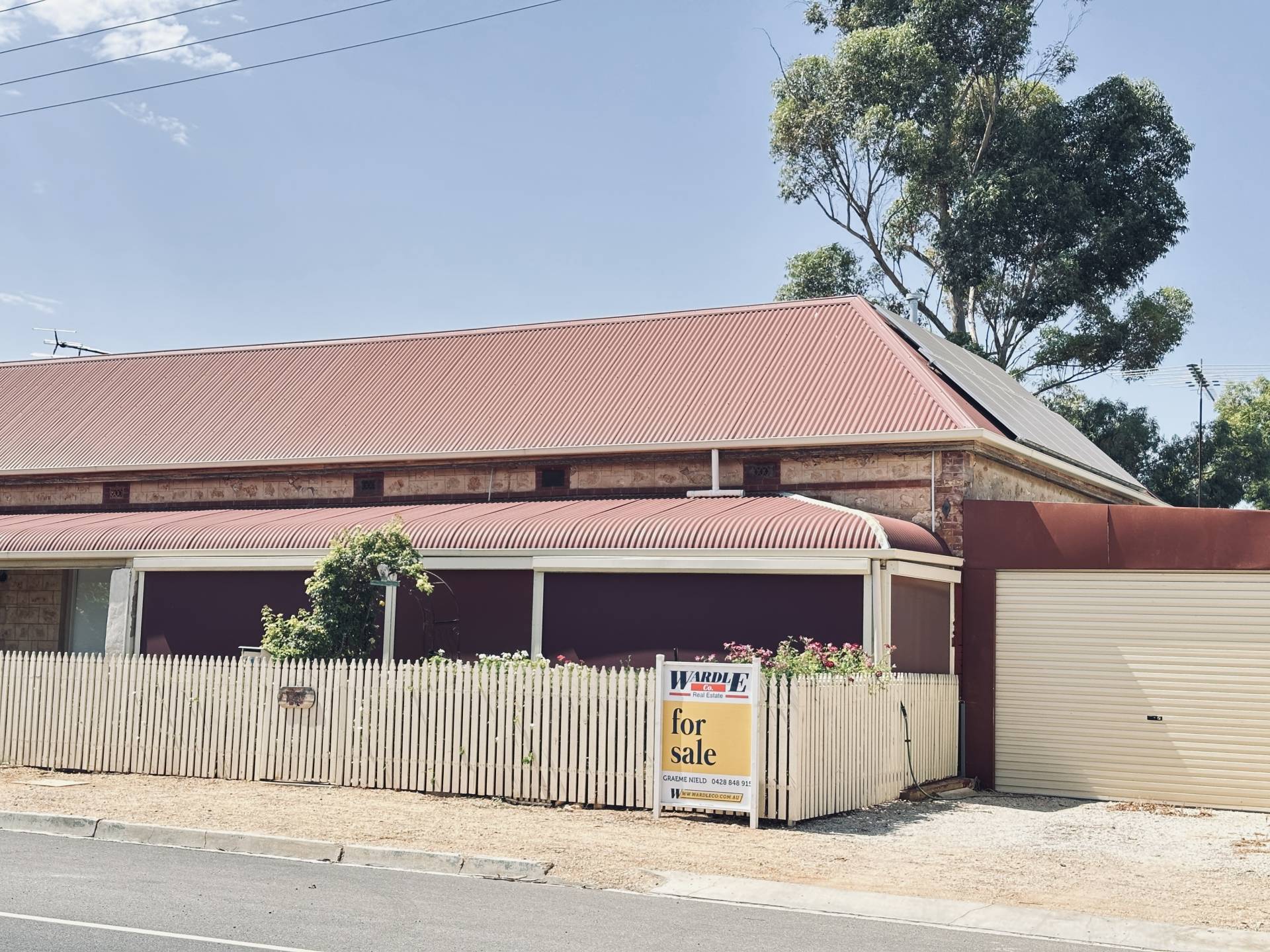 Circa 1890 charming and great street appeal.  Maisonette with bull-nosed verandah and 2 electric blinds and cottage style front garden.  Single carport and timber picket fence.  Central hallway with 3 double sized bedrooms with R/C split system for all year round comfort.  Spacious central lounge room with gas heating, high ceilings and evaporative A/c.  Large bathroom with claw footed bath, shower, vanity & toilet.  Country styled kitchen dine area with long kitchen bench and R/C split system A/c.  A water feature in the pergola area with indoor plants.  Outside laundry.  A 6m x 9m shed with structure board flooring.  Established fruit trees and garden on irrigation on 880m2 block.  3.5Kw of solar and electric roller shutters on most windows.  Easy walk to Balaklava Main Street.  It’s a gem.