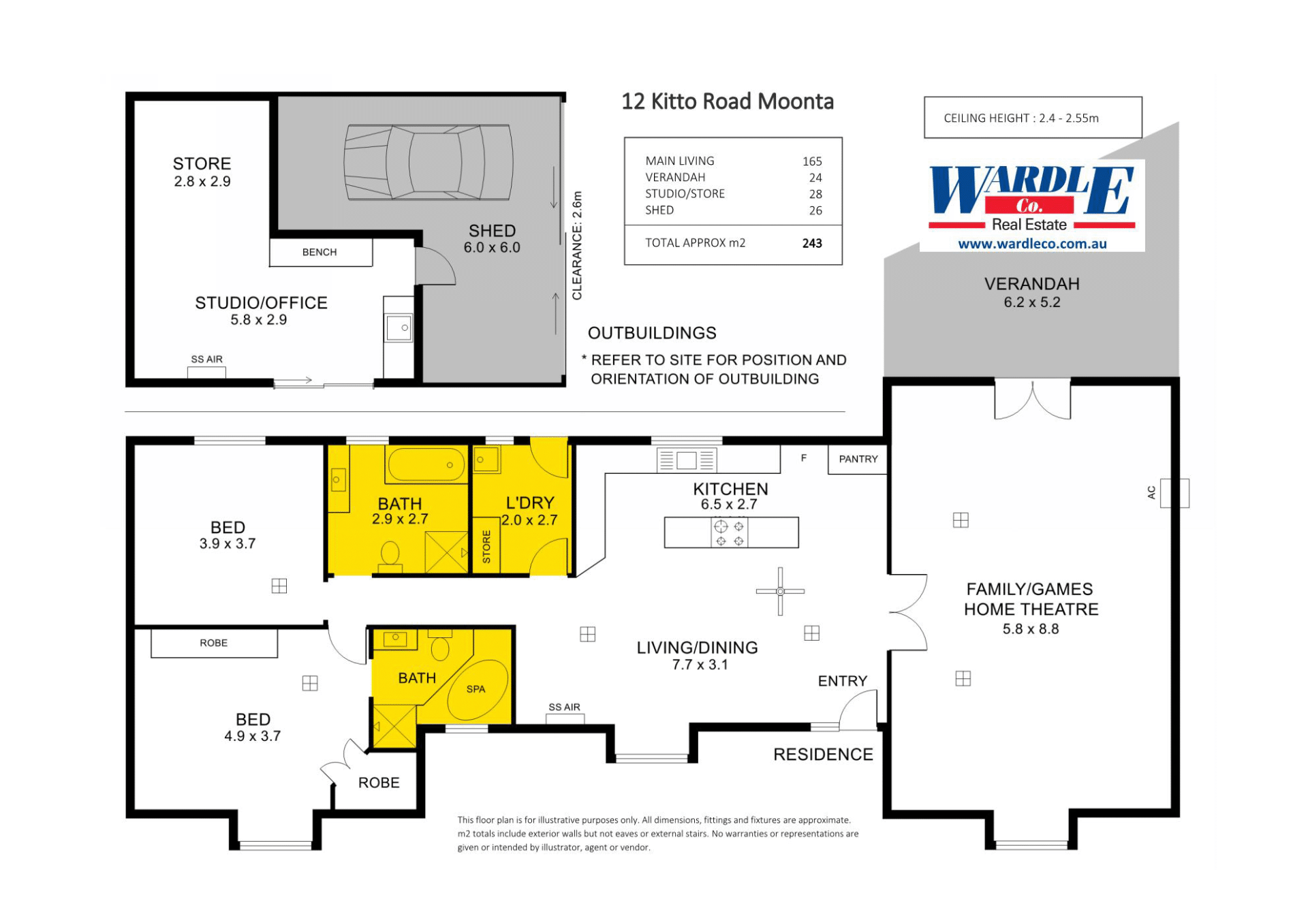 Inside, the home offers two spacious bedrooms, including a master suite, featuring a bay window, built-in cupboards & an ensuite, complete with a spa bath, shower, vanity & W/C. The second bedroom is well-sized, with ample room to add built-in storage. The main bathroom is equally generous, offering a shower, bath, vanity & a W/C. Comfort is ensured year-round with a reverse-cycle split system, ceiling fan & evaporative air-conditioning throughout the home.