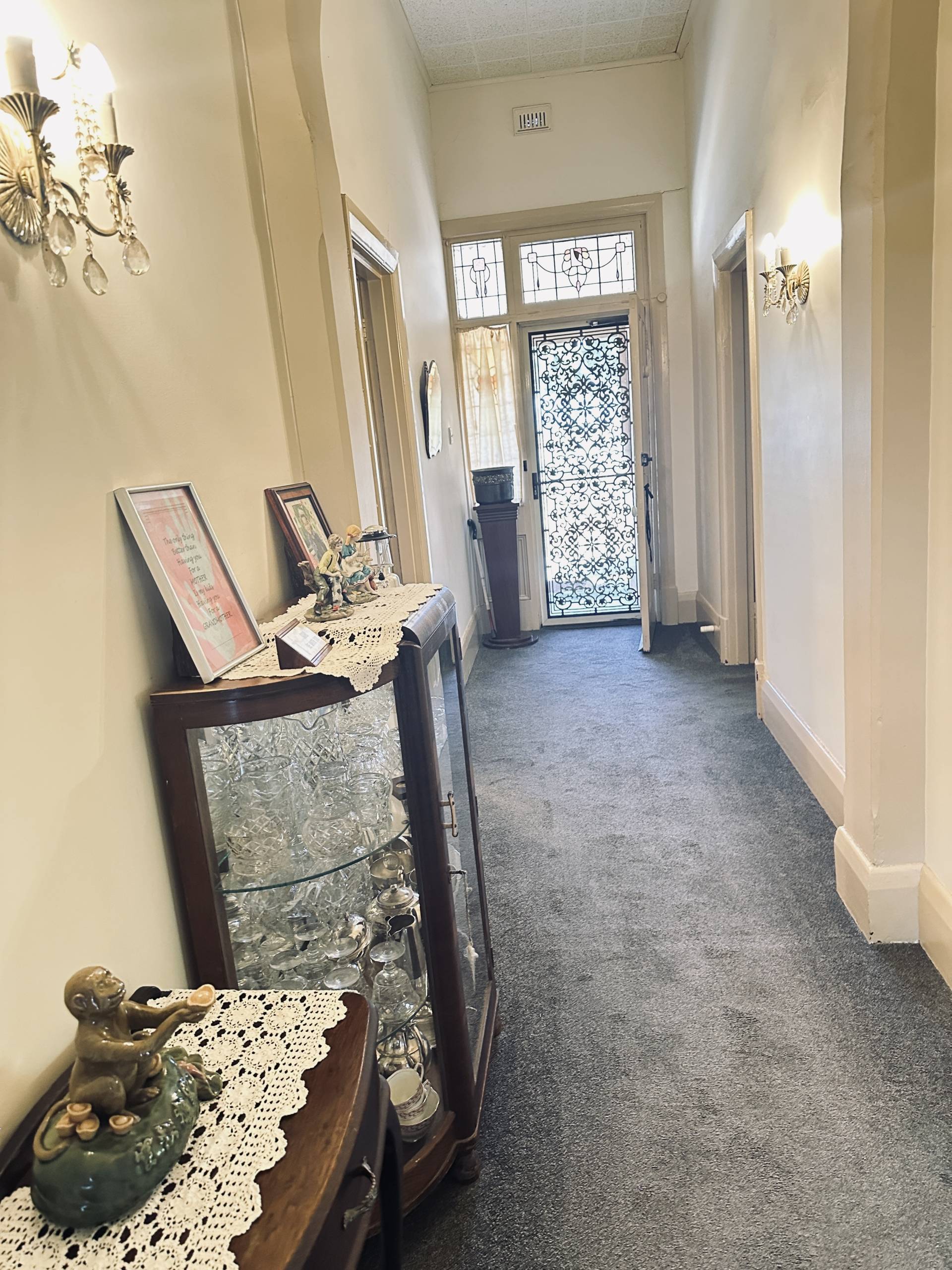 High ceilings, leadlight glass and central hallway.  Two double-size bedrooms and third child’s bedroom.