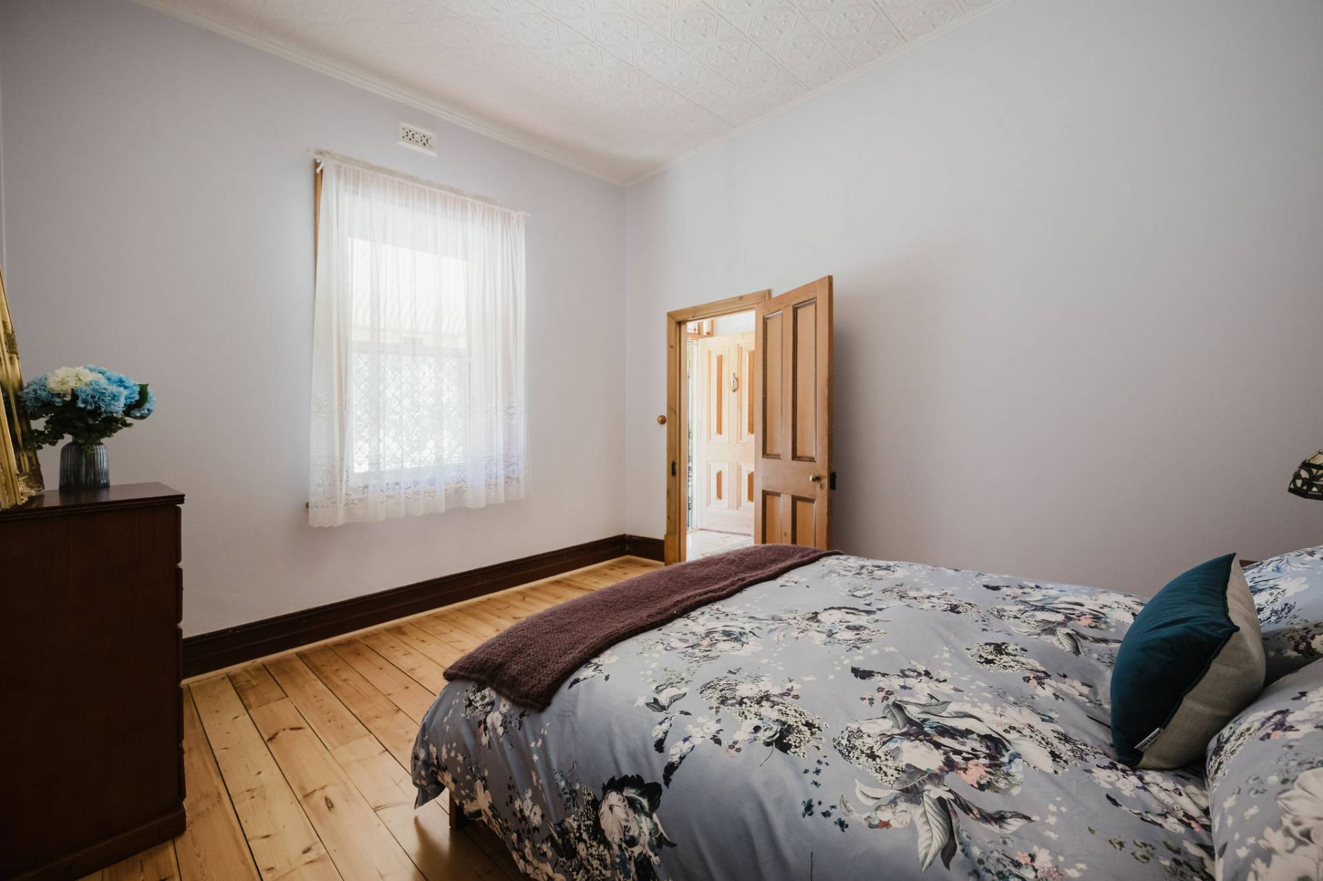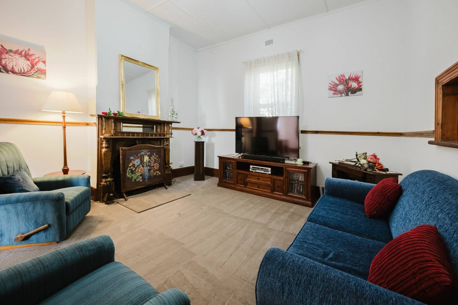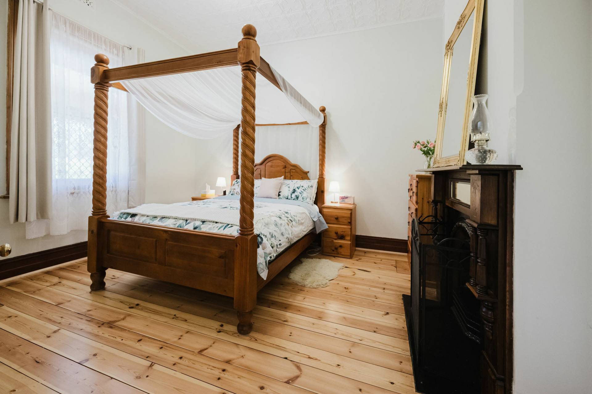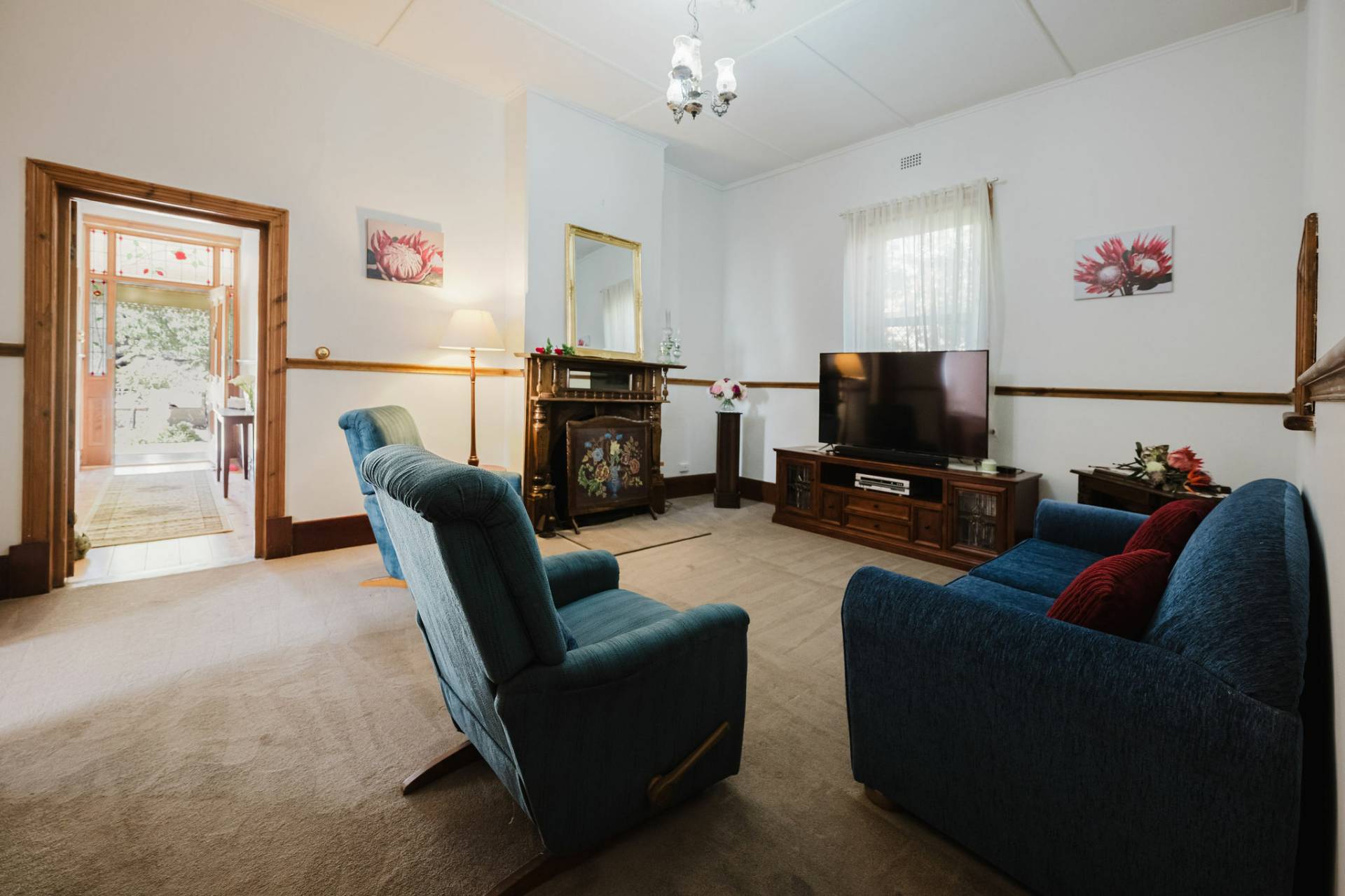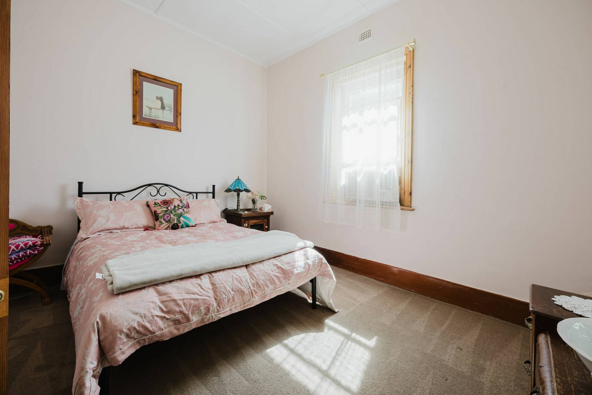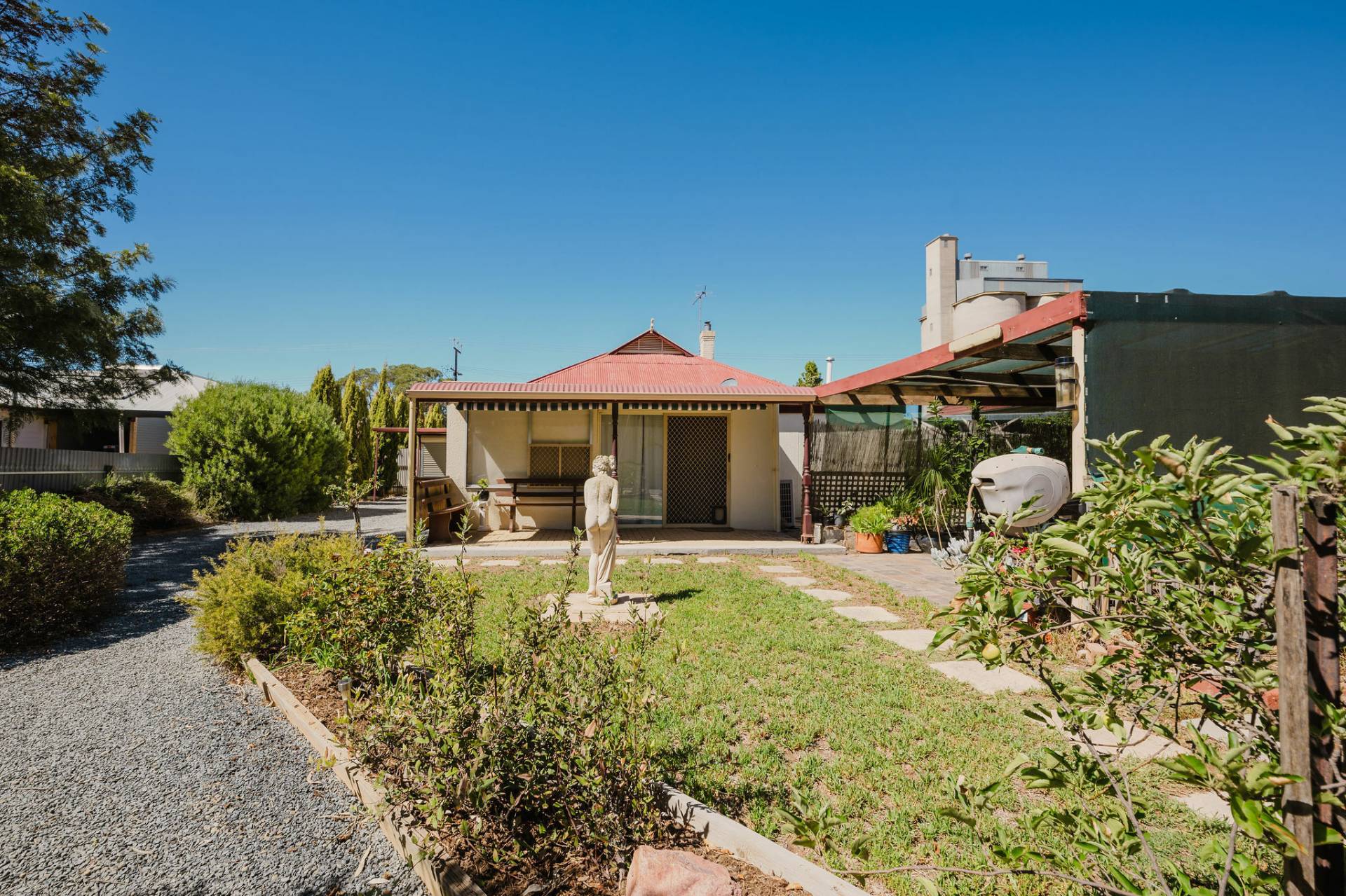 The home is an appealing Freestone symmetrical cottage built in 1898 with an iron roof and bullnose verandah and lacework. The entrance has beautiful lead light windows and a wide passage. The front two bedrooms are large with high pressed tin ceilings and open fireplaces. The third bedroom is a good size with carpeted flooring. The spacious lounge room has an open fireplace and ornate ceiling roses. The large kitchen consists of timber cupboards, gas stove and single sink. The bathroom also has leadlight windows, a tiled floor and timber vanity, shower, claw foot bath and toilet. A large laundry is located to the rear of the home as is the family room with split system air conditioning. Sliding doors lead to the enclosed rear yard and outside you will find well established gardens, an original single stable garden shed, 30' x 20' shed with power and concrete floor, a single carport with automatic roller door and an outside toilet. As a bonus, the home is serviced by a 5kW solar system.