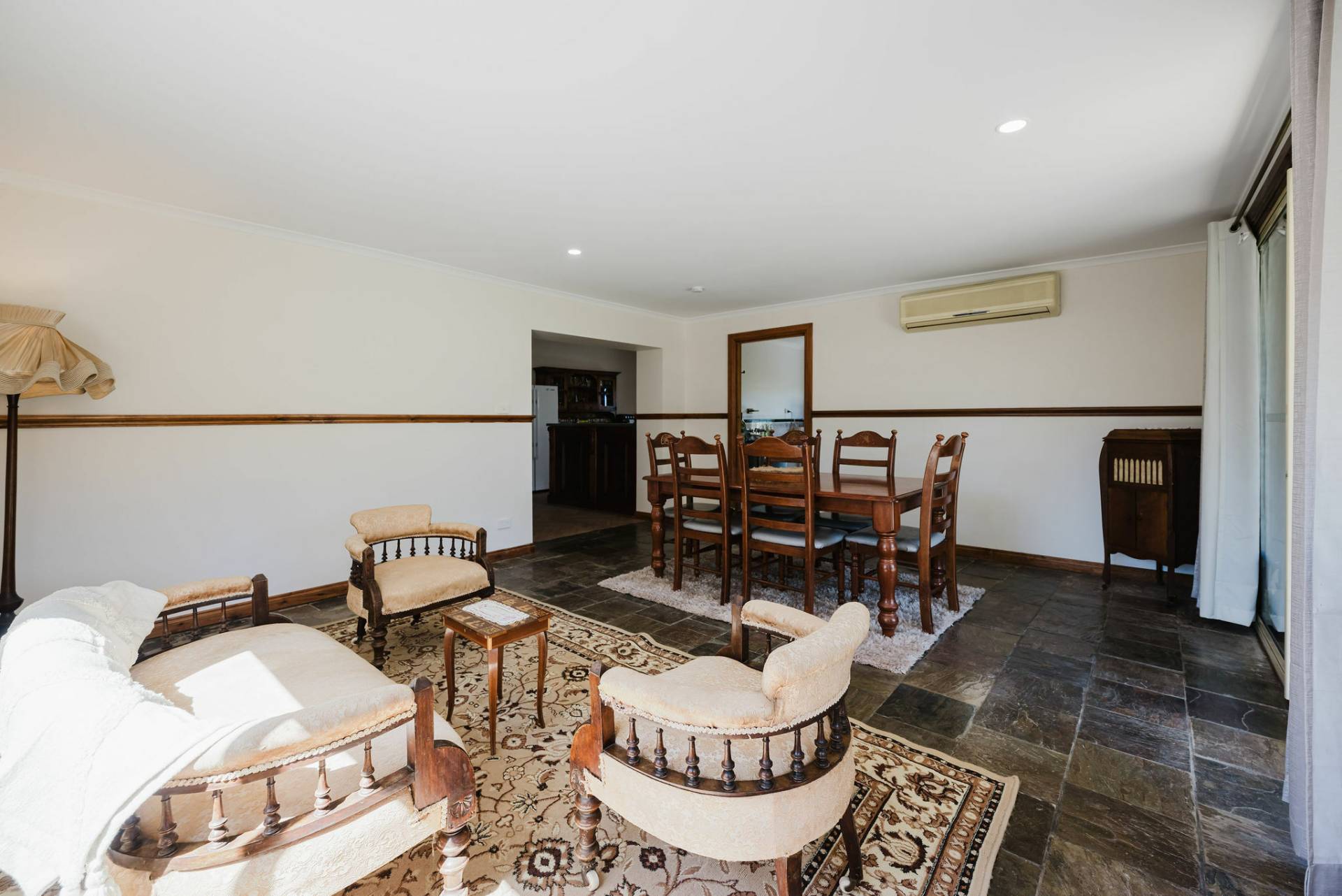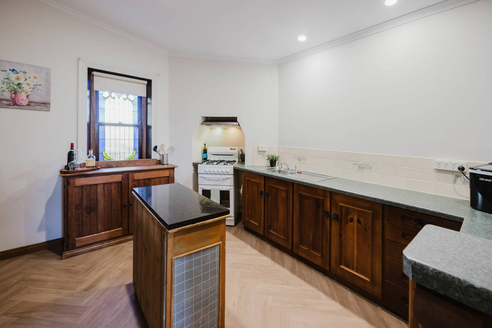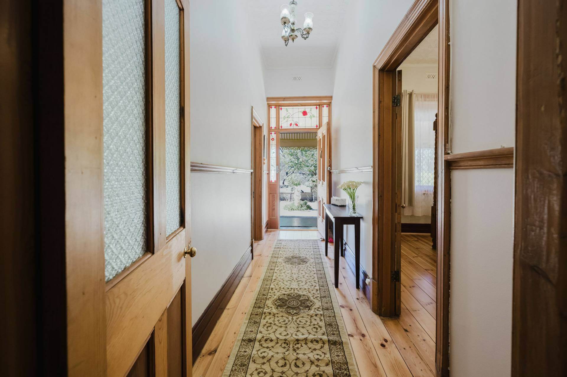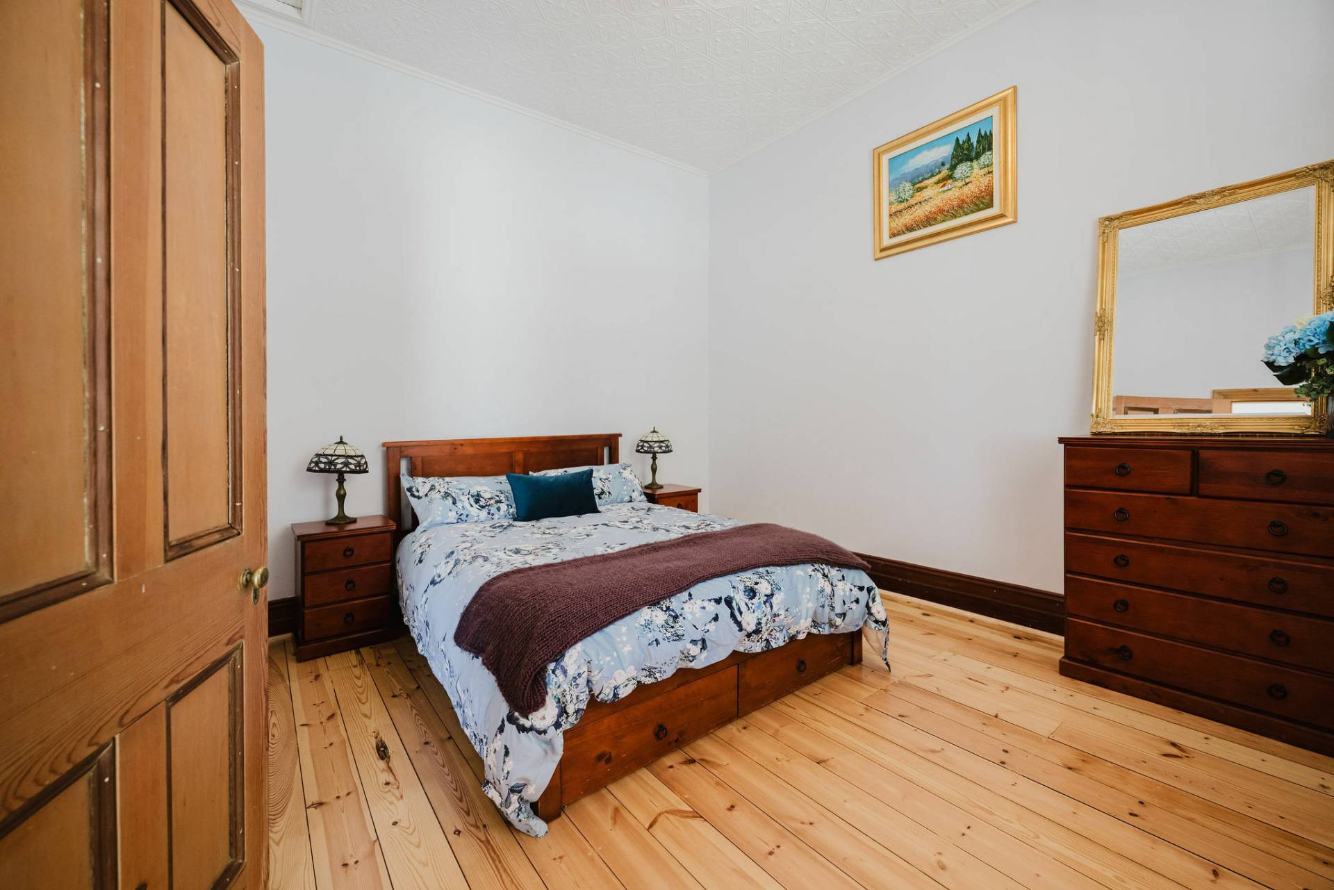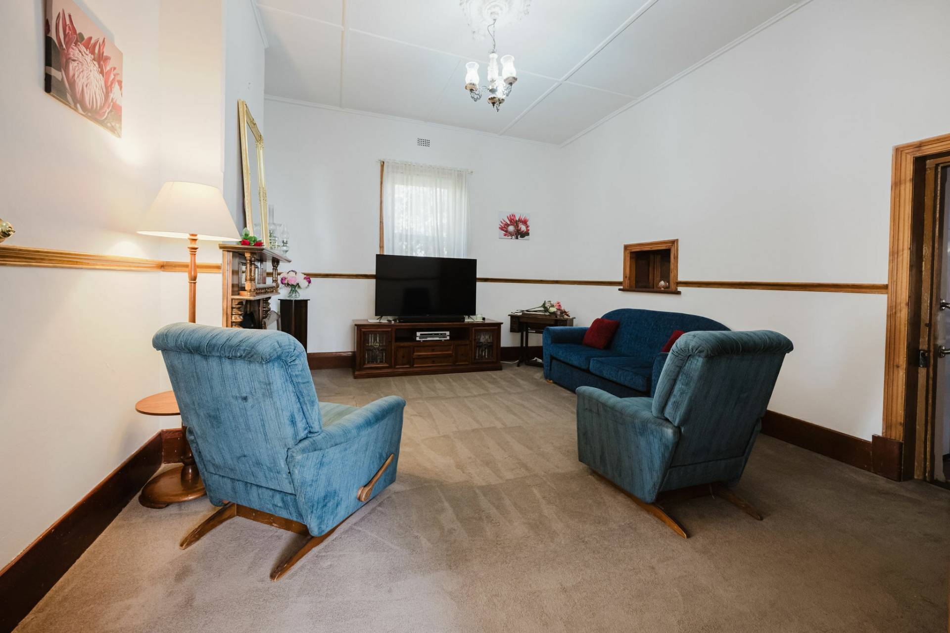 The home is an appealing Freestone symmetrical cottage built in 1898 with an iron roof and bullnose verandah and lacework. The entrance has beautiful lead light windows and a wide passage. The front two bedrooms are large with high pressed tin ceilings and open fireplaces. The third bedroom is a good size with carpeted flooring. The spacious lounge room has an open fireplace and ornate ceiling roses. The large kitchen consists of timber cupboards, gas stove and single sink. The bathroom also has leadlight windows, a tiled floor and timber vanity, shower, claw foot bath and toilet. A large laundry is located to the rear of the home as is the family room with split system air conditioning. Sliding doors lead to the enclosed rear yard and outside you will find well established gardens, an original single stable garden shed, 30' x 20' shed with power and concrete floor, a single carport with automatic roller door and an outside toilet. As a bonus, the home is serviced by a 5kW solar system.