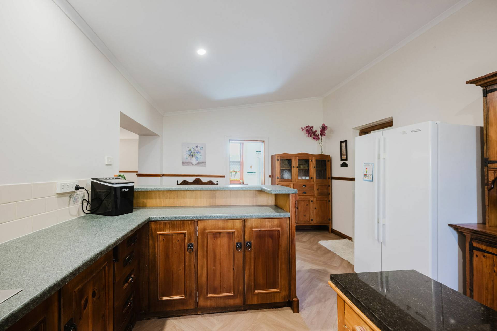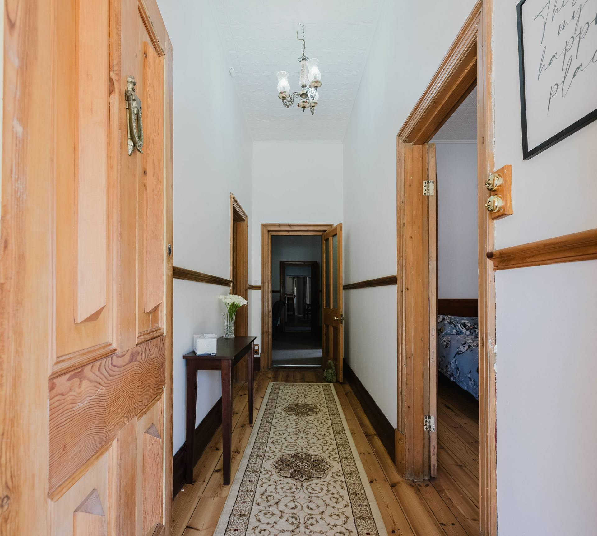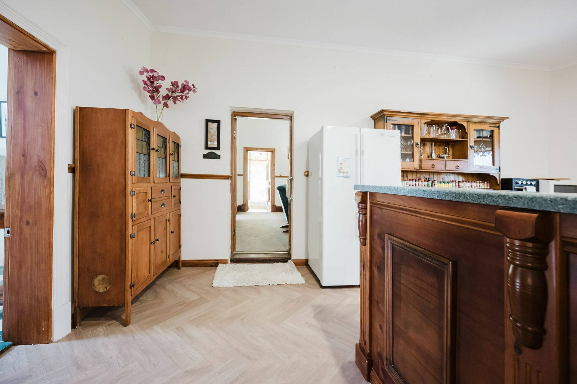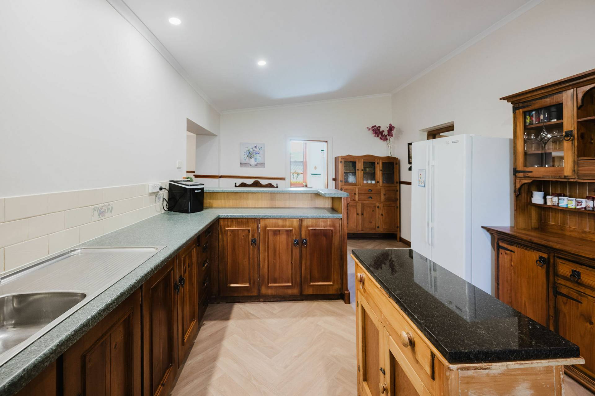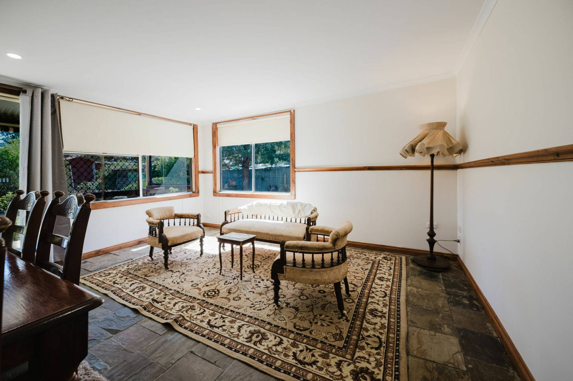 The home is an appealing Freestone symmetrical cottage built in 1898 with an iron roof and bullnose verandah and lacework. The entrance has beautiful lead light windows and a wide passage. The front two bedrooms are large with high pressed tin ceilings and open fireplaces. The third bedroom is a good size with carpeted flooring. The spacious lounge room has an open fireplace and ornate ceiling roses. The large kitchen consists of timber cupboards, gas stove and single sink. The bathroom also has leadlight windows, a tiled floor and timber vanity, shower, claw foot bath and toilet. A large laundry is located to the rear of the home as is the family room with split system air conditioning. Sliding doors lead to the enclosed rear yard and outside you will find well established gardens, an original single stable garden shed, 30' x 20' shed with power and concrete floor, a single carport with automatic roller door and an outside toilet. As a bonus, the home is serviced by a 5kW solar system.