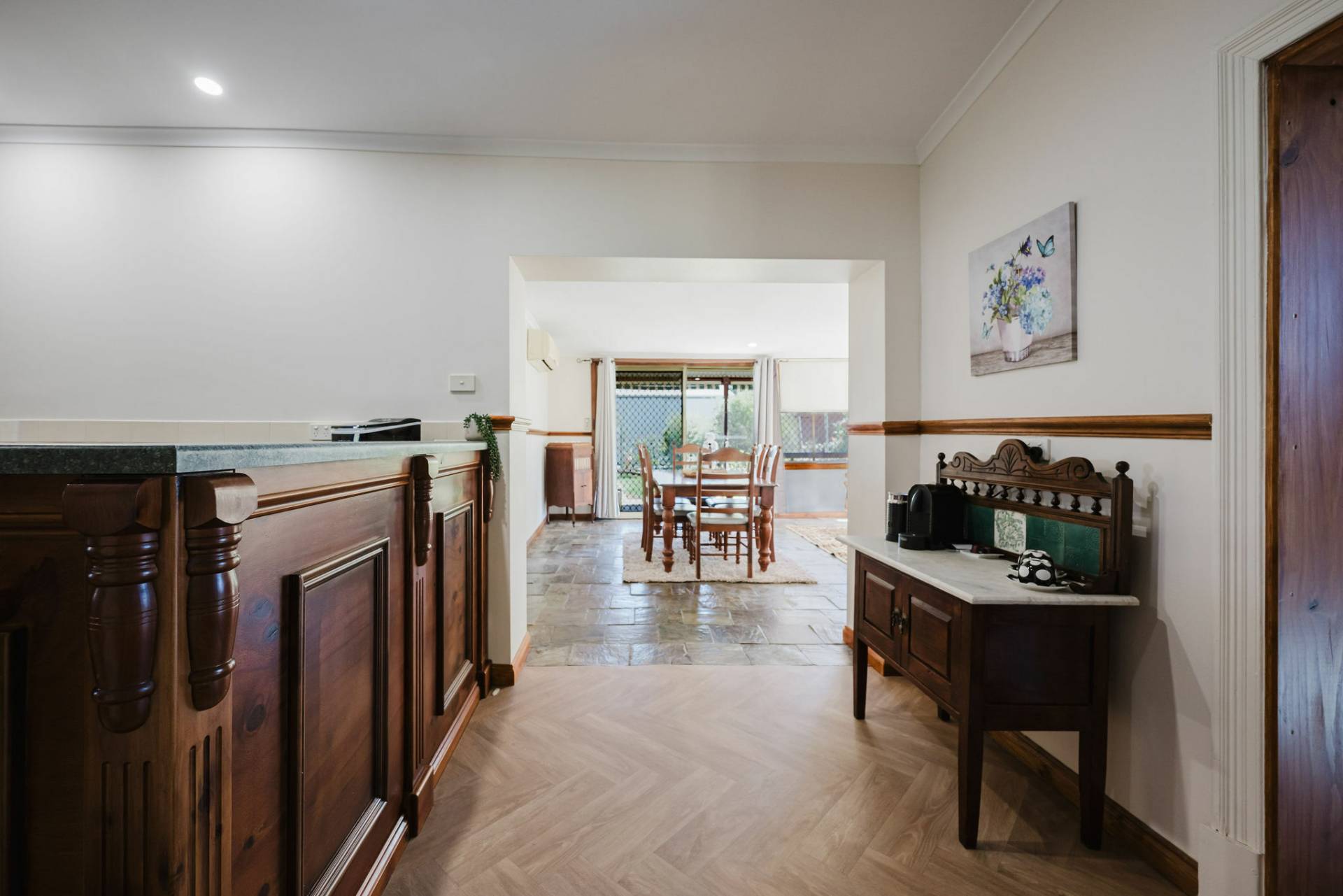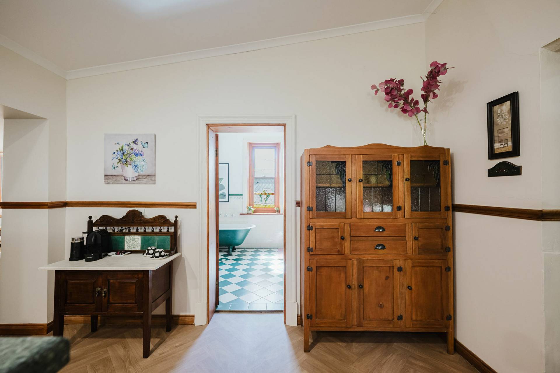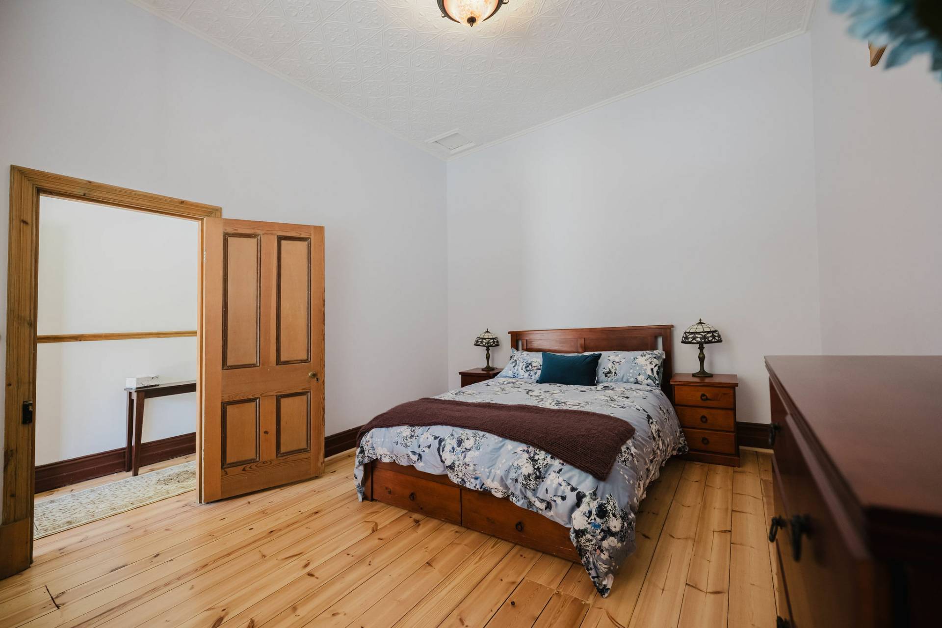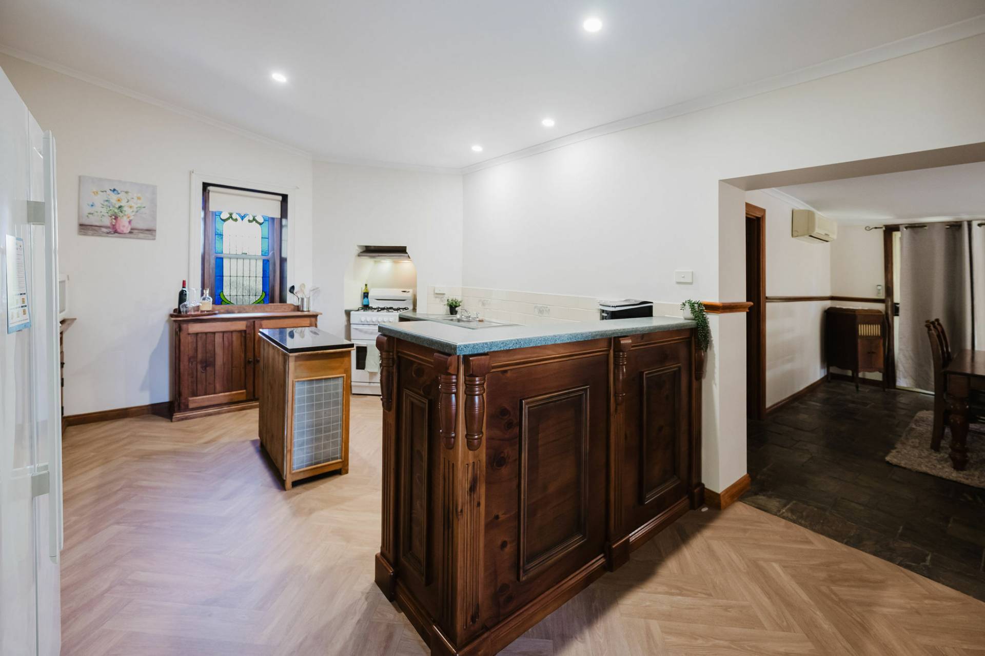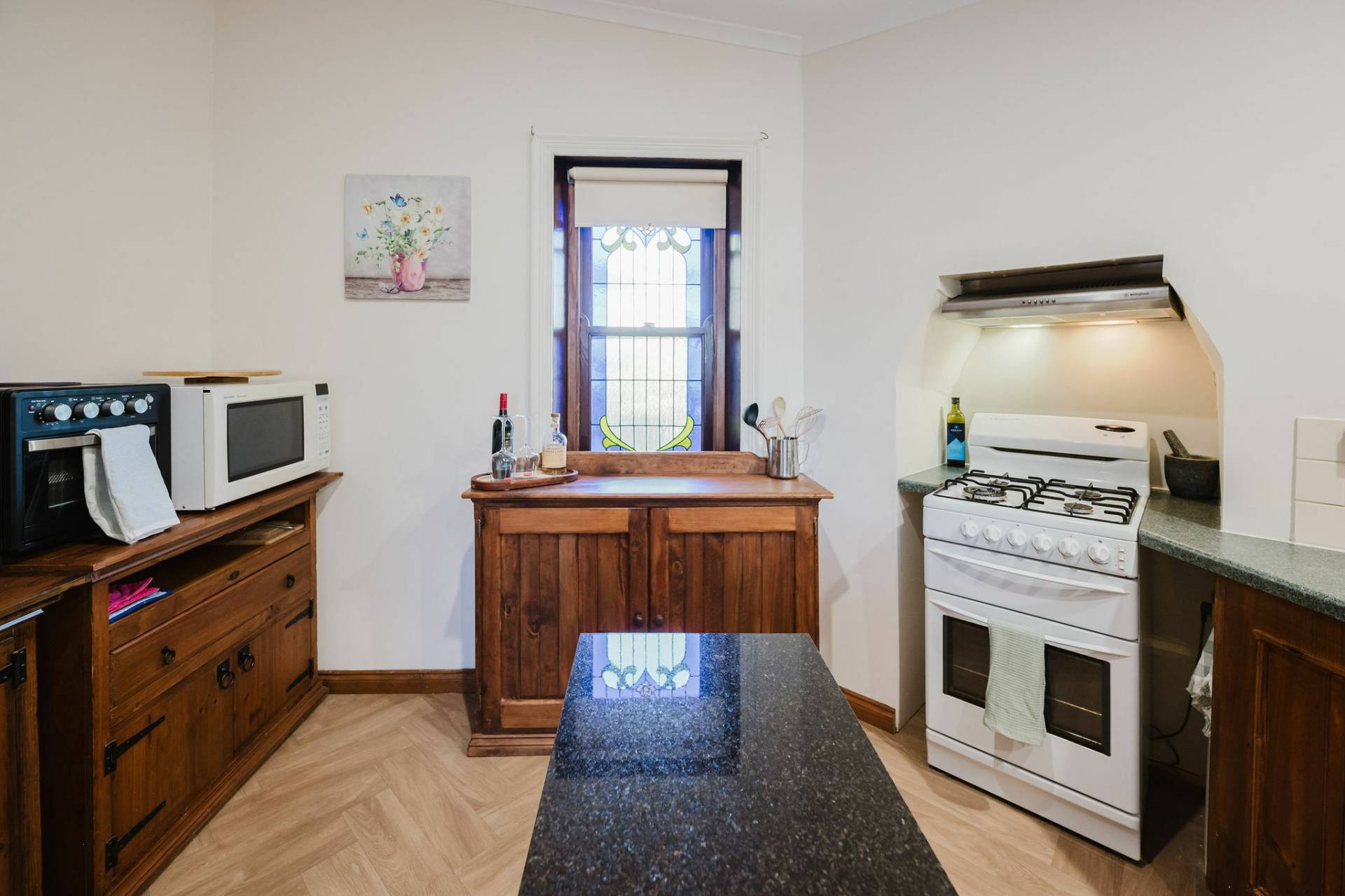 The home is an appealing Freestone symmetrical cottage built in 1898 with an iron roof and bullnose verandah and lacework. The entrance has beautiful lead light windows and a wide passage. The front two bedrooms are large with high pressed tin ceilings and open fireplaces. The third bedroom is a good size with carpeted flooring. The spacious lounge room has an open fireplace and ornate ceiling roses. The large kitchen consists of timber cupboards, gas stove and single sink. The bathroom also has leadlight windows, a tiled floor and timber vanity, shower, claw foot bath and toilet. A large laundry is located to the rear of the home as is the family room with split system air conditioning. Sliding doors lead to the enclosed rear yard and outside you will find well established gardens, an original single stable garden shed, 30' x 20' shed with power and concrete floor, a single carport with automatic roller door and an outside toilet. As a bonus, the home is serviced by a 5kW solar system.