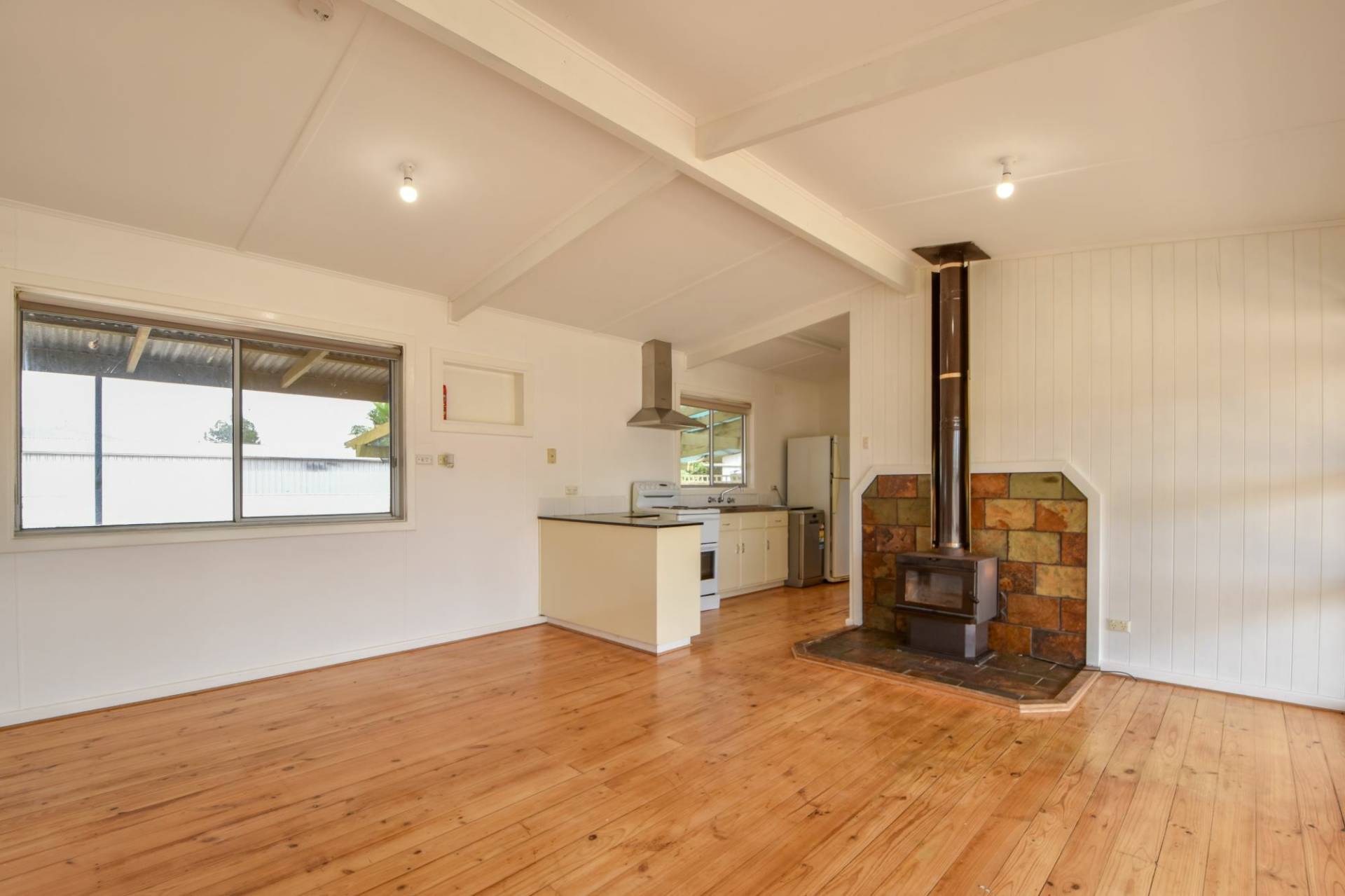 -    Kitchen/Dining and Lounge is open plan with polished timber floorboards and is neat and functional with a stainless-steel dishwasher, slow combustion heater and split system air conditioning.