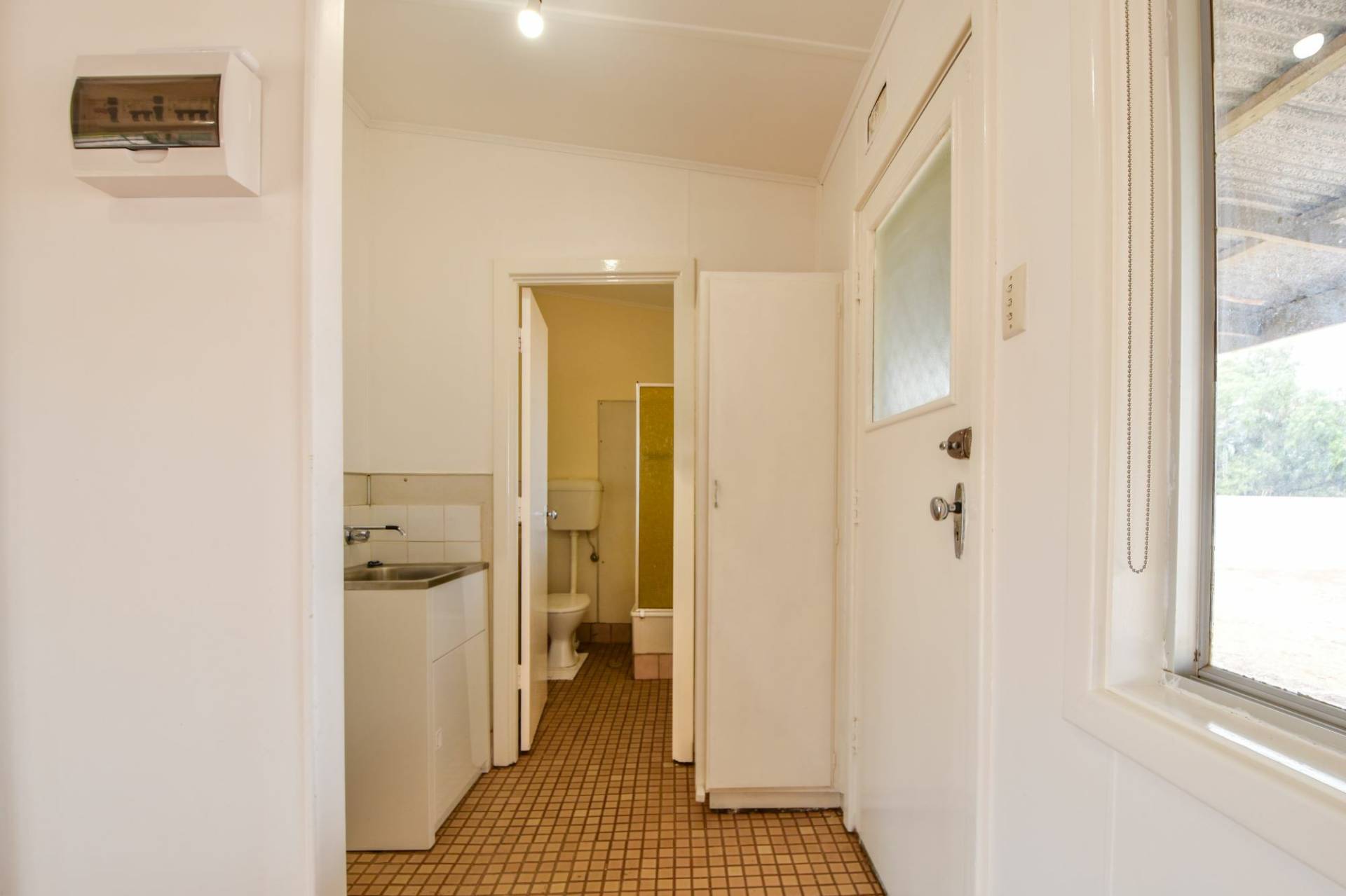 -    Laundry is simplistic with a tiled floor and stainless-steel wash trough