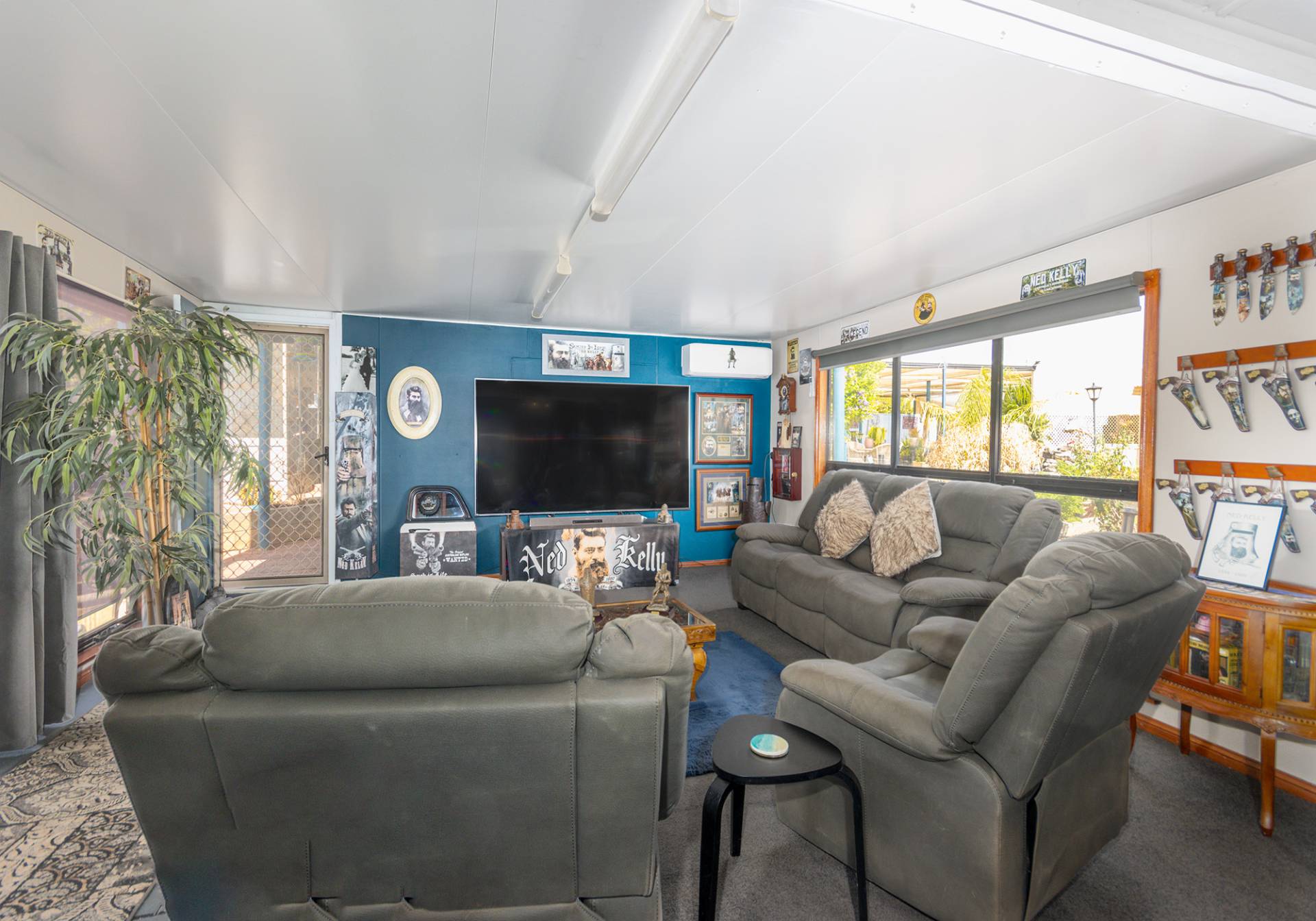 For those who enjoy space & functionality, this property ticks all the boxes. A bird aviary, chook yard, woodshed & garden sheds are all housed within the yard. Additionally, a separate studio or office provides the perfect retreat for work or creativity, while a double garage, with a separate workshop caters to hobbyists & trades alike. Storage is abundant with a powered 40ft shipping container & a full-length lean-to, ideal for housing boats or caravans.