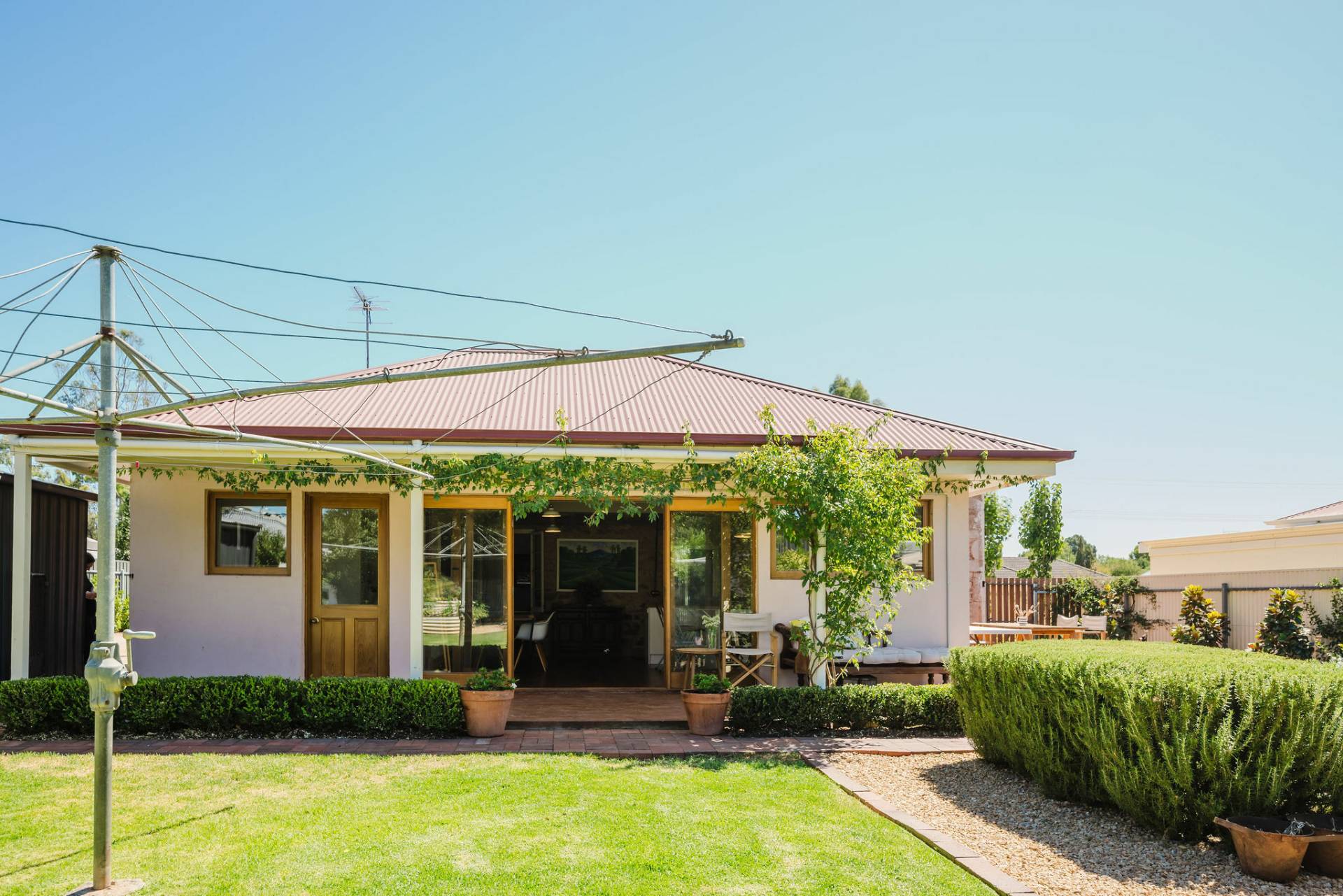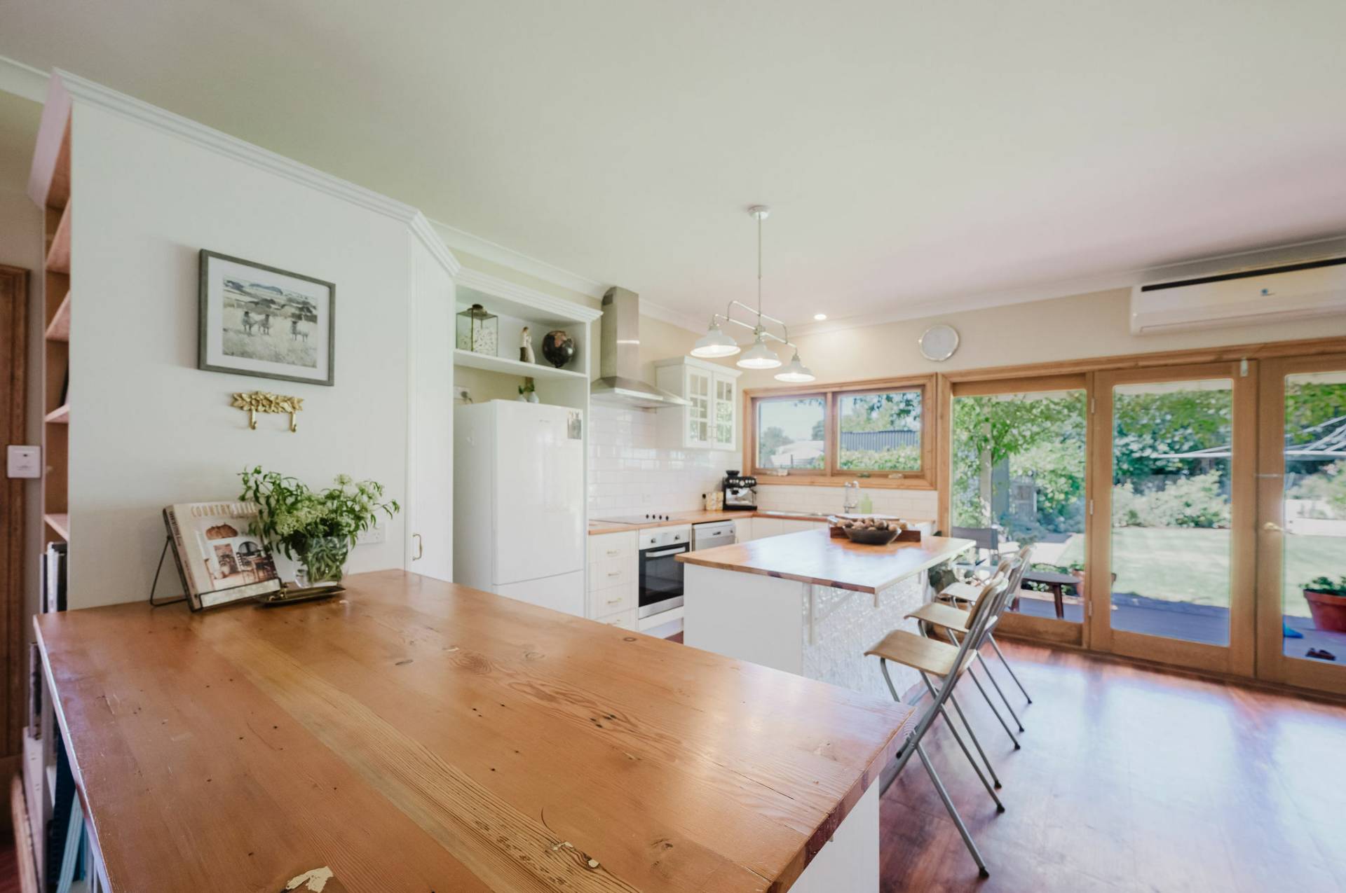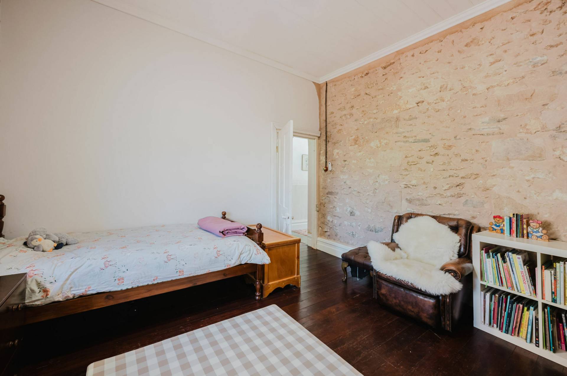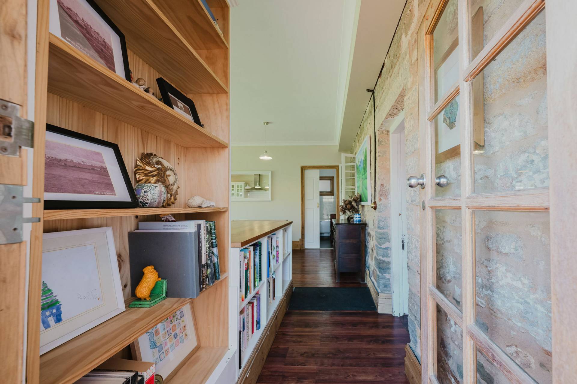 Three spacious bedrooms with exposed features stone walls and original timber flooring, creating a rustic and cozy atmosphere.  The lounge room complete with combustion heater with a unique cellar to store Clare classical wines.  The kitchen and dining area exude a country style charm with white glossy cupboards, timber bench tops that highlight the home’s character. Central island bench, timber and double-glazed windows and doors that lead out to the entertaining deck.  The family bathroom features a claw-footed bath, shower, and timber top vanity.  Practical laundry and second toilet.  The fixtures & fittings highlights the cottage’s authentic appeal.
