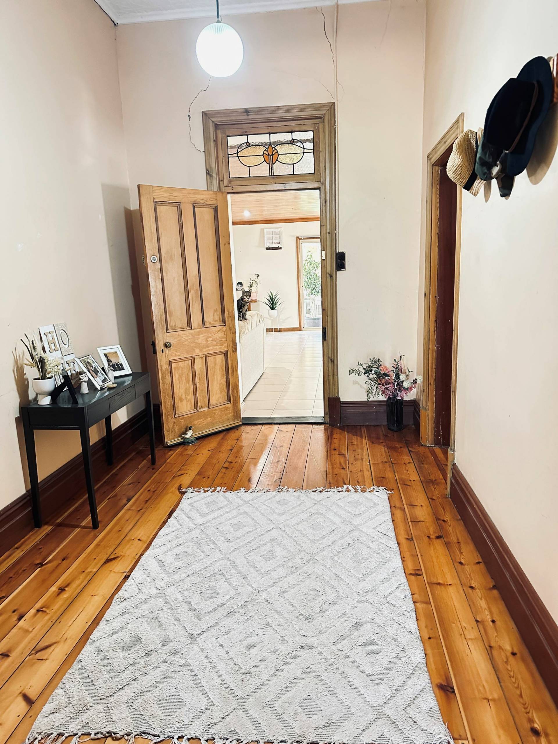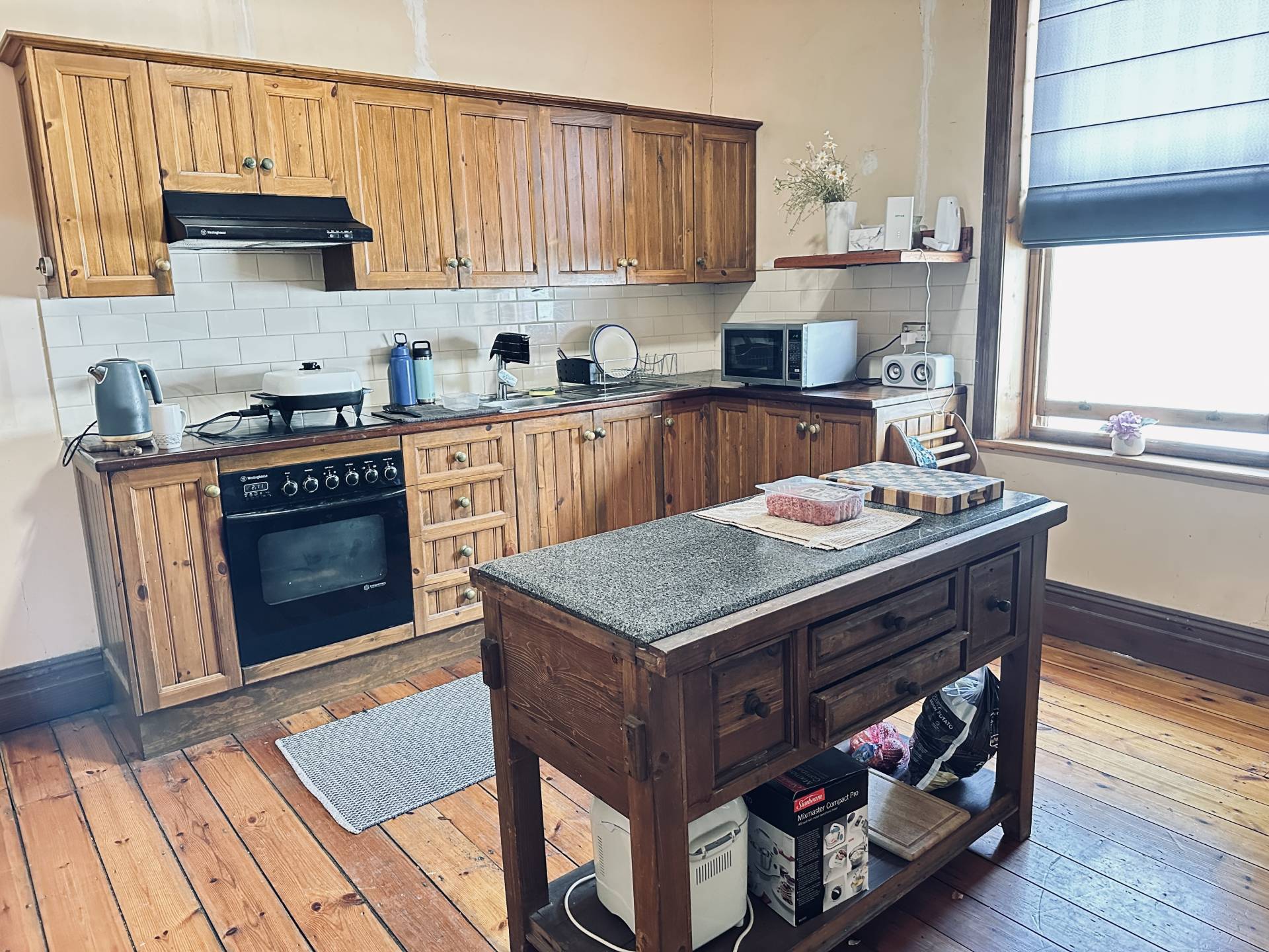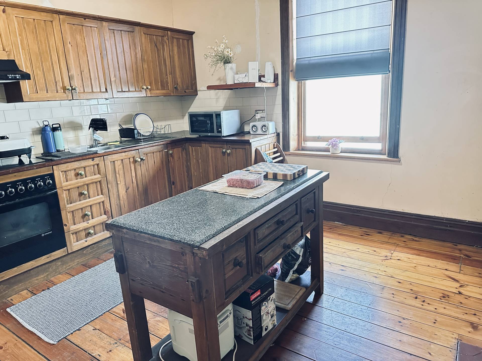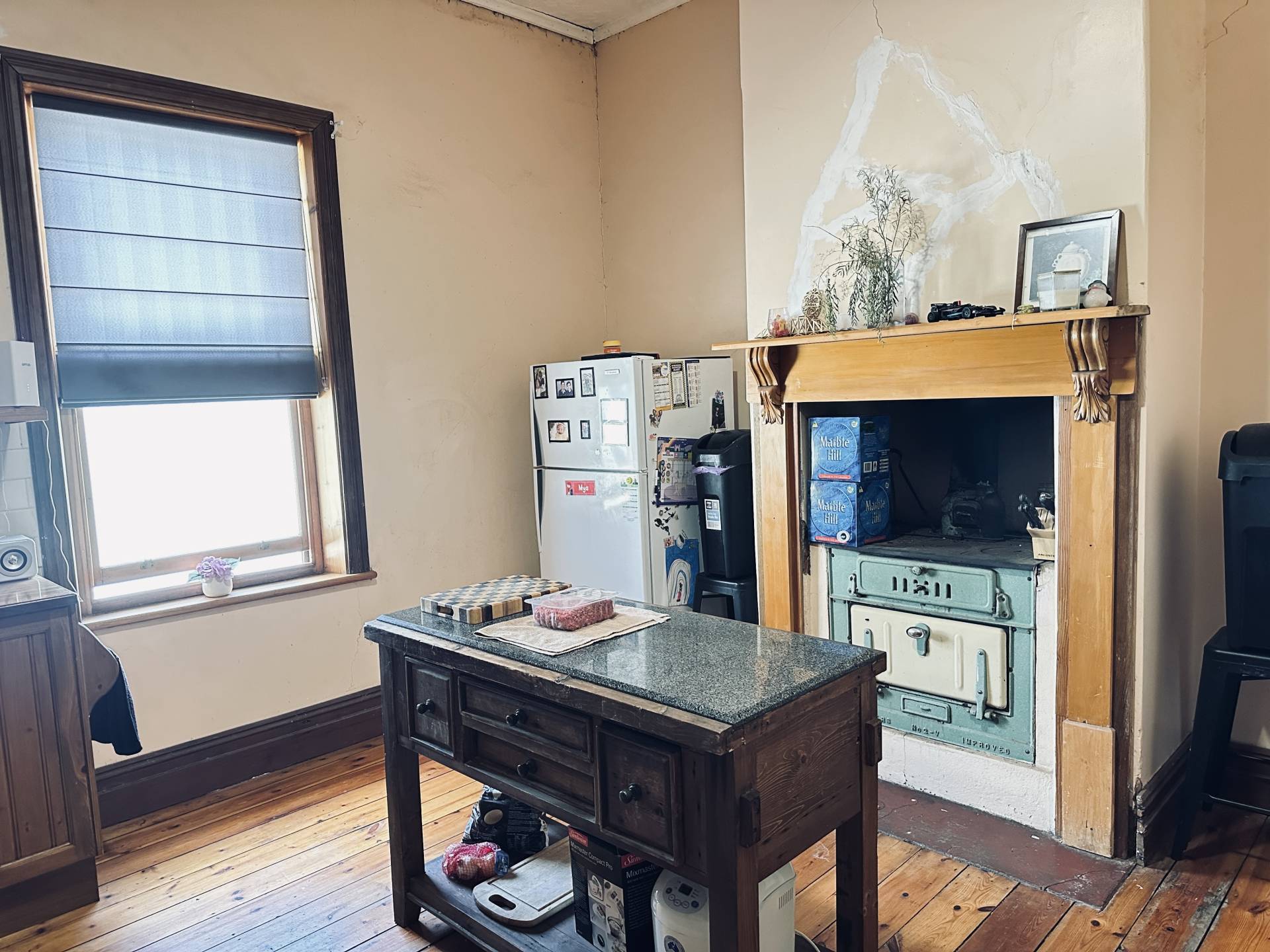 This elegant stone home nestled on a spacious 3000sqm* block presents timeless charm & character.  Built in 1906, with local stone and has great street appeal with the bullnosed return verandah.  You are welcomed with ornate pressed tin ceilings, polished Baltic pine flooring and original leadlight glass.  Wide hallway adds to the home’s spacious feel and inviting atmosphere.  Three generous double-sized bedrooms each with its own open fireplace plus the potential for a fourth bedroom by re-positioning the kitchen in the family room.  The original kitchen has solid timber cupboards, island bench with granite top, ample storage & electrical appliances.  Even has the Metters No. 2 oven that complements the home.