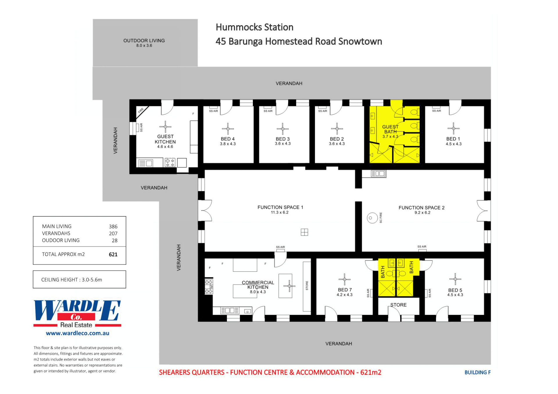 The picturesque ironstone Shearers Quarters were originally built by Captain John Ellis to accommodate and cater for shearers and shed hands. Today the restored building offers accommodation for up to 17 guests across 6 rooms; 2 being ensuite and 4 having access to a guest bathroom, guest kitchen and commercial kitchen. The historic building also features a two room Function Centre capable of catering for 80 people. Together with the commercial kitchen it opens up a lot of possibilities for events; weddings, birthdays, and corporate shows which could really help expand the business, and the fact that it’s already fully operational since 2017 shows that it has a strong foundation.