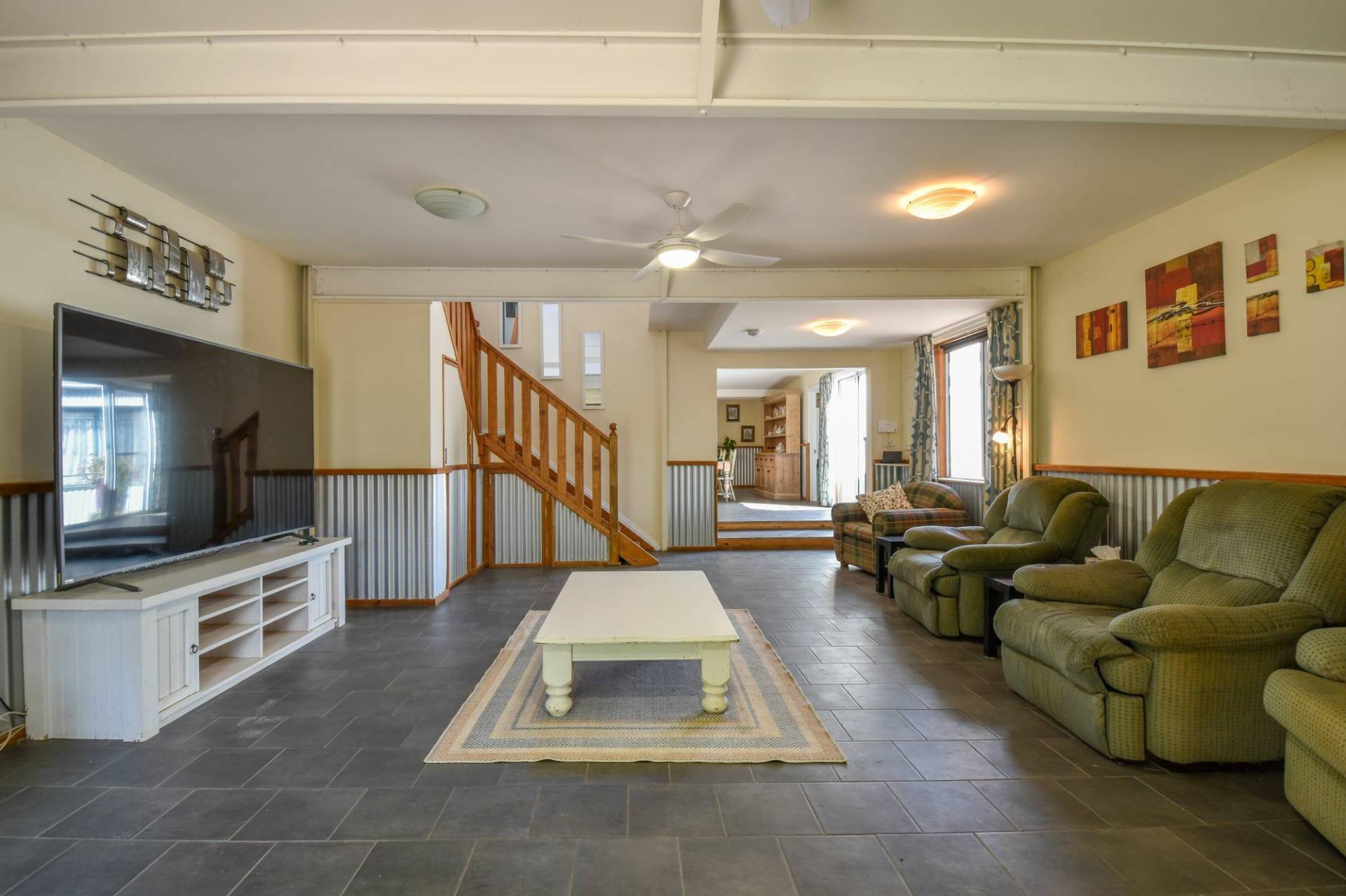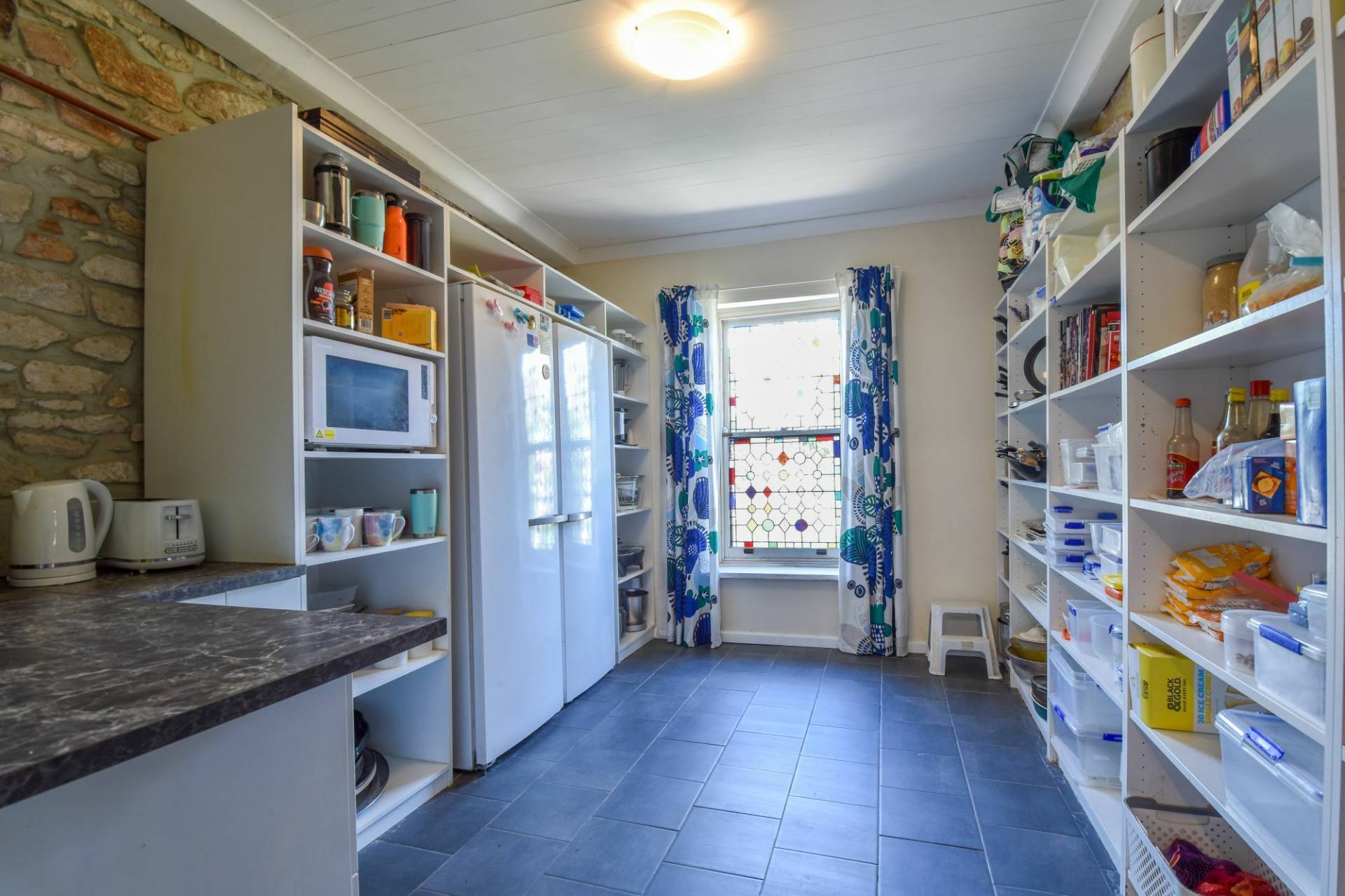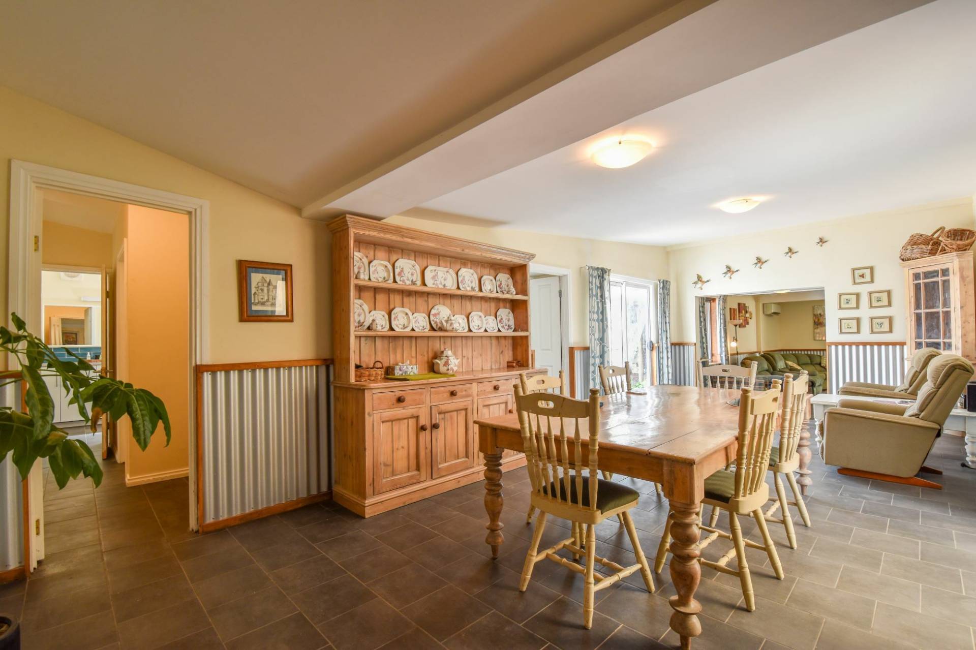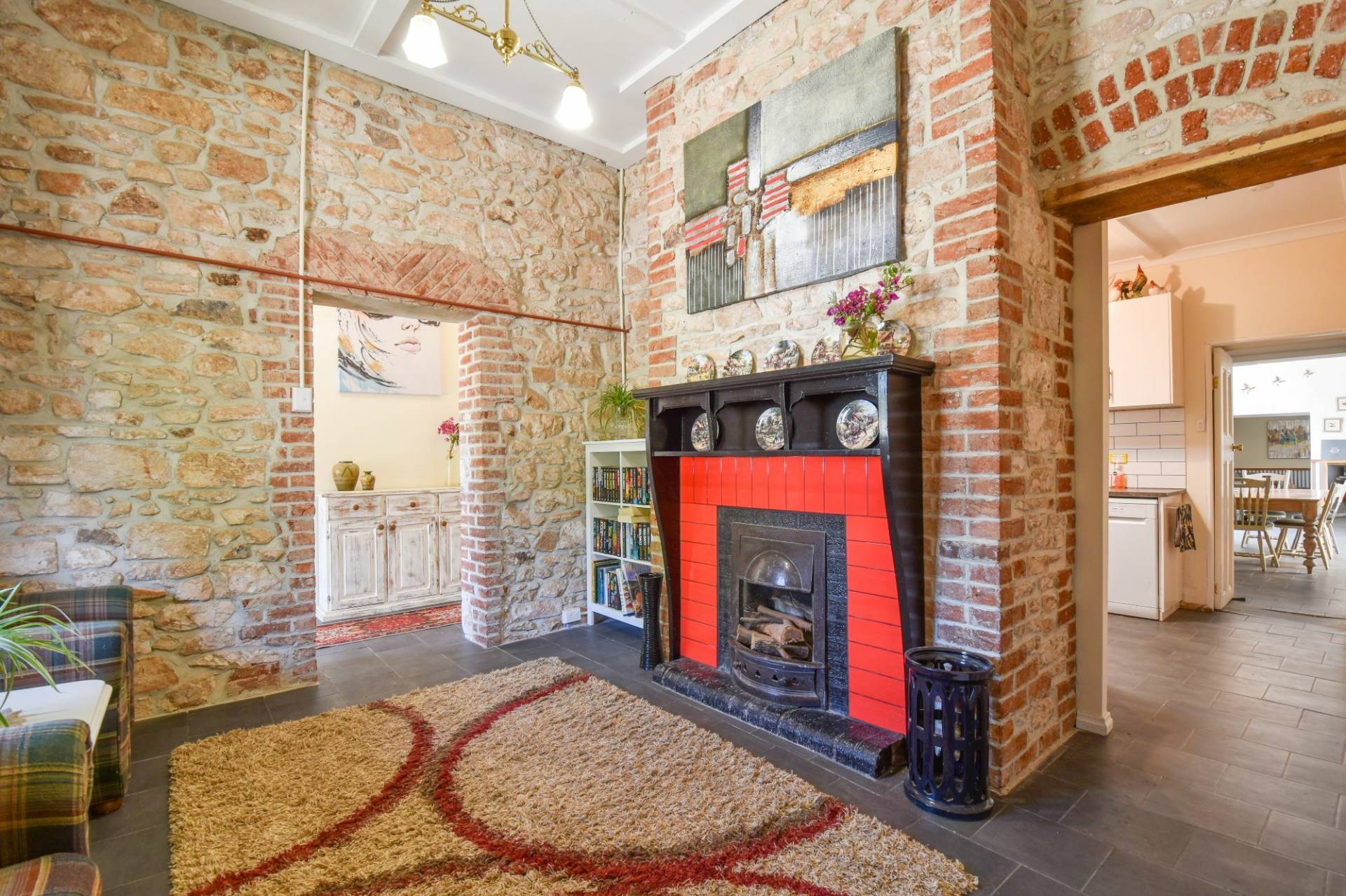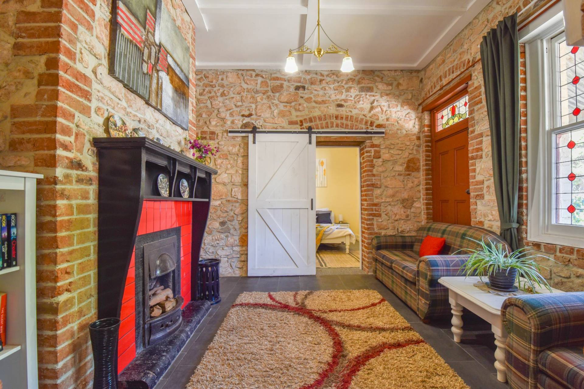 Stepping into the newer section of the home there is a large inviting family dining area with access to the outdoor decked patio or further down to the impressive lounge room. The original sitting room for the Police station has been transformed into a formal lounge with stone walls, ornate fireplace and a tiled floor which is carried through into the kitchen and beyond.
