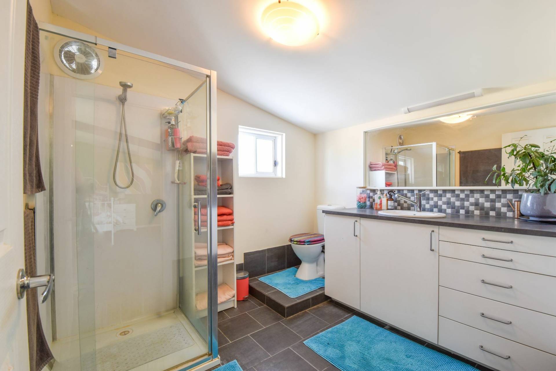 The updated main bathroom has ample bench space and storage, single basin, shower and separate toilet with hand basin.