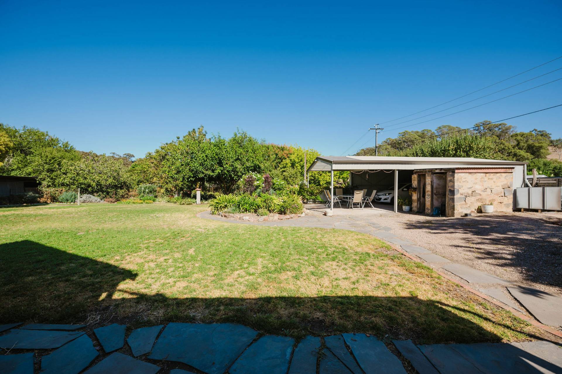 Walnut Cottage is a charming, circa 1845 dwelling, formerly the old general store in Penwortham. The home offers a unique and private one bedroom retreat in the heart of the picturesque Clare Valley. The cottage has many features including original fruit drying cellar, spacious front lounge room with open fireplace, cathedral ceiling and separate dining area.   A well-appointed kitchen includes a walk-in pantry and the bedroom is a generous size.  The bathroom is complete with classic claw-footed bath, while the laundry and toilet are separated for convenience.  Enjoy outdoor living in the private pergola and the modern garage which includes an entertaining area.  Lush green lawn in a peaceful cottage garden setting, fruit trees, chook yard and vegetable patch, all watered by a good bore and mains water.  Another feature is the large shed with cool room, offering potential roadside craft sales or running a small business.  One of the best quaint cottages on a large 2300*sqm corner block with many possibilities.