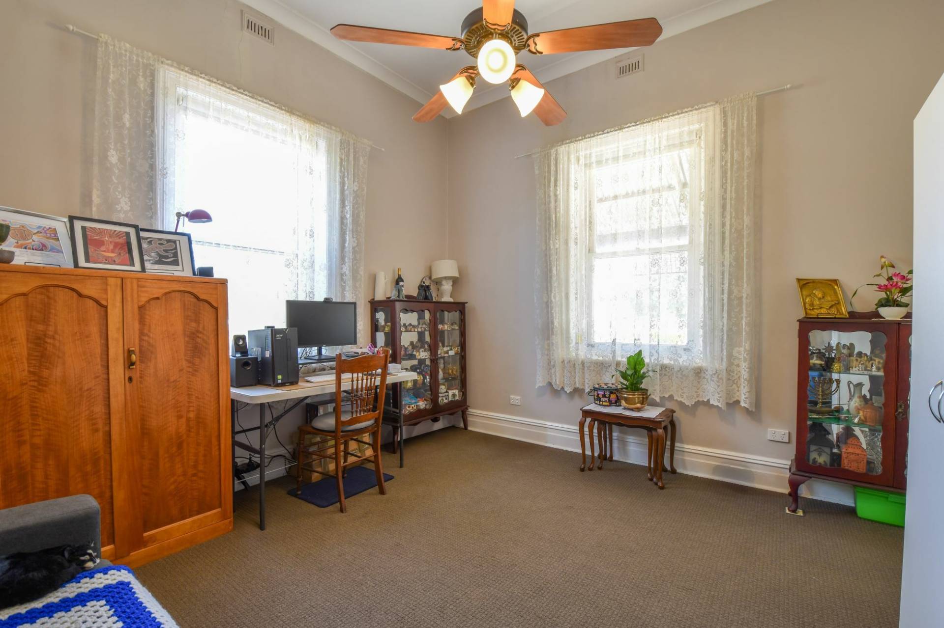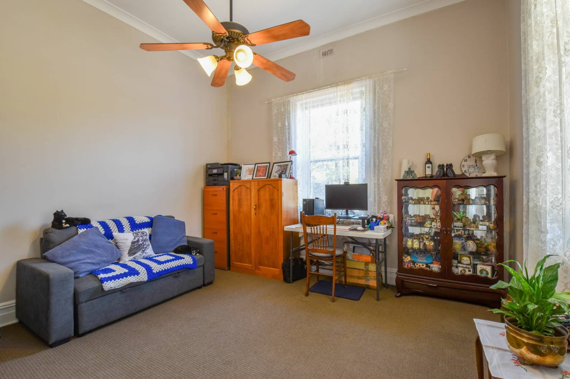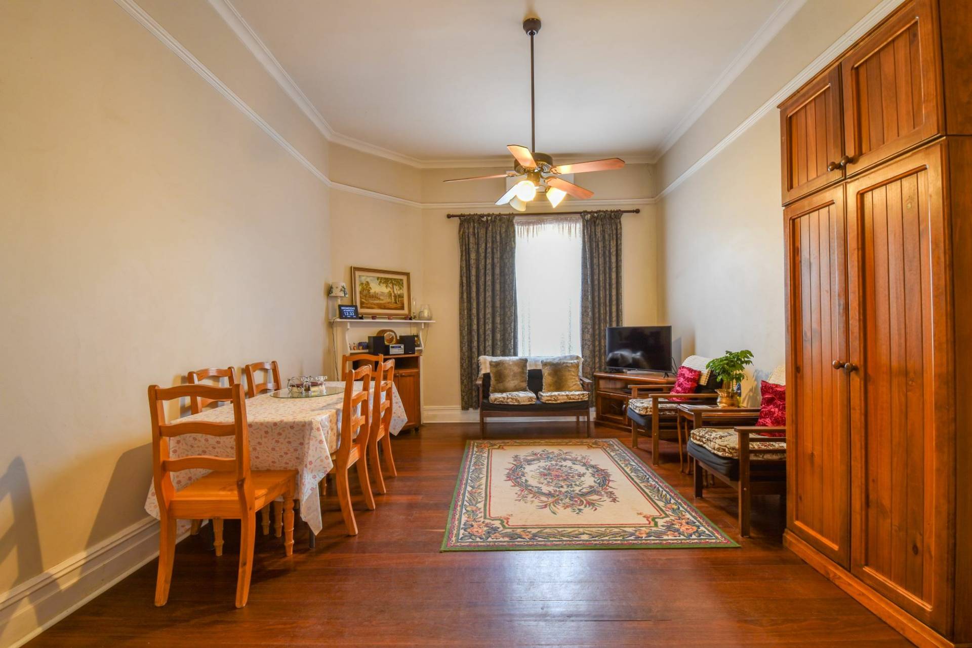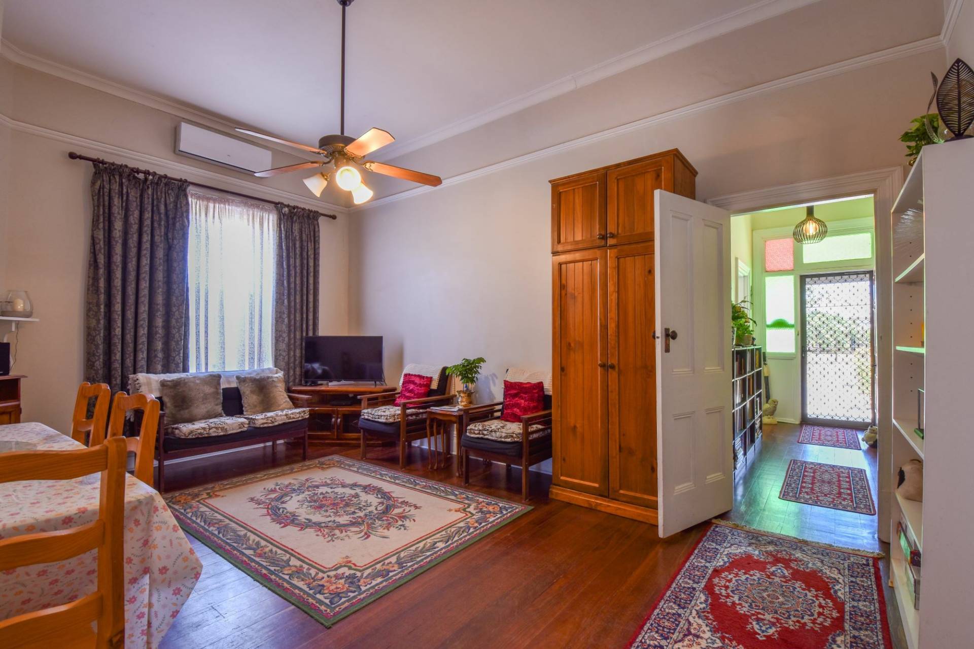 This home perfectly blends historic character with modern comforts. The master bedroom offers year-round comfort with a split-system air conditioner, complemented by ceiling fans in all bedrooms. The inviting central lounge, the heart of the home, features a reverse cycle air conditioner and ceiling fan.