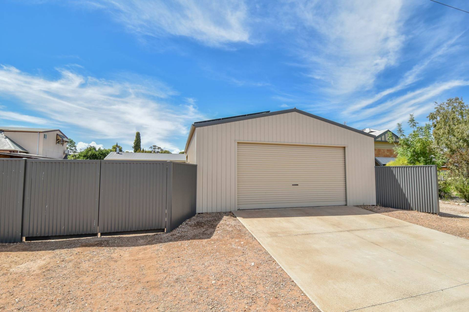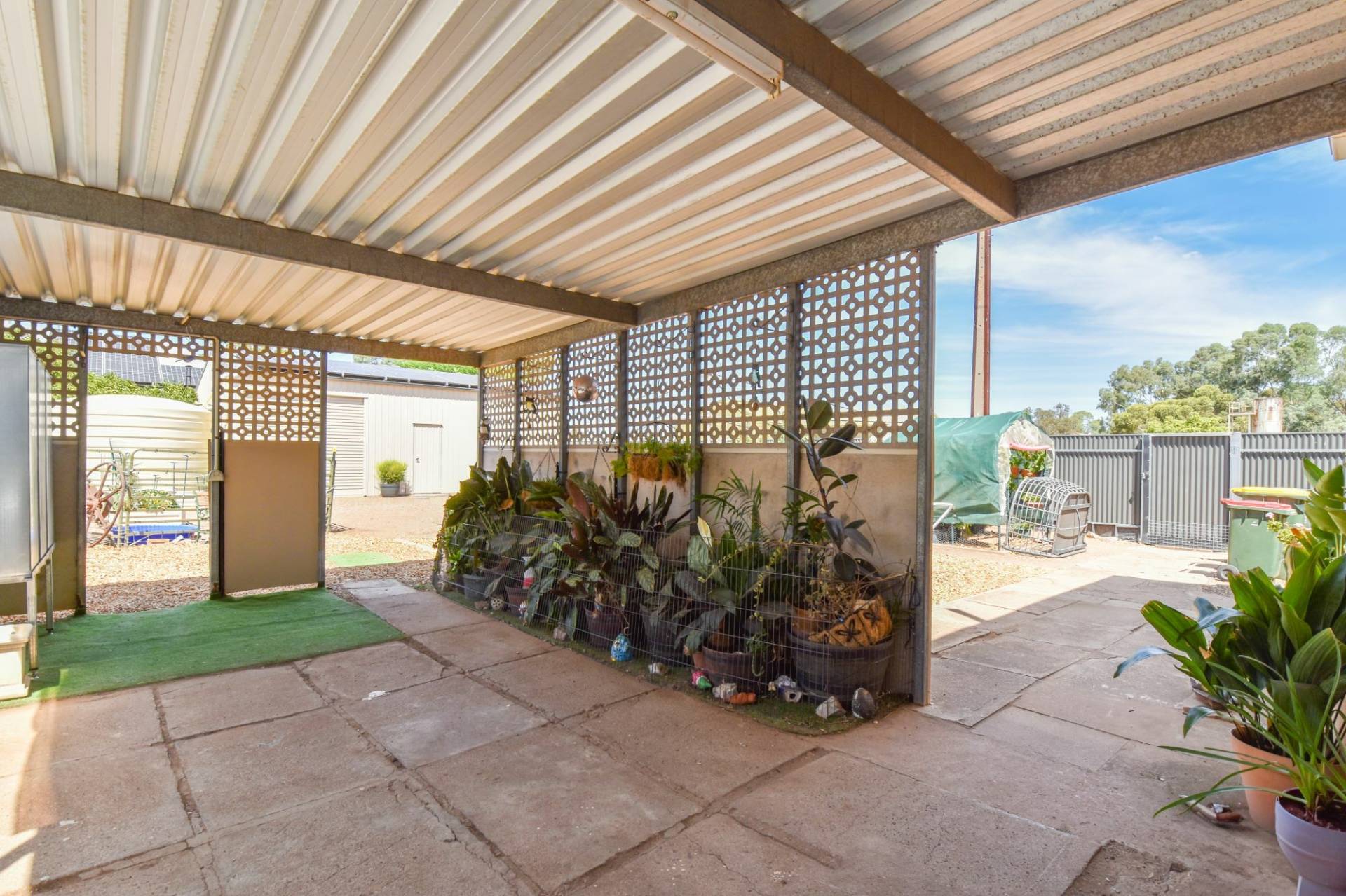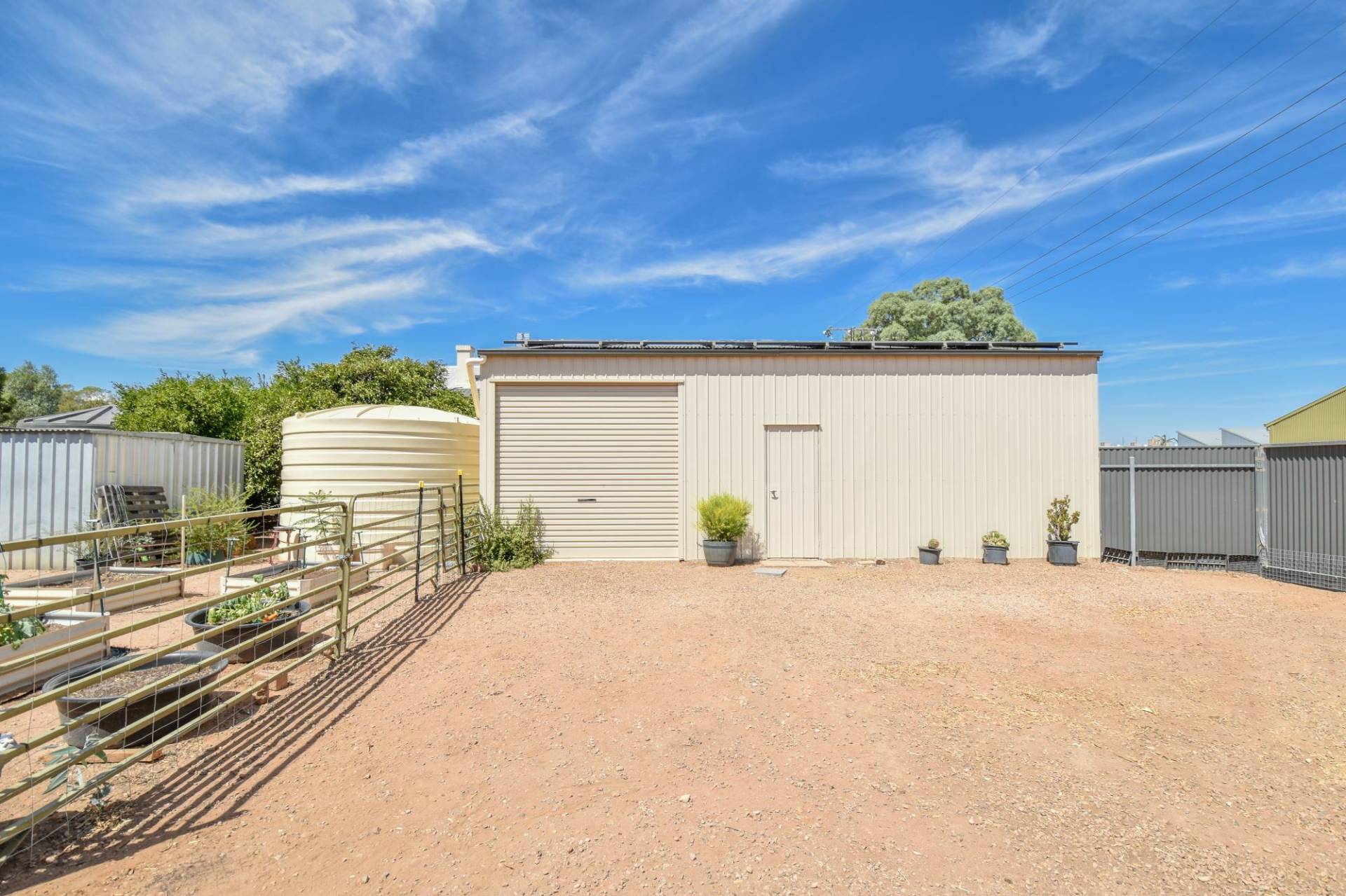 Outside, a substantial Colorbond shed with a concrete floor, lights, power, and roller doors provides ample storage and workspace.