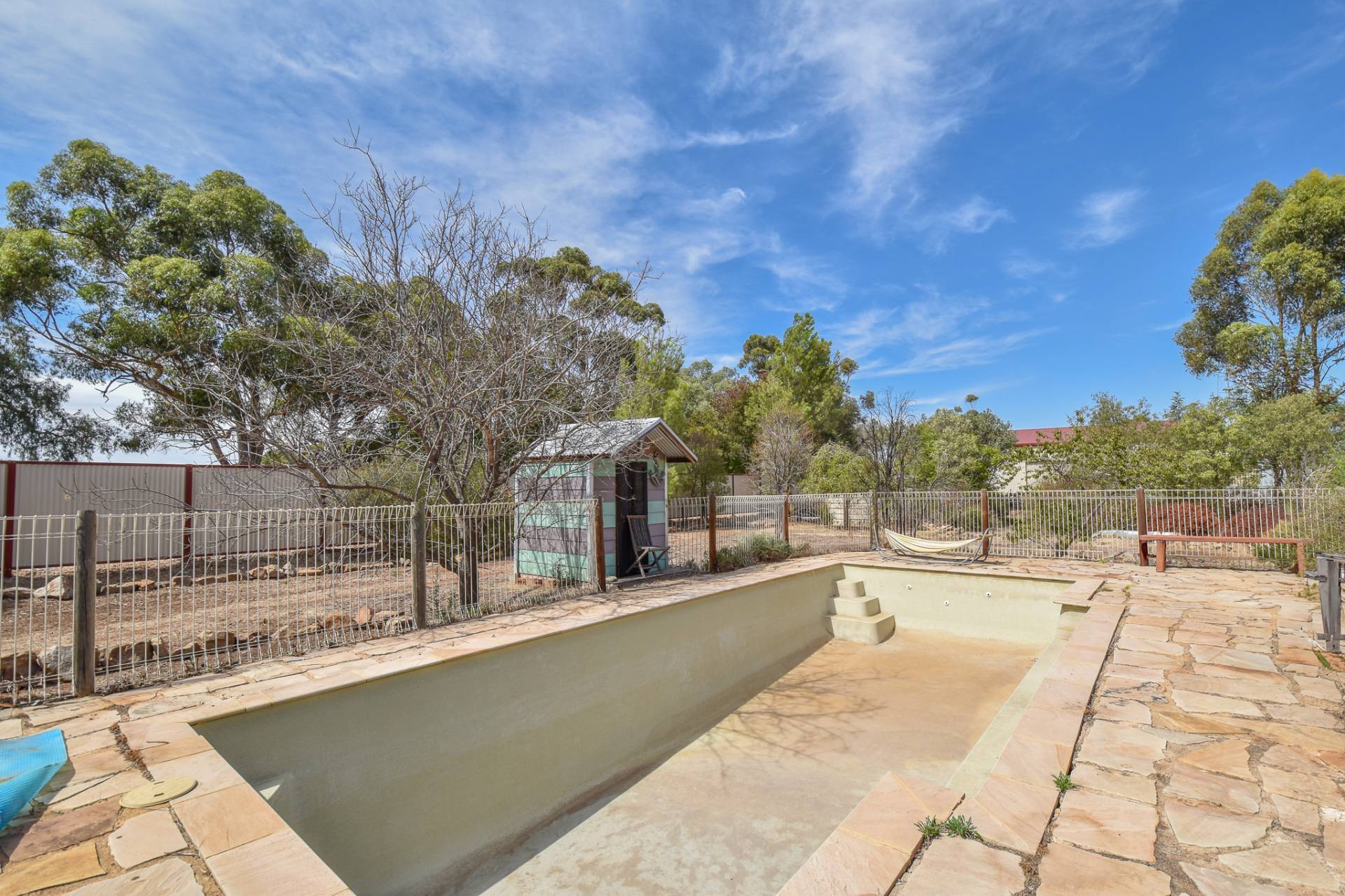 The well-fenced corner allotment provides excellent access from both the front and side. The property is further enhanced by a large inground pool, a substantial 10 x 8m* shed with three high clearance roller doors and a PA door, a concrete floor, power connected and plumbed with ablution and kitchenette. 2 large poly rainwater tanks complete with electric pump and established gardens surrounding the come with include established fruit orchard add to the practicality and appeal.