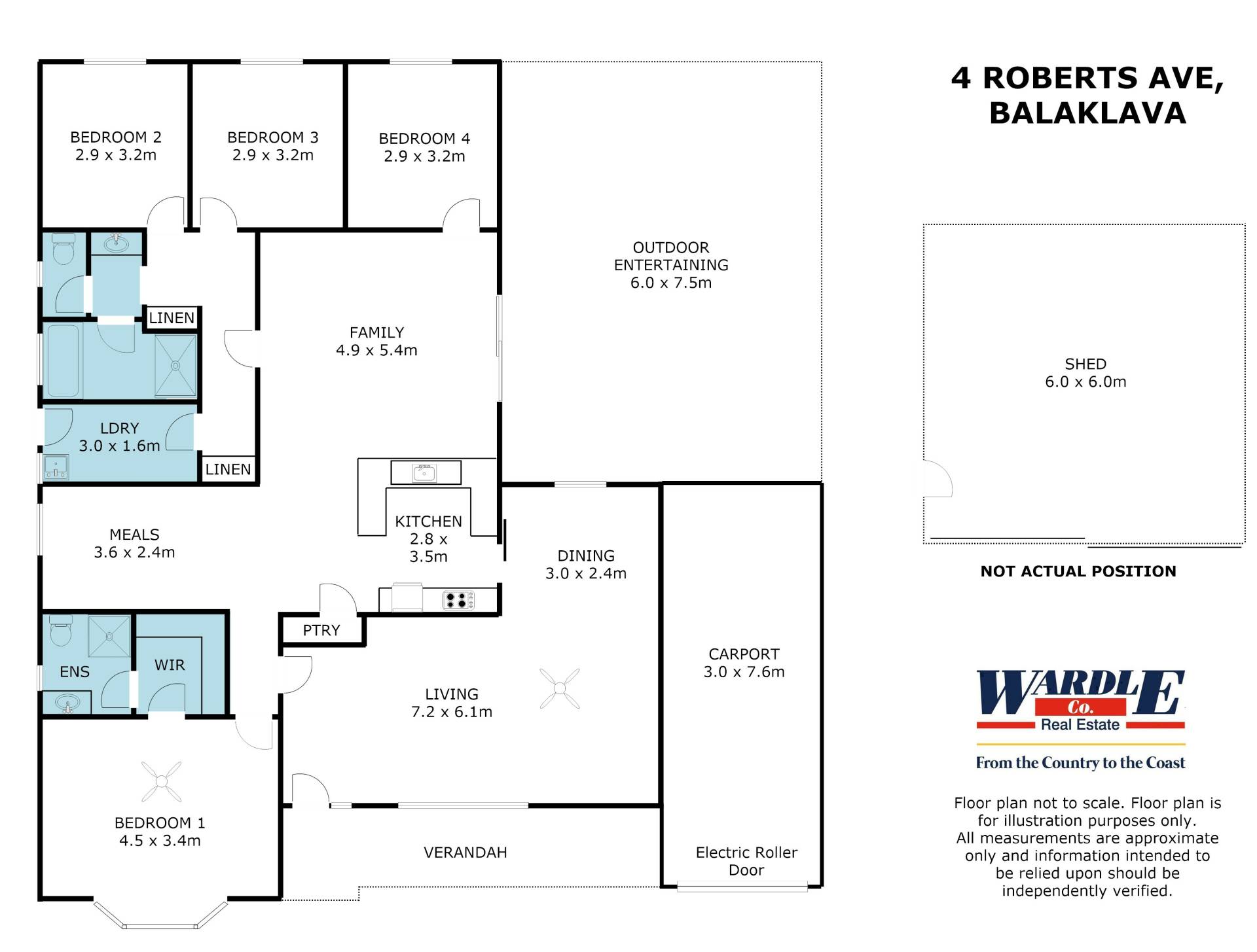 This charming four-bedroom, brick veneer home is packed with great features, offering a comfortable and spacious living experience. Slate-fronted façade and flooring, with new carpet in master bedroom and lounge. The master bedroom boasts a bay window, shutters, walk-in robe and ensuite for privacy and convenience. Three additional bedrooms are serviced by a well-appointed 3-way bathroom plus there is a large laundry and storage available.  The l-shaped lounge seamlessly connects to the open plan kitchen and dining nook, ideal for family gatherings. The kitchen offers a walk-in pantry, plenty of bench and cupboard space. Outside, there is a single carport with electric roller door, a pergola for entertaining plus 1.6kW of solar and two rainwater tanks. Well-maintained and established gardens with lawn and 6m x 6m* shed with power and concrete floor, ideal for the handyman. This property is located in one of the most sought-after streets in Balaklava.