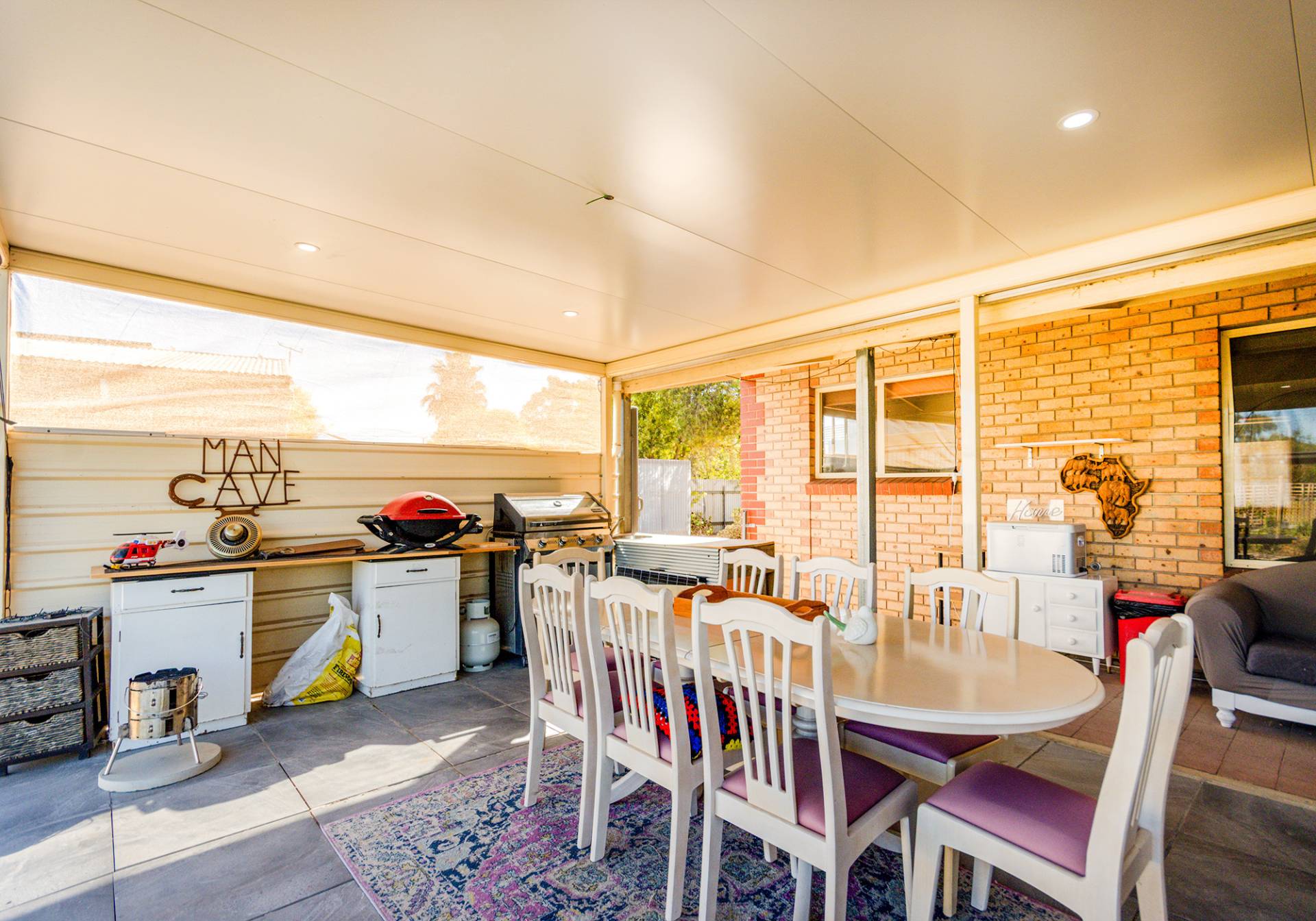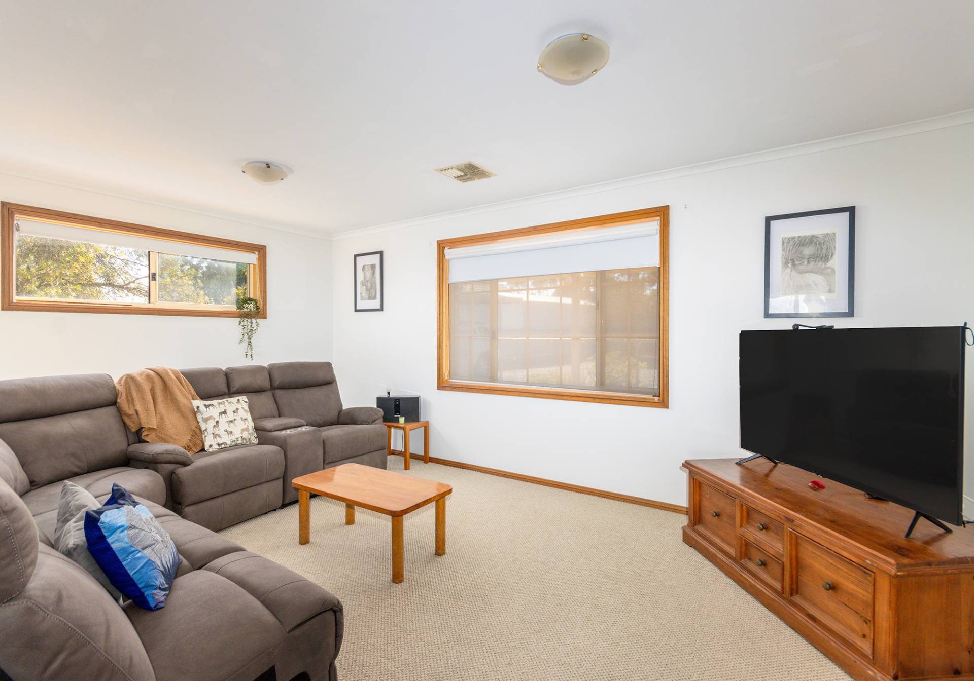 Inside, the home features three well-sized bedrooms, all with built-in robes, ceiling fans & brand-new carpet. A central bathroom services all bedrooms, while the well-appointed kitchen boasts a gas cooktop, dishwasher, electric oven, pantry, ample cupboards & bench space, a coffee nook & a dedicated dining area. The separate living room offers a spacious, yet cosy retreat for relaxation & ducted reverse-cycle air conditioning ensures year-round comfort.